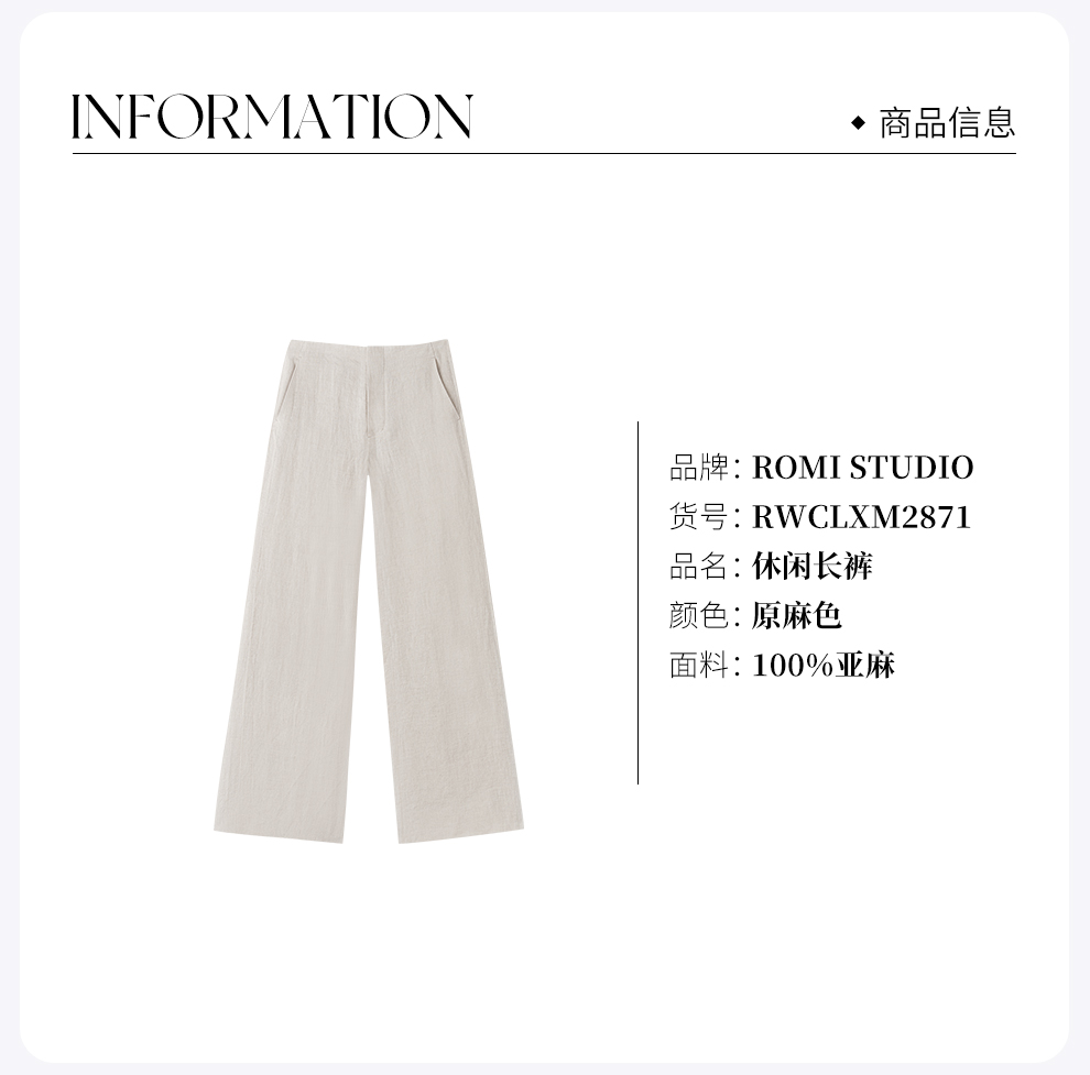 ROMI STUDIO“质感亚麻”100%雨露麻轻薄宽松直筒休闲裤 RWCLXM2871