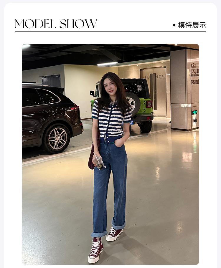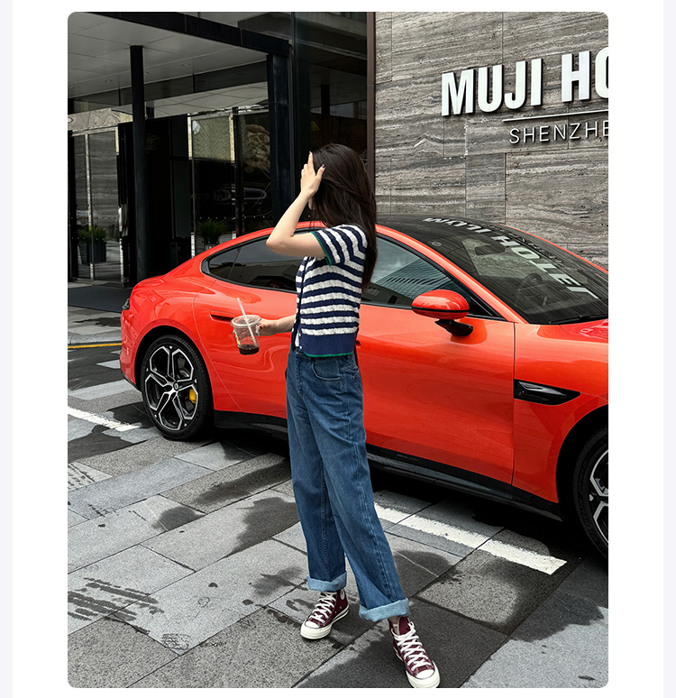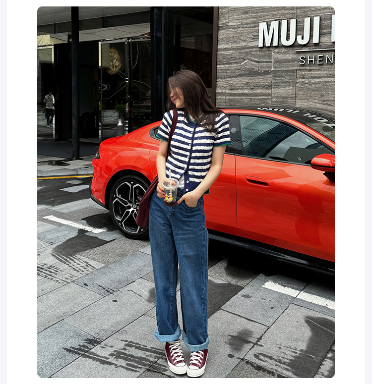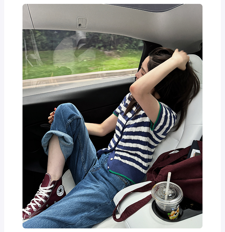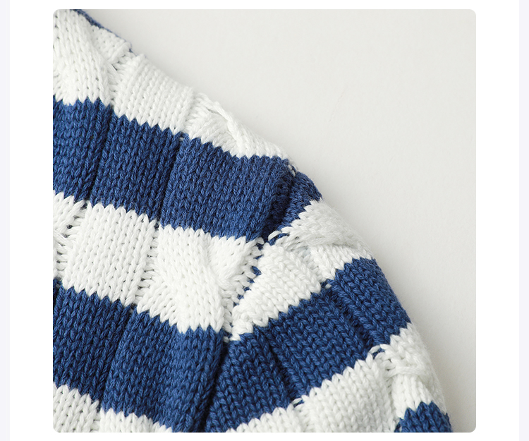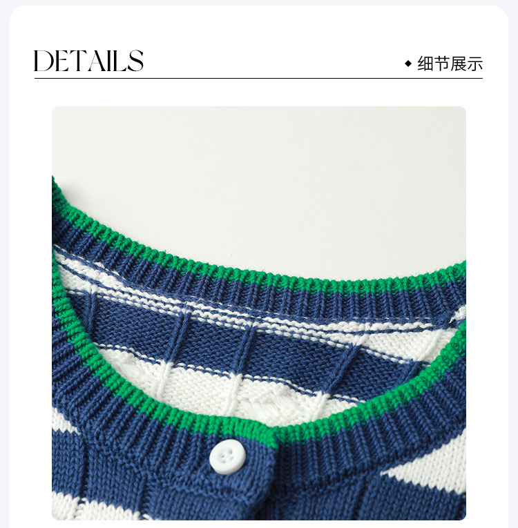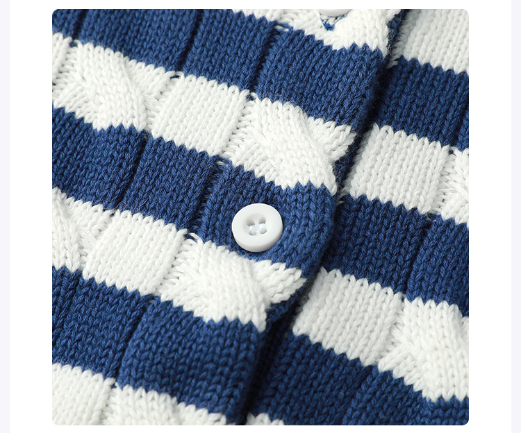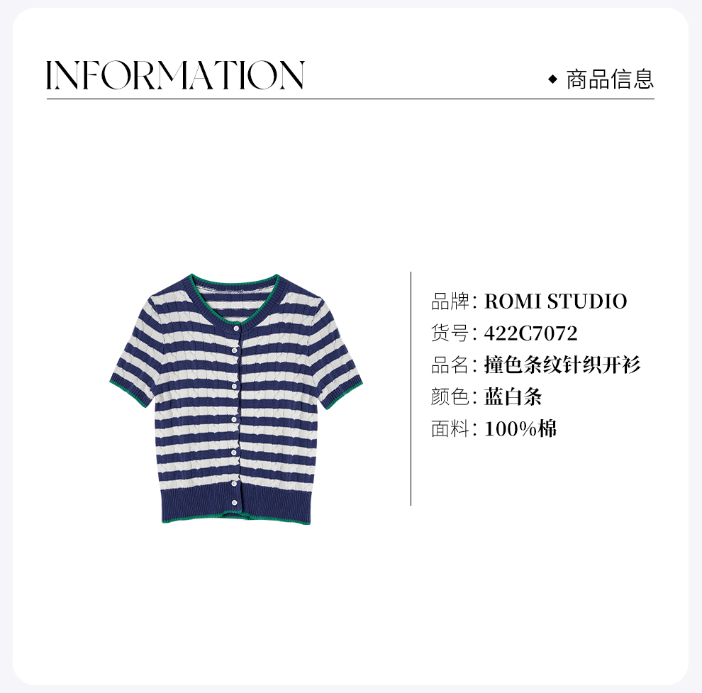 ROMI STUDIO ”美式复古“ 7针2/32棉绞花撞色条纹针织开衫422C7072(现货)