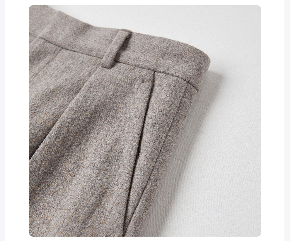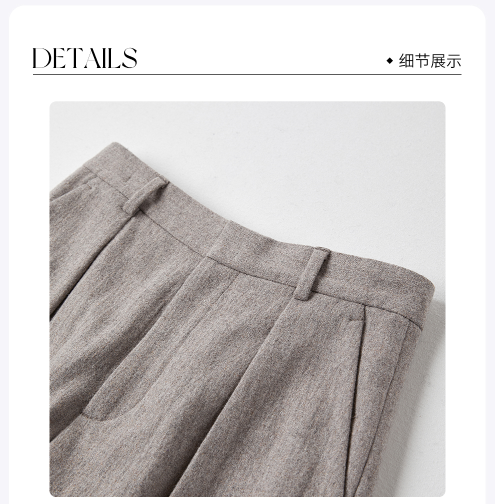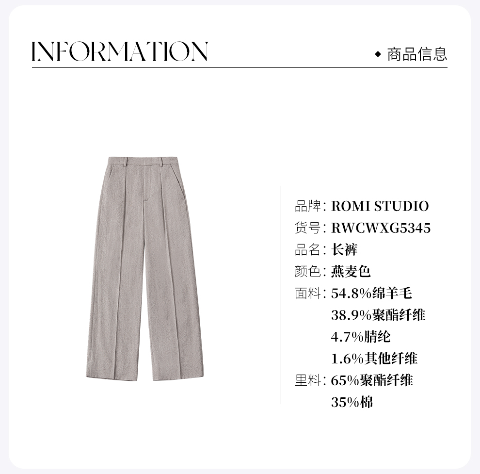 ROMI STUDIO“自我轮廓”羊毛混纺倒褶斜纹极简休闲西裤 RWCWXG5345