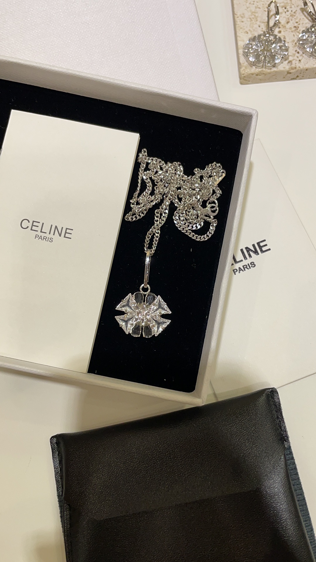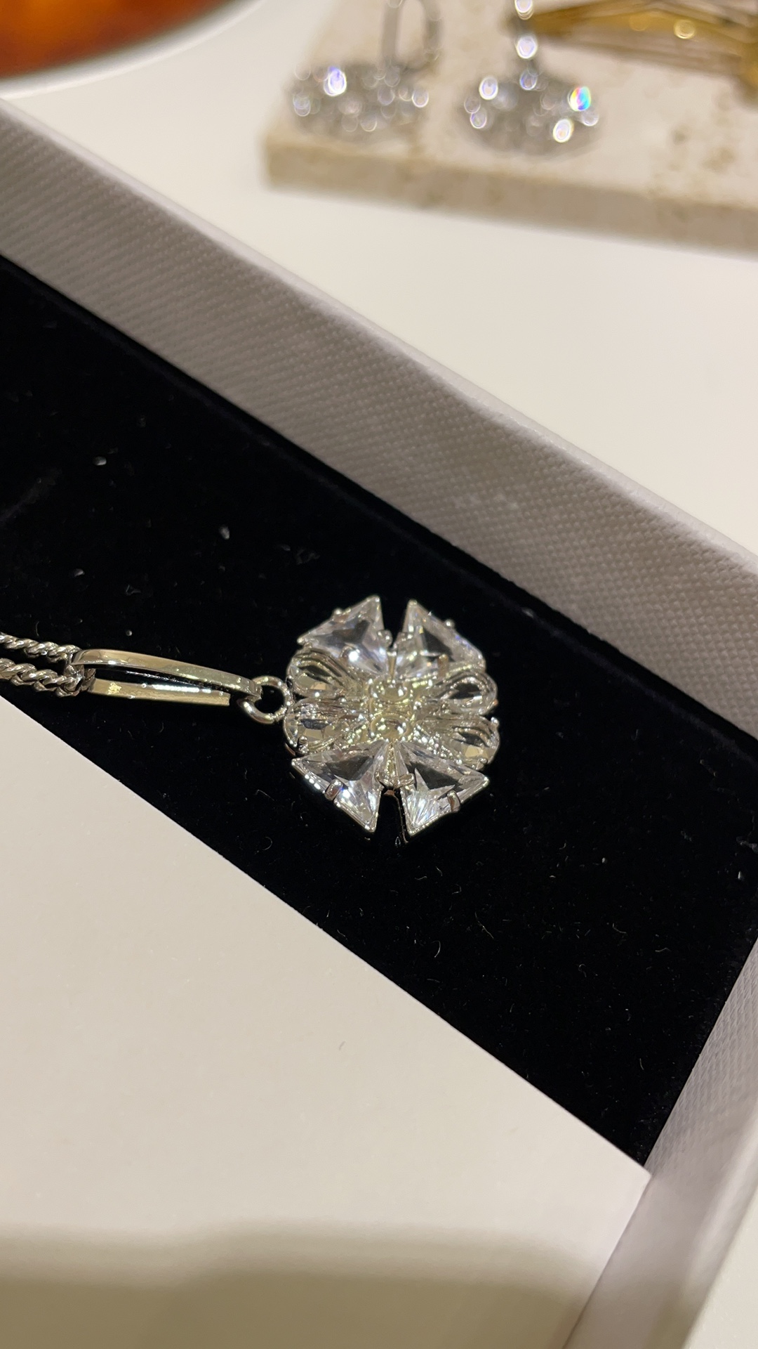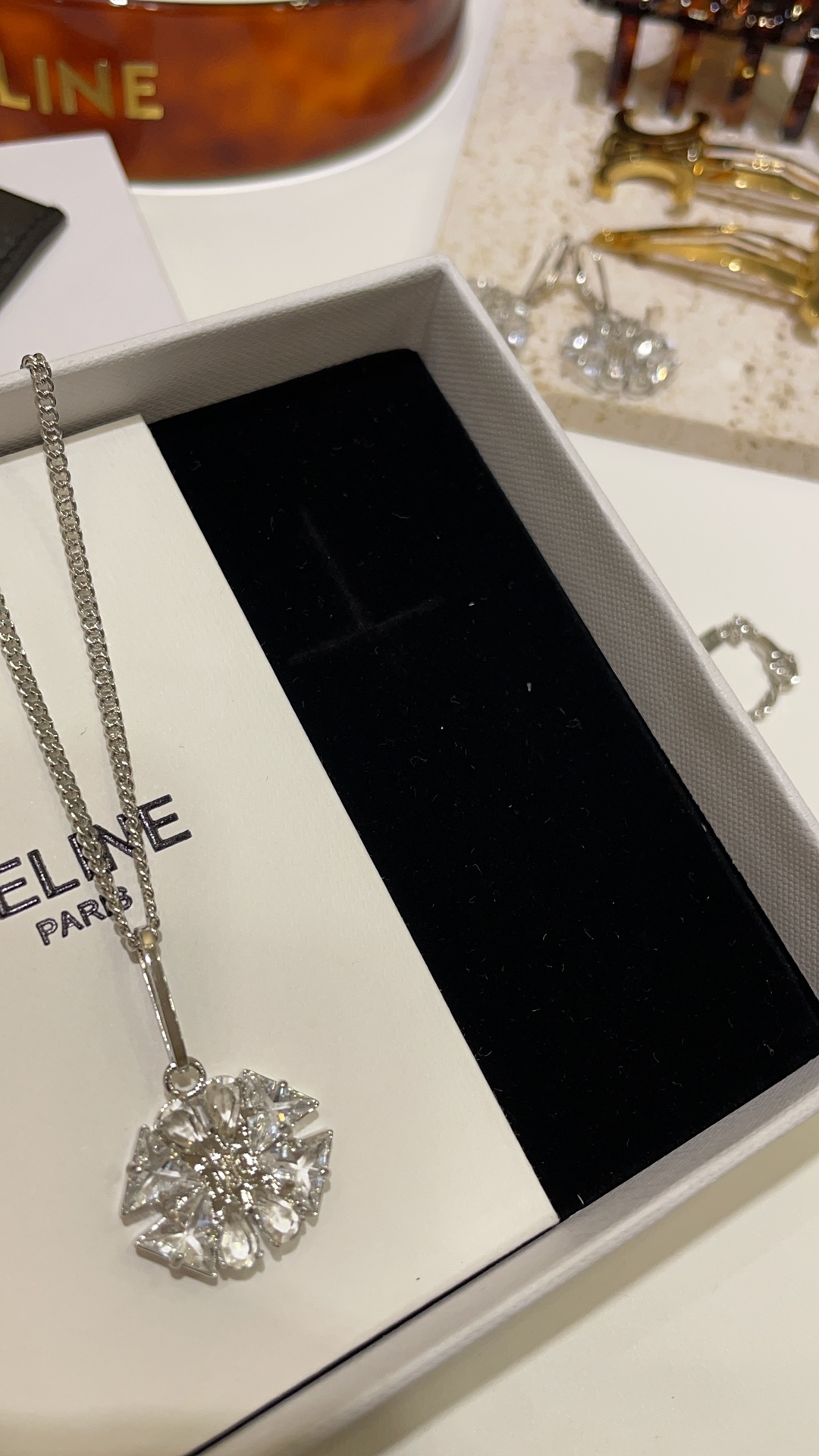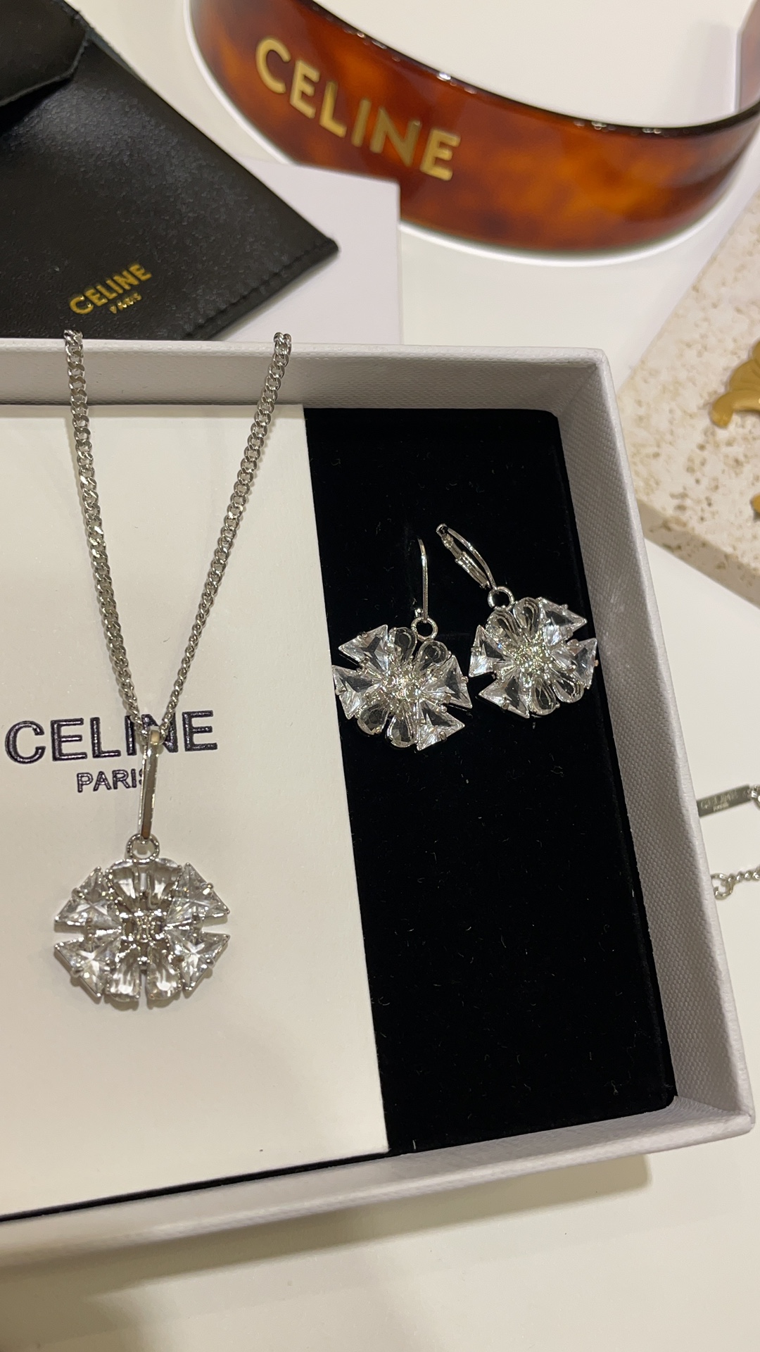 赛家 新款凯旋门徽标银色水晶花朵项链