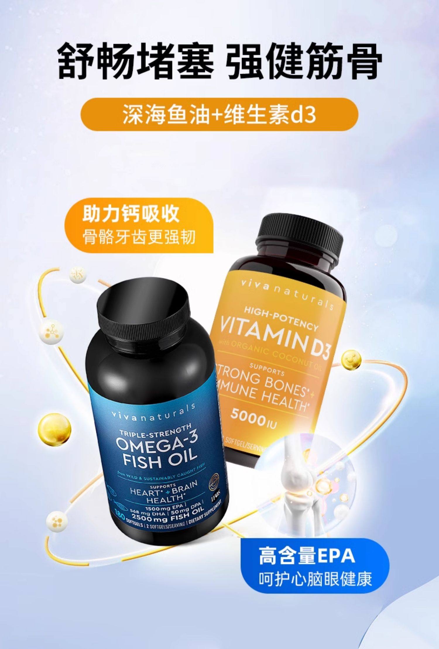 viva进口深海鱼油软胶囊180粒欧米伽维他命vd3补钙维生素D促吸收