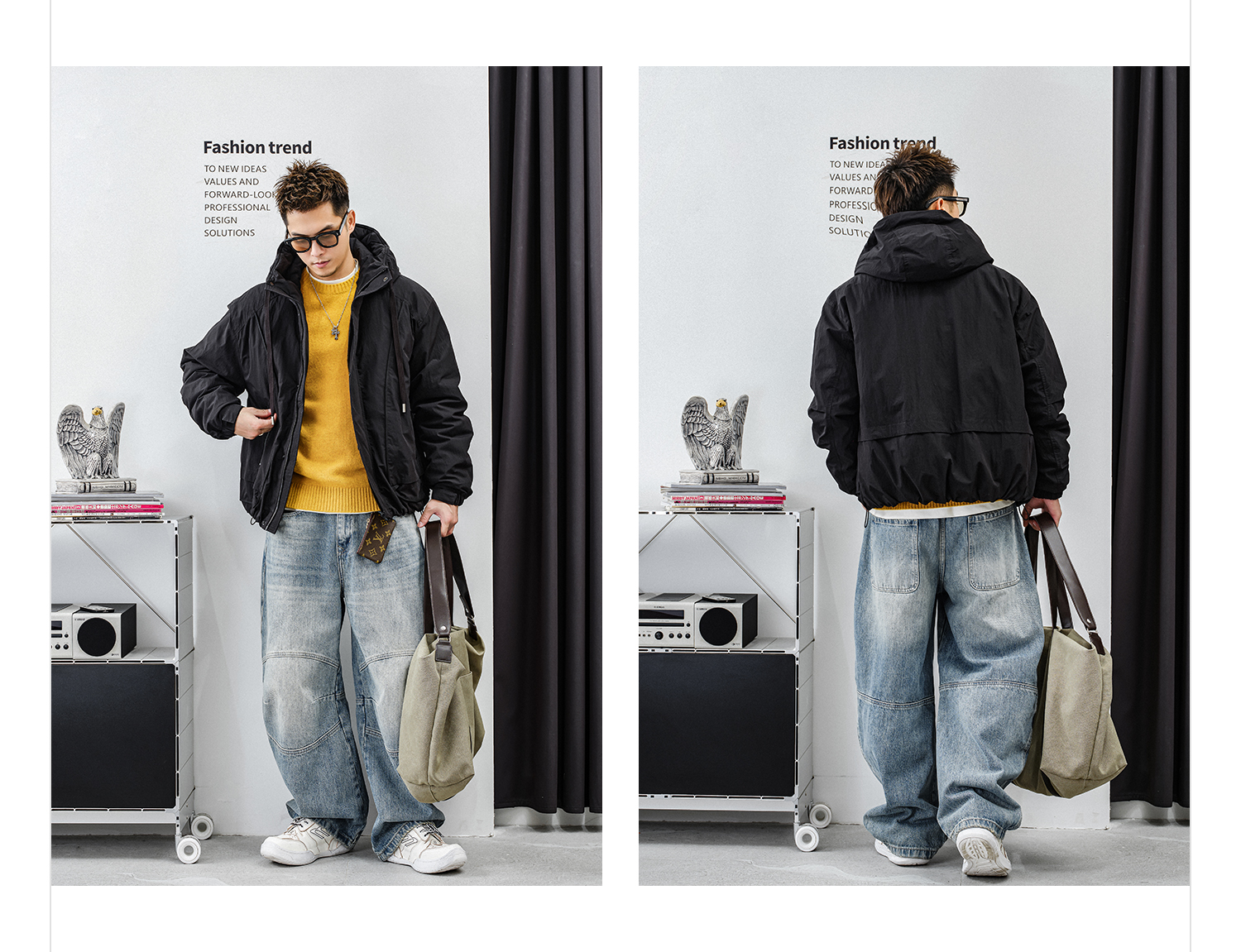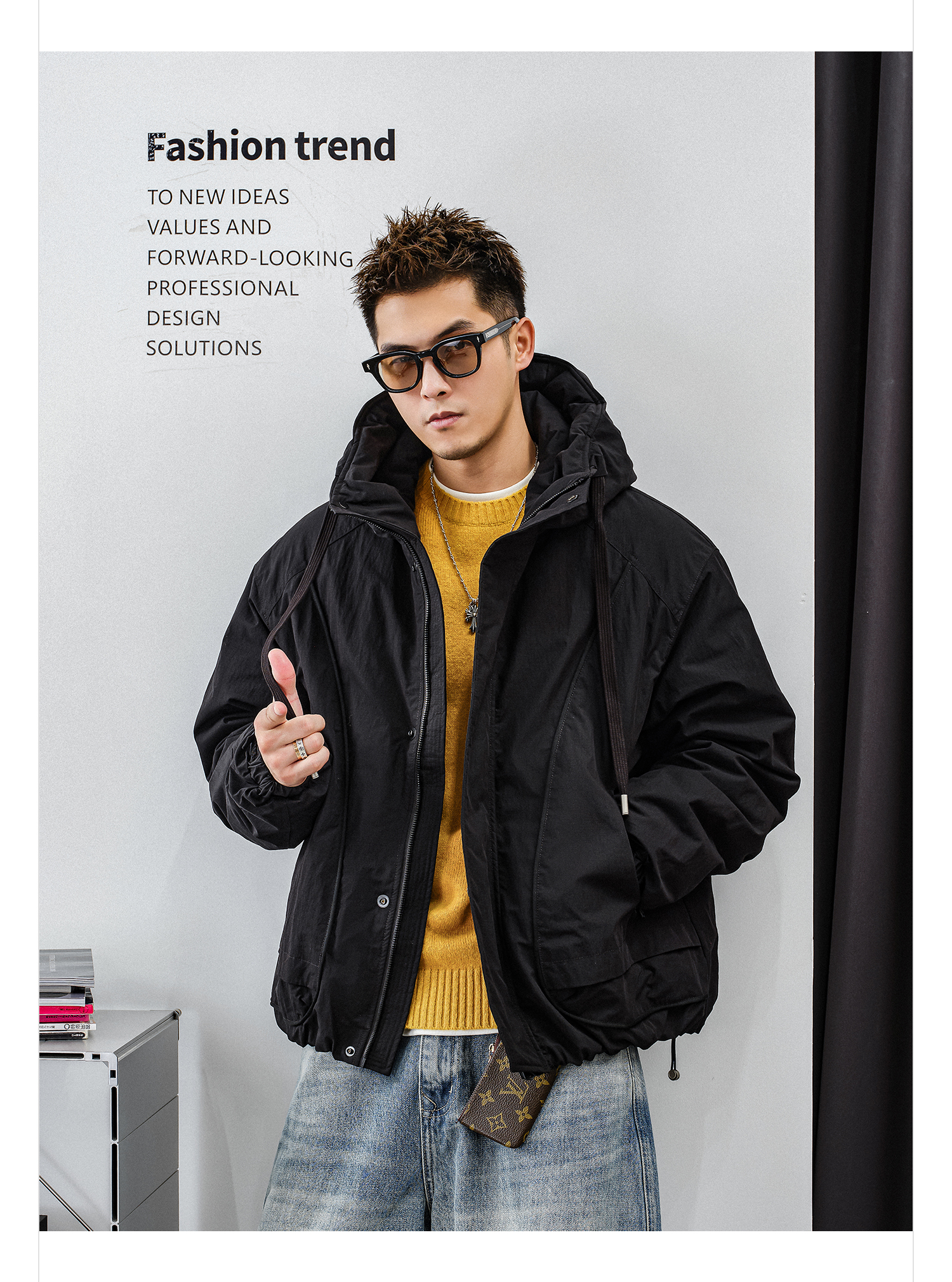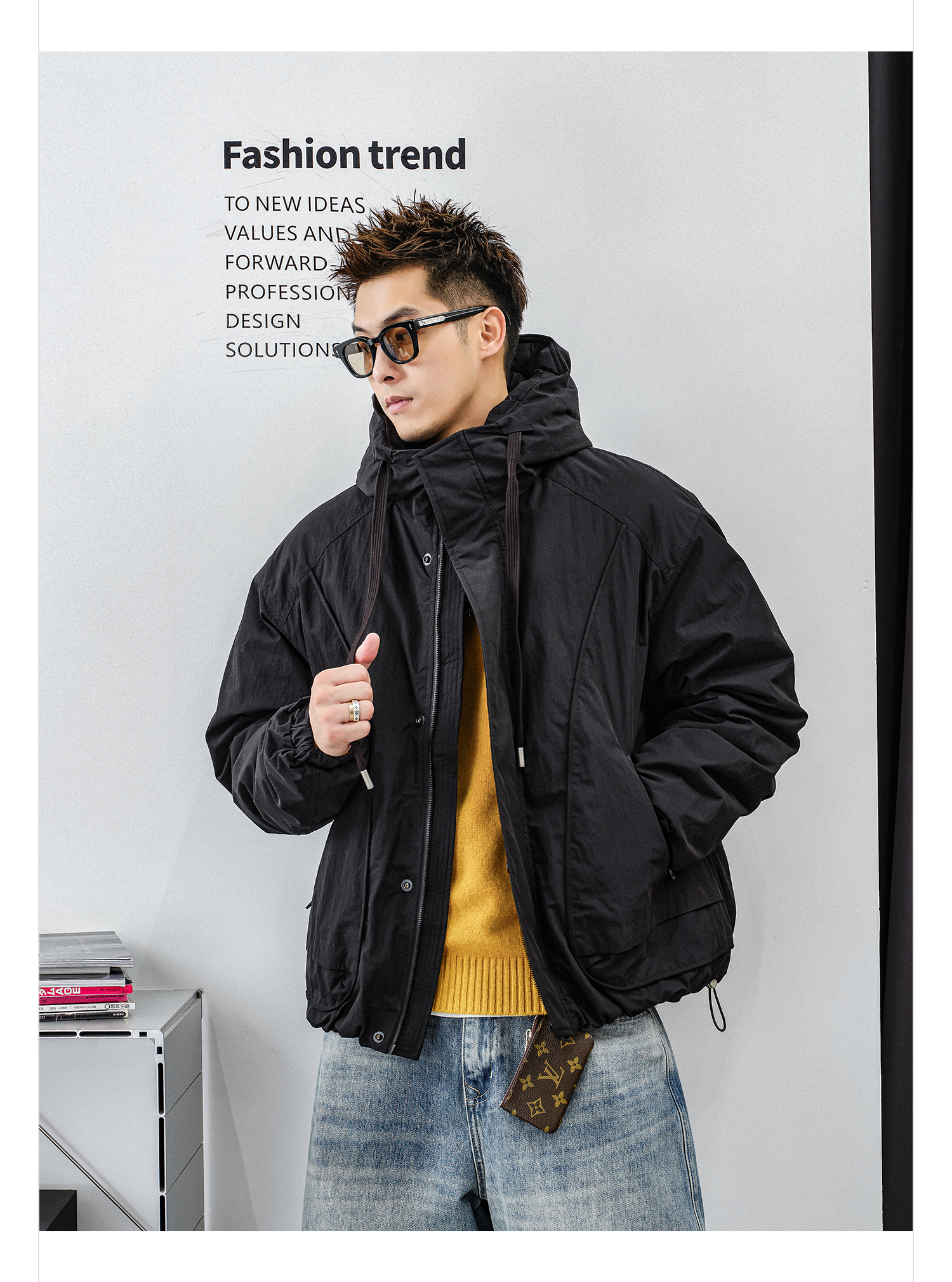 徐太浪【立体裁剪 抽绳收腰】连帽羽绒服男冬季大码防寒黑色外套