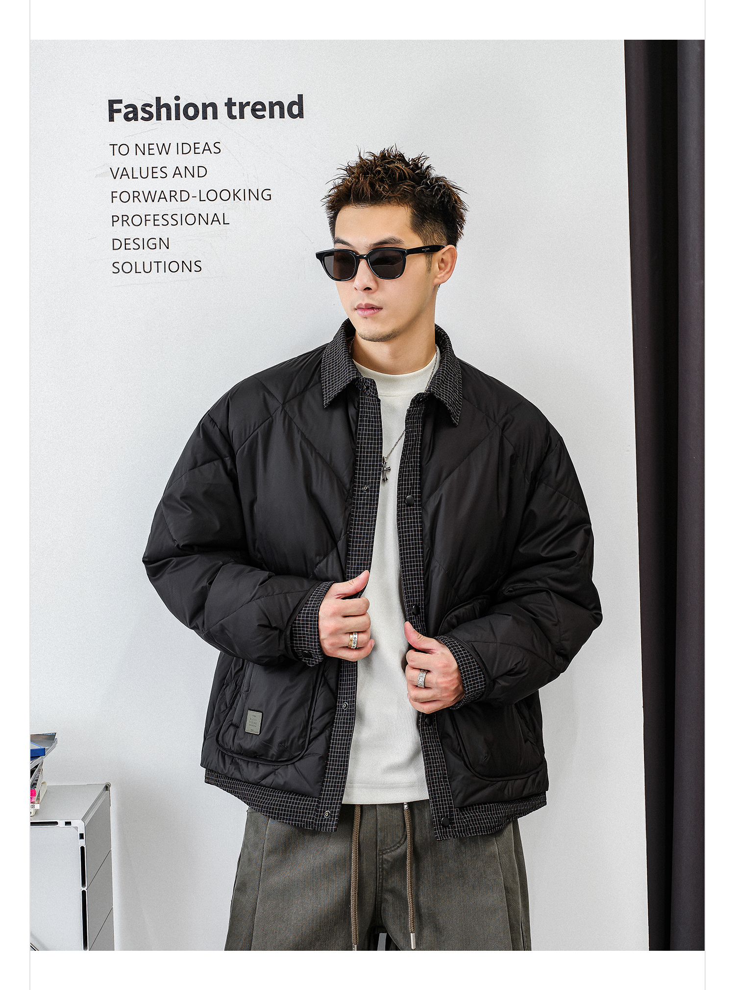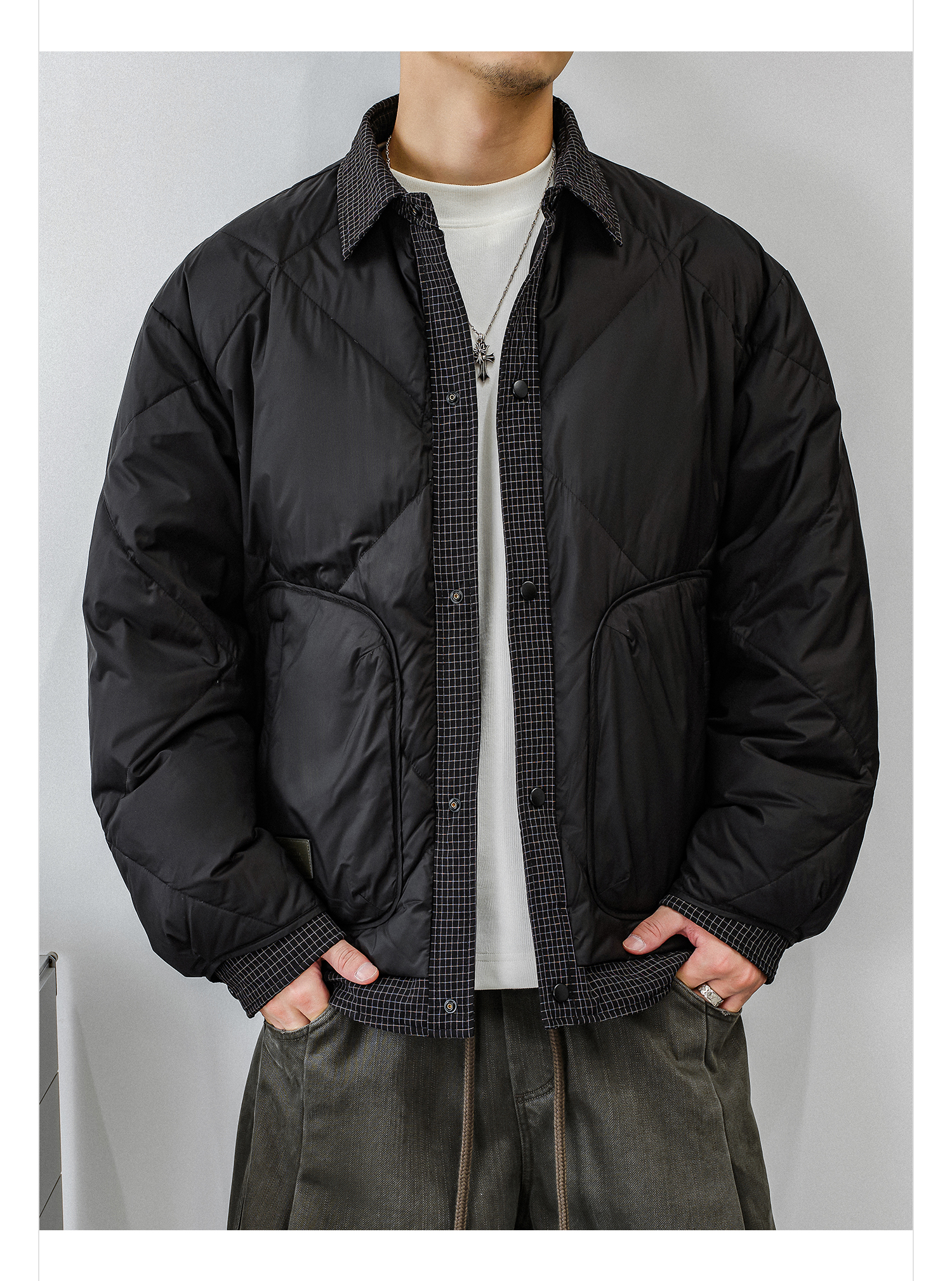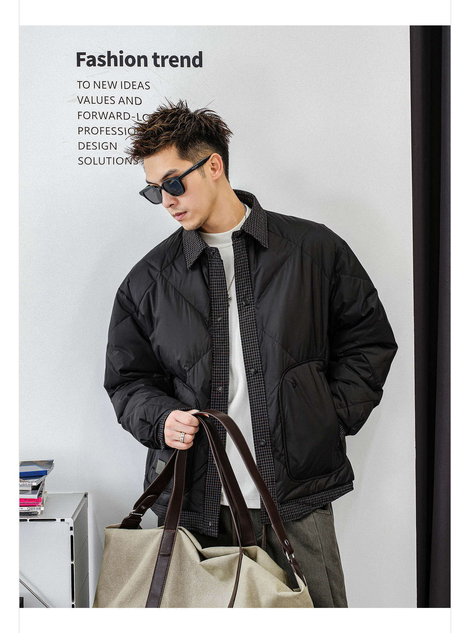 徐太浪【菱格纹绗缝】格子开襟羽绒服男冬季保暖防寒大码男士外套