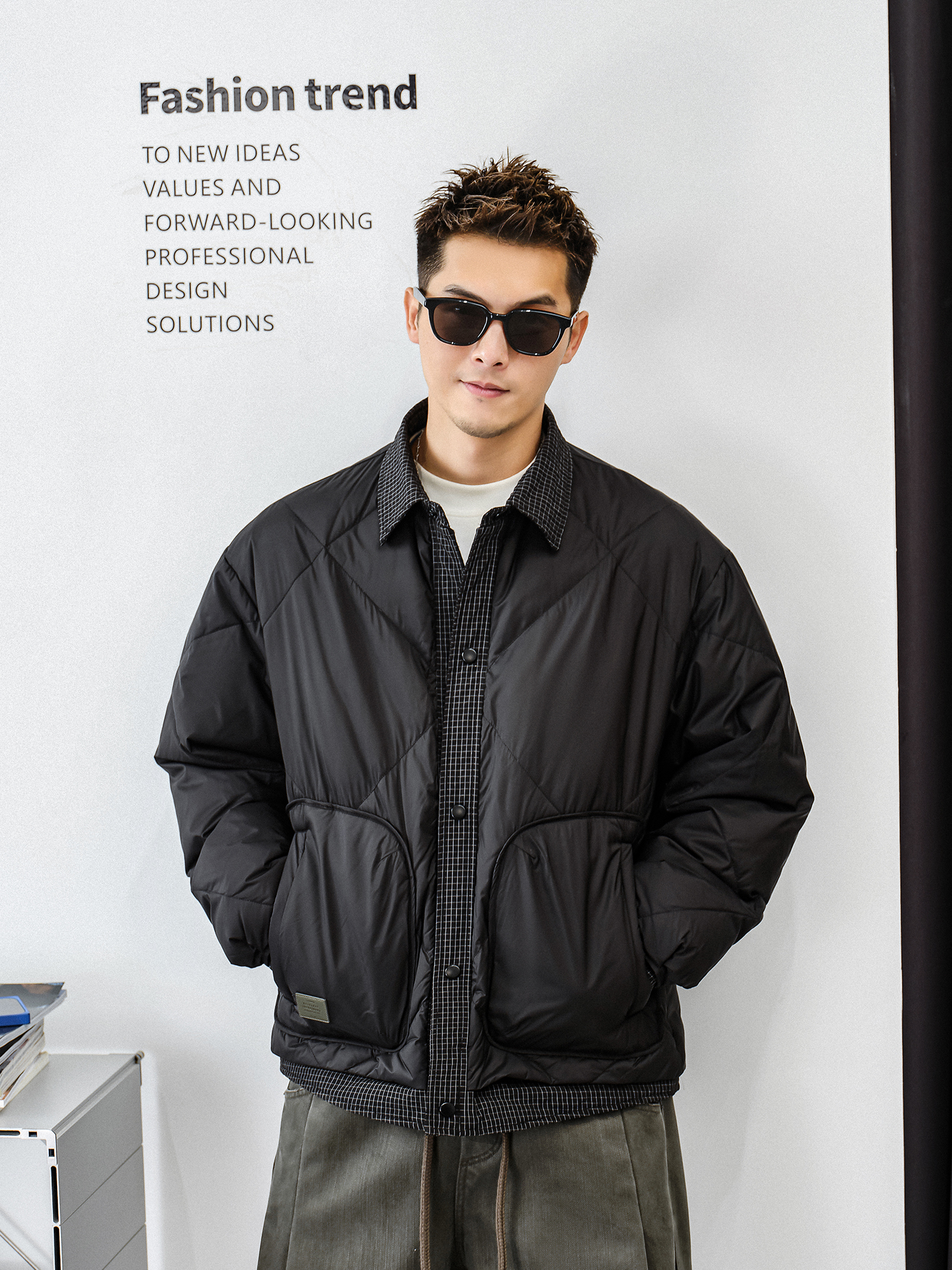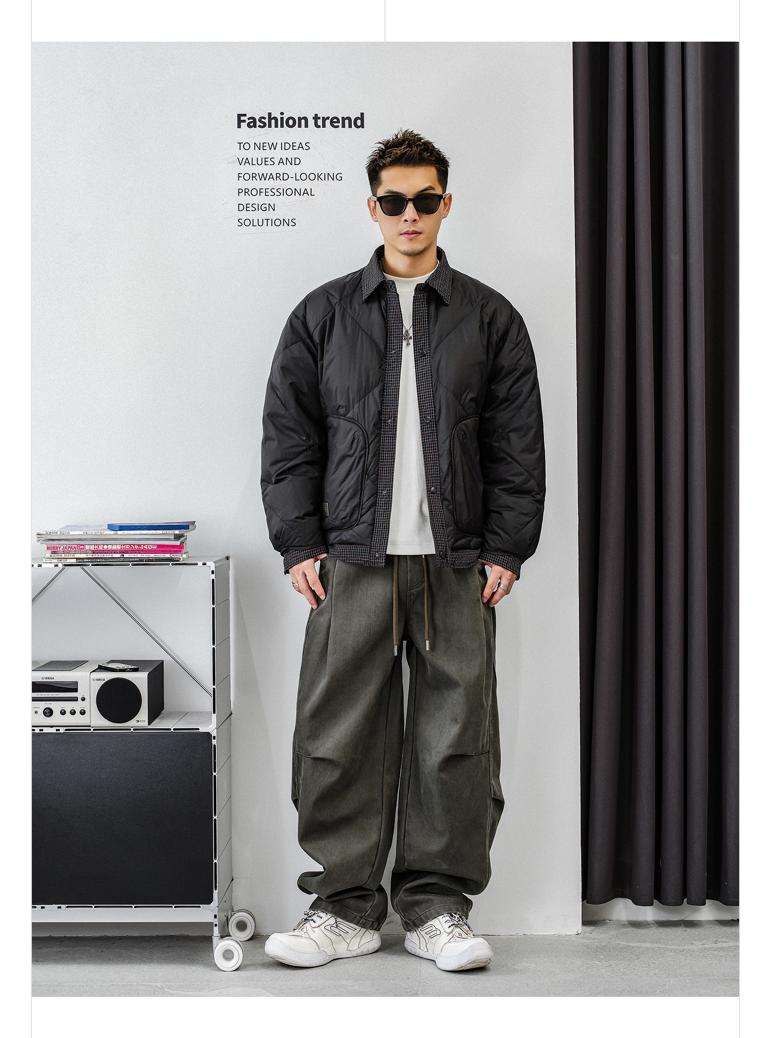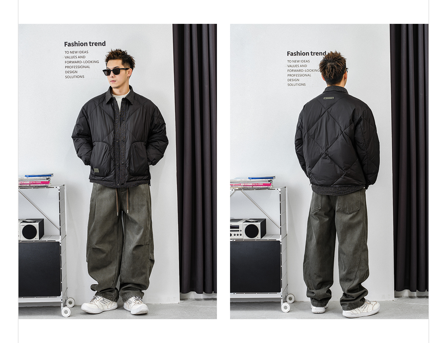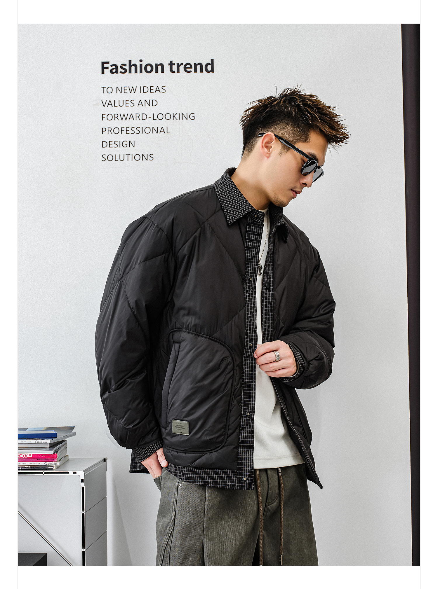徐太浪【菱格纹绗缝】格子开襟羽绒服男冬季保暖防寒大码男士外套