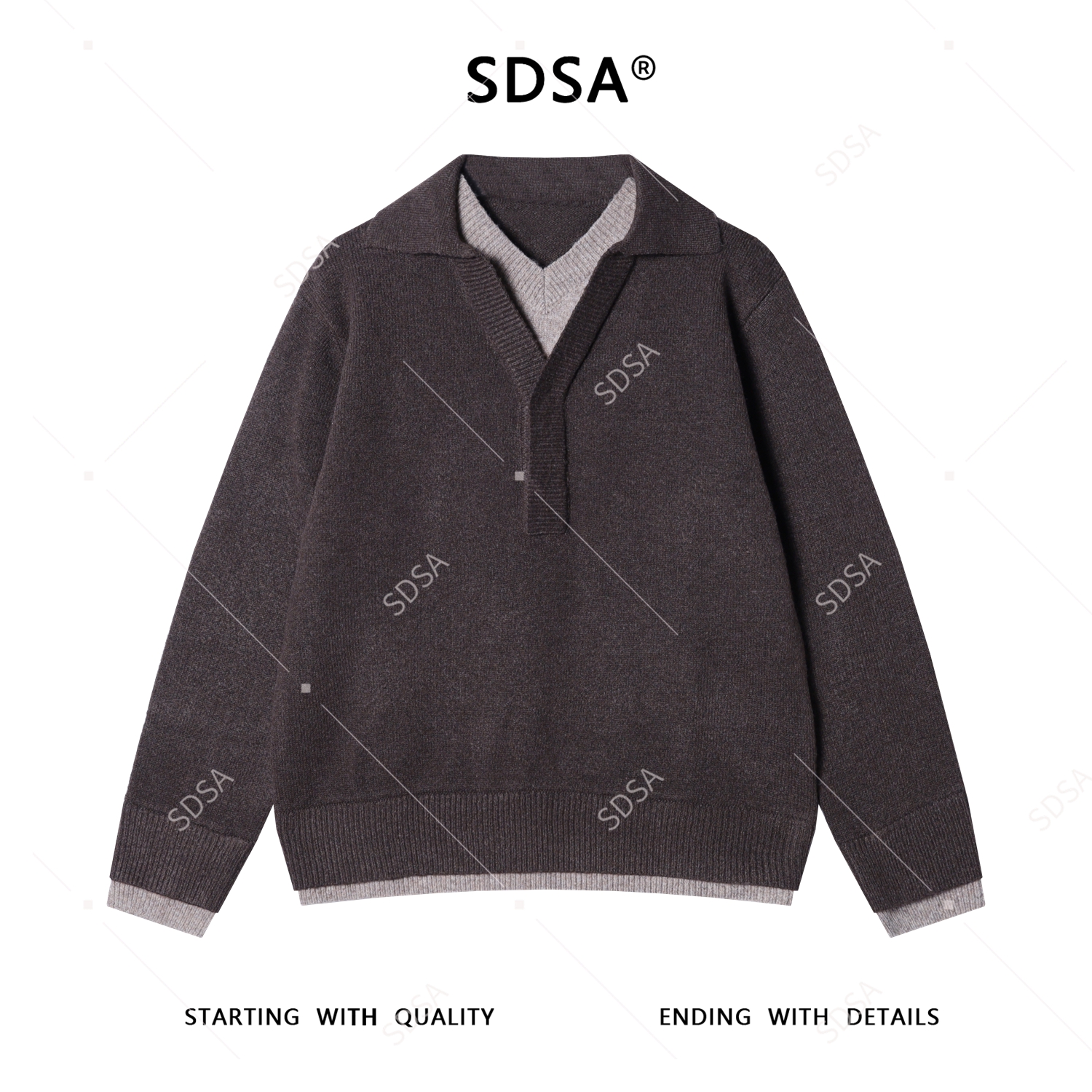 9936SDSA男士秋冬新款痞帅男装韩版撞色翻领净版假两件毛衣宽松百搭