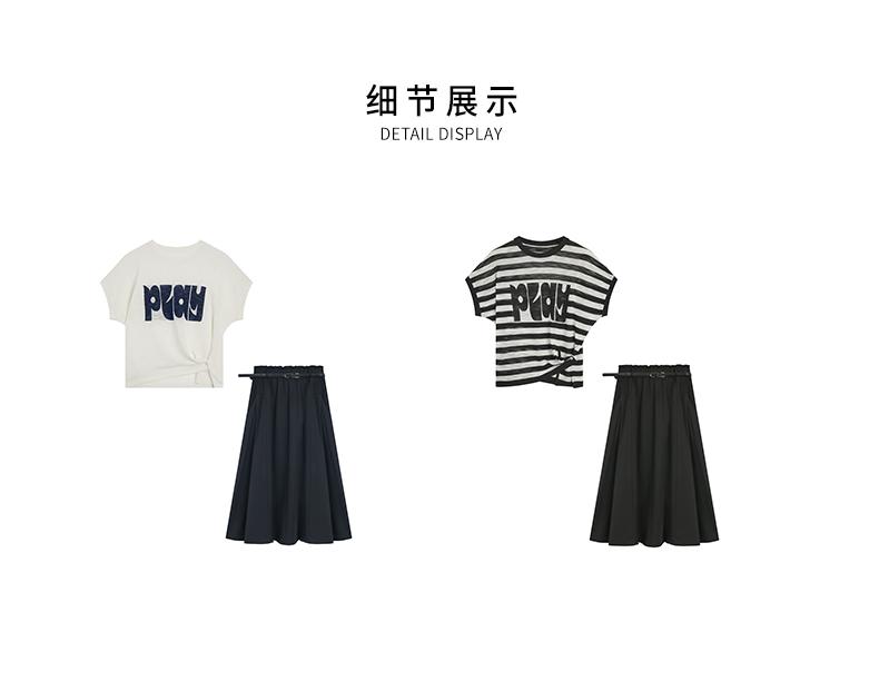 N°28 2025夏季套装条纹短袖T恤上衣显瘦半身裙遮肉裙子套装885241Z121