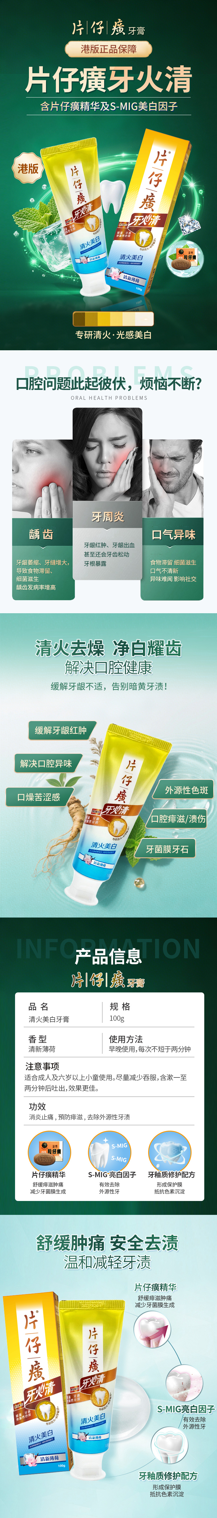 【保税仓】正品 片仔癀牙火清牙膏美白100G
