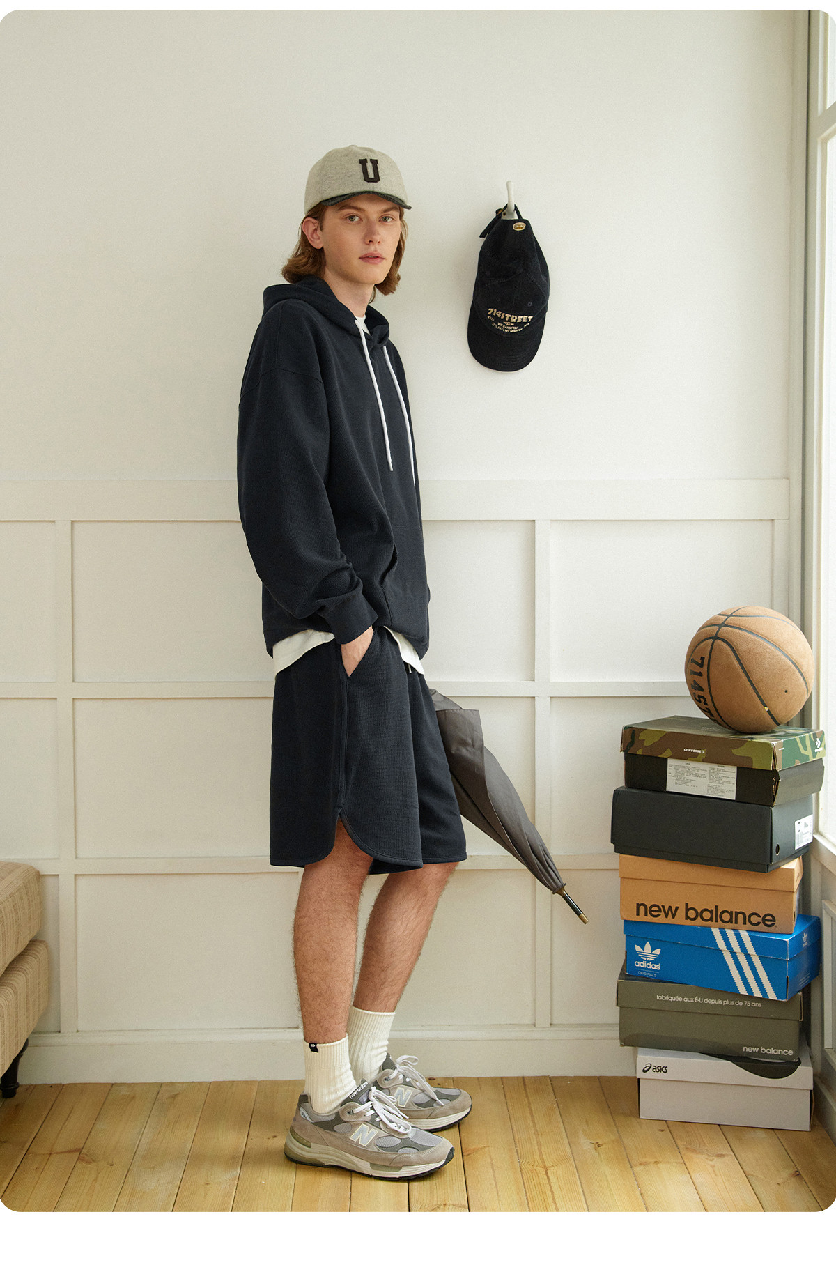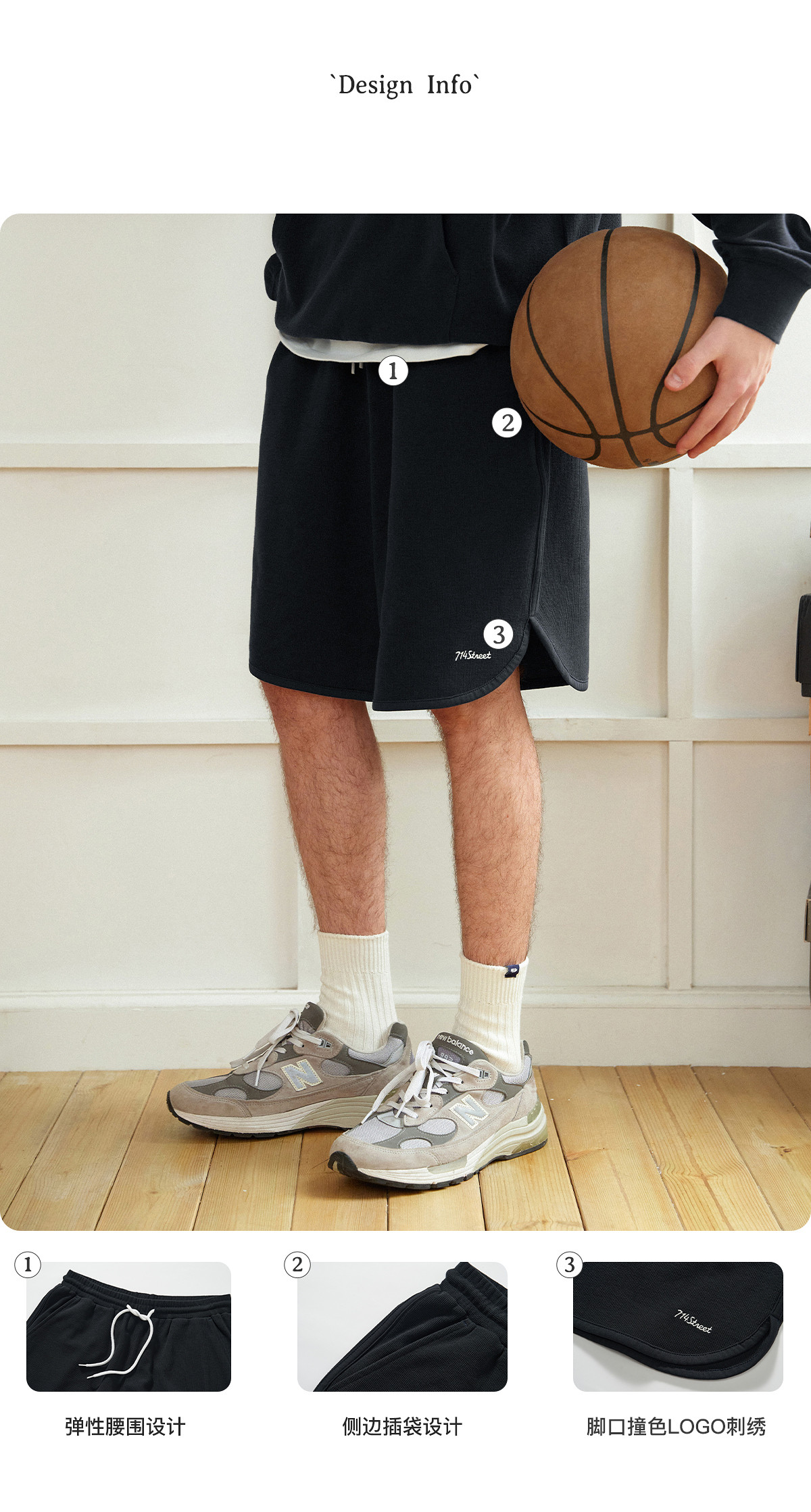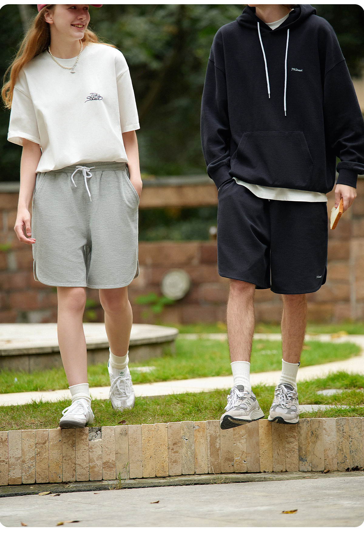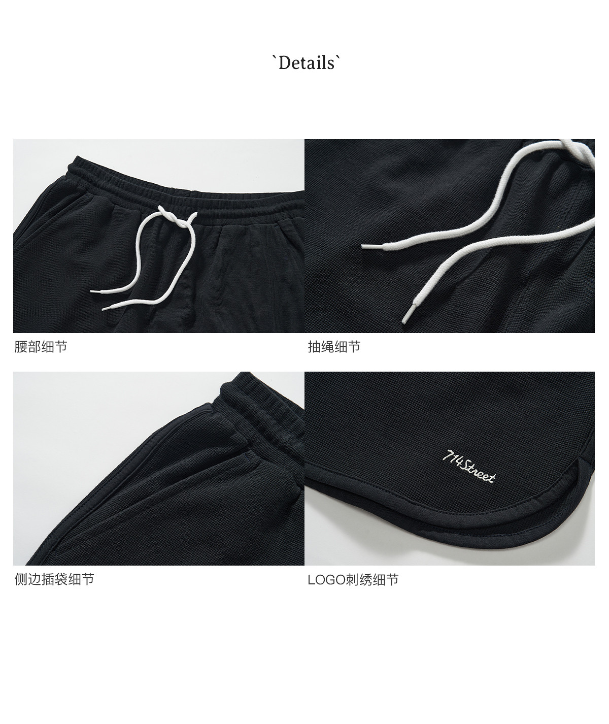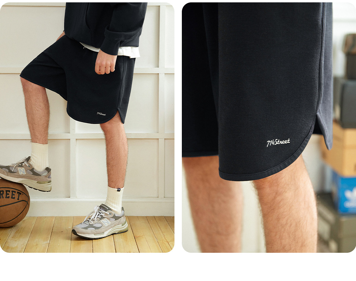 714street基础款华夫格休闲短裤男士2025夏季新款宽松灰色运动裤