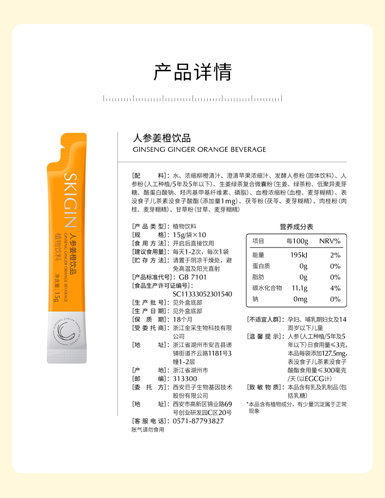【ROMI专属】【新品】巨子生物SKIGIN欣苷人参姜橙饮热燃代谢饮EGCG饮品