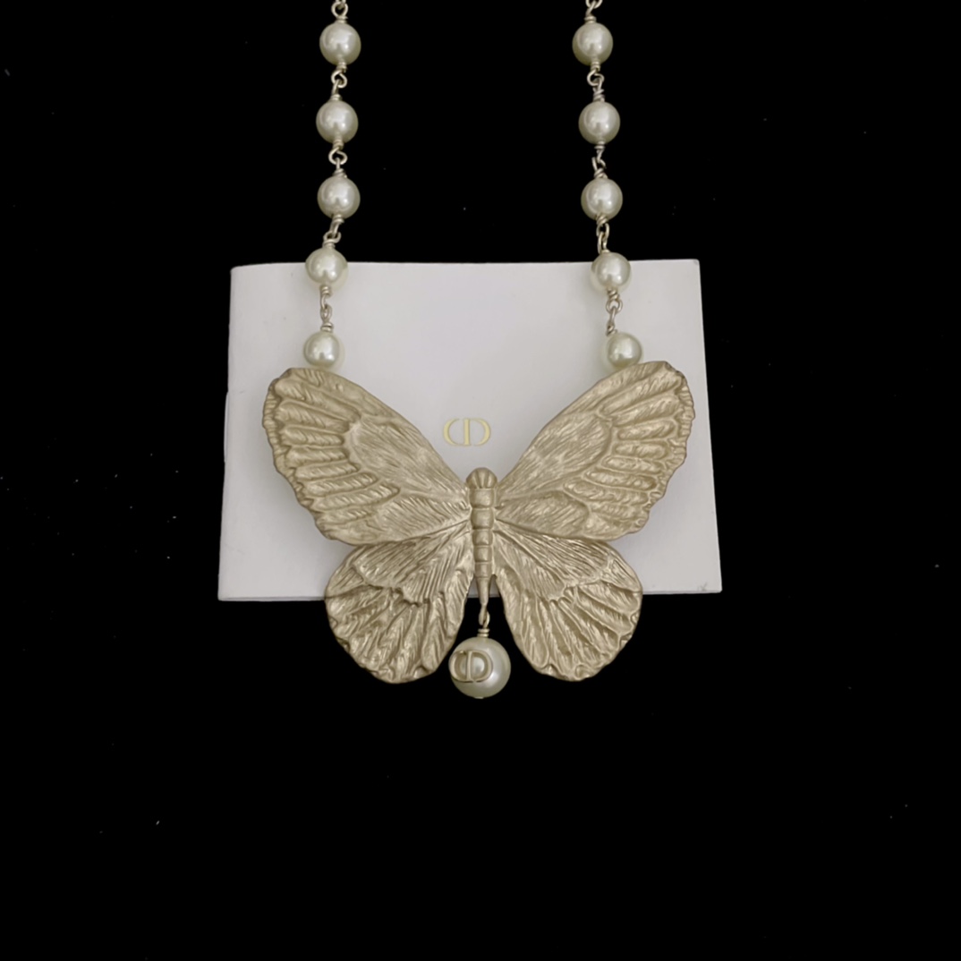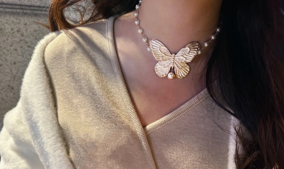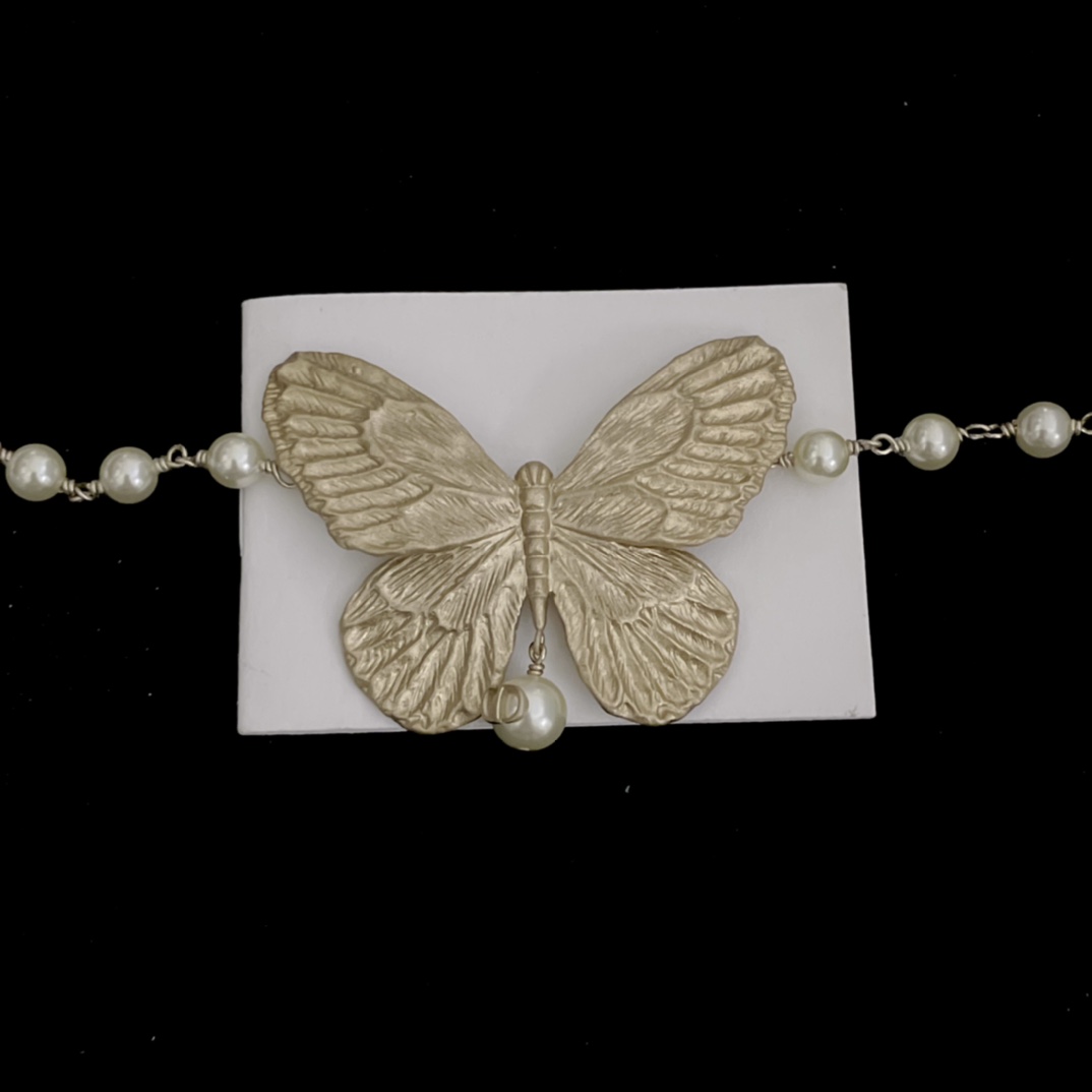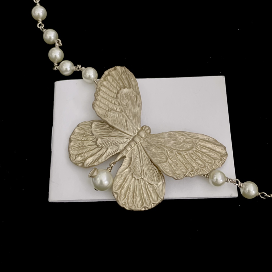 哑金大蝴蝶结珍珠项链高质量