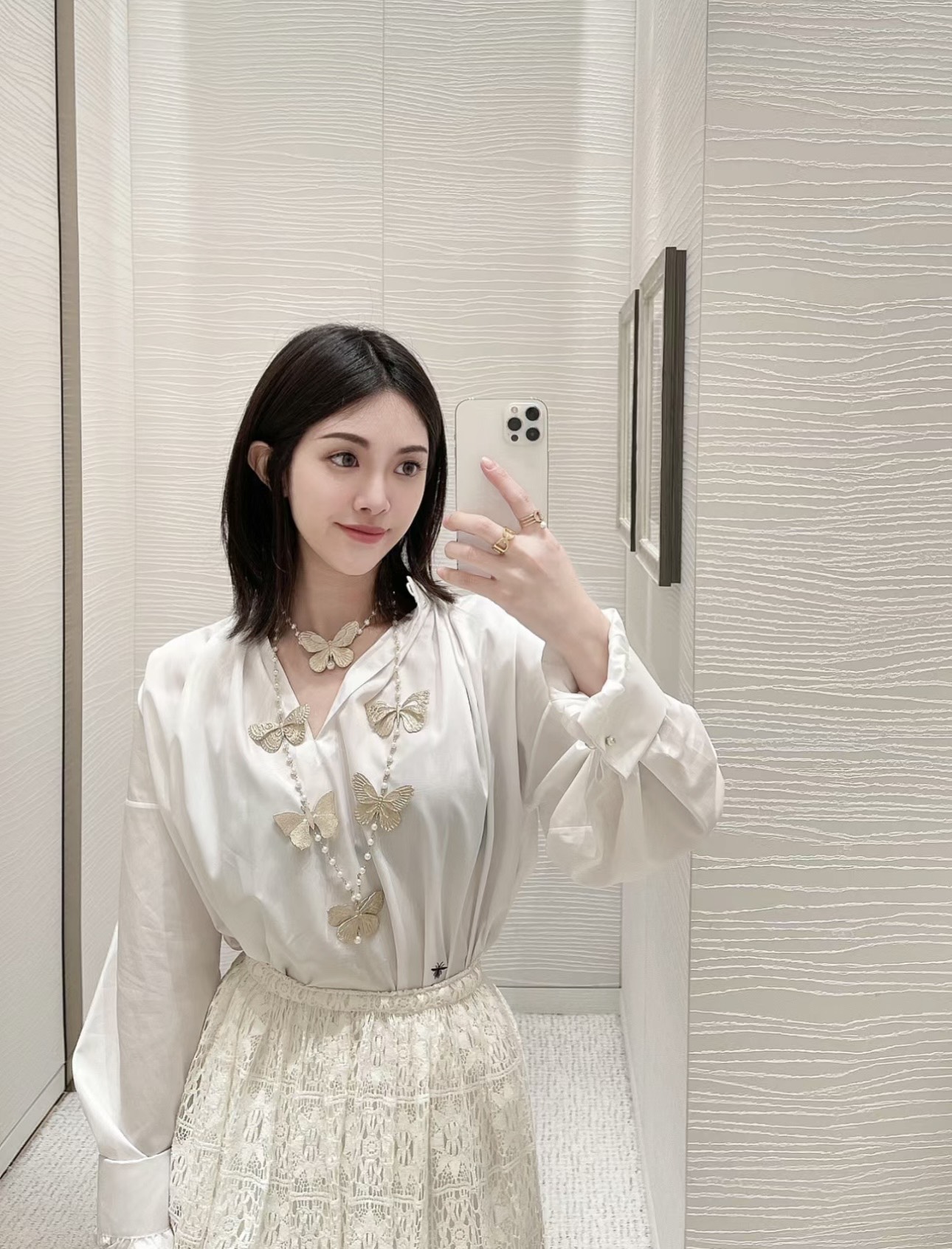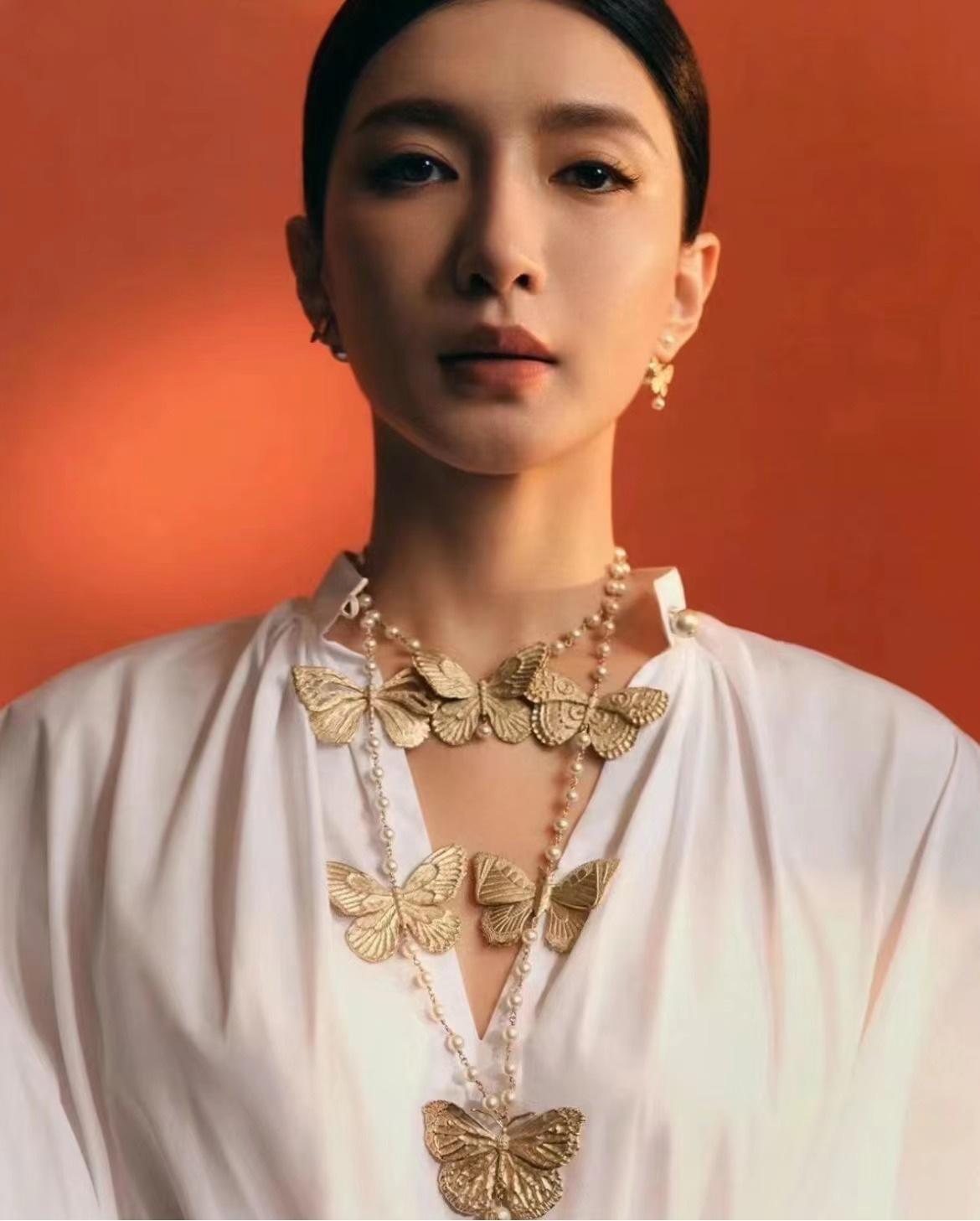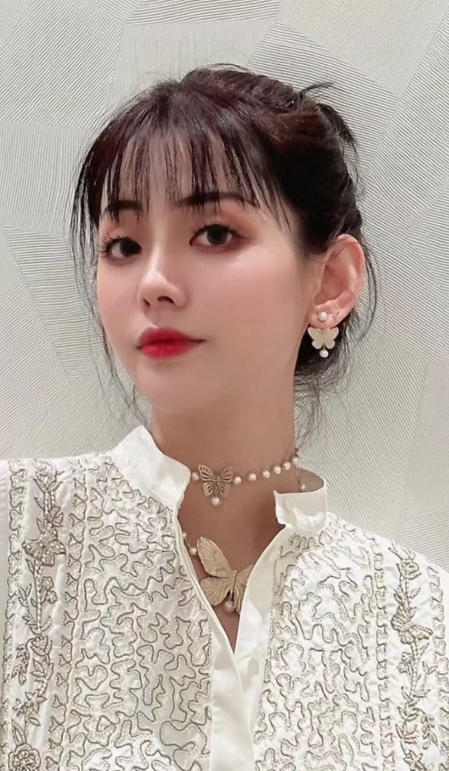 哑金大蝴蝶结珍珠项链高质量