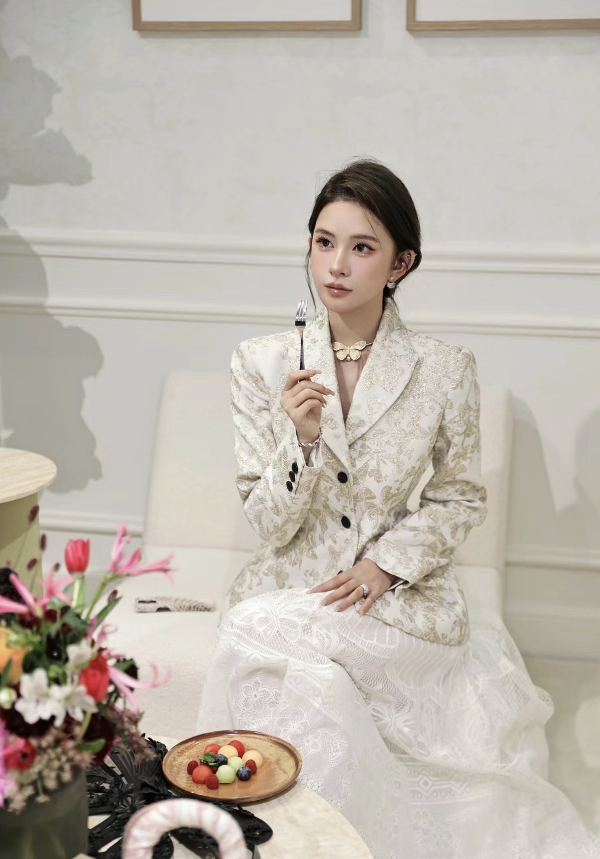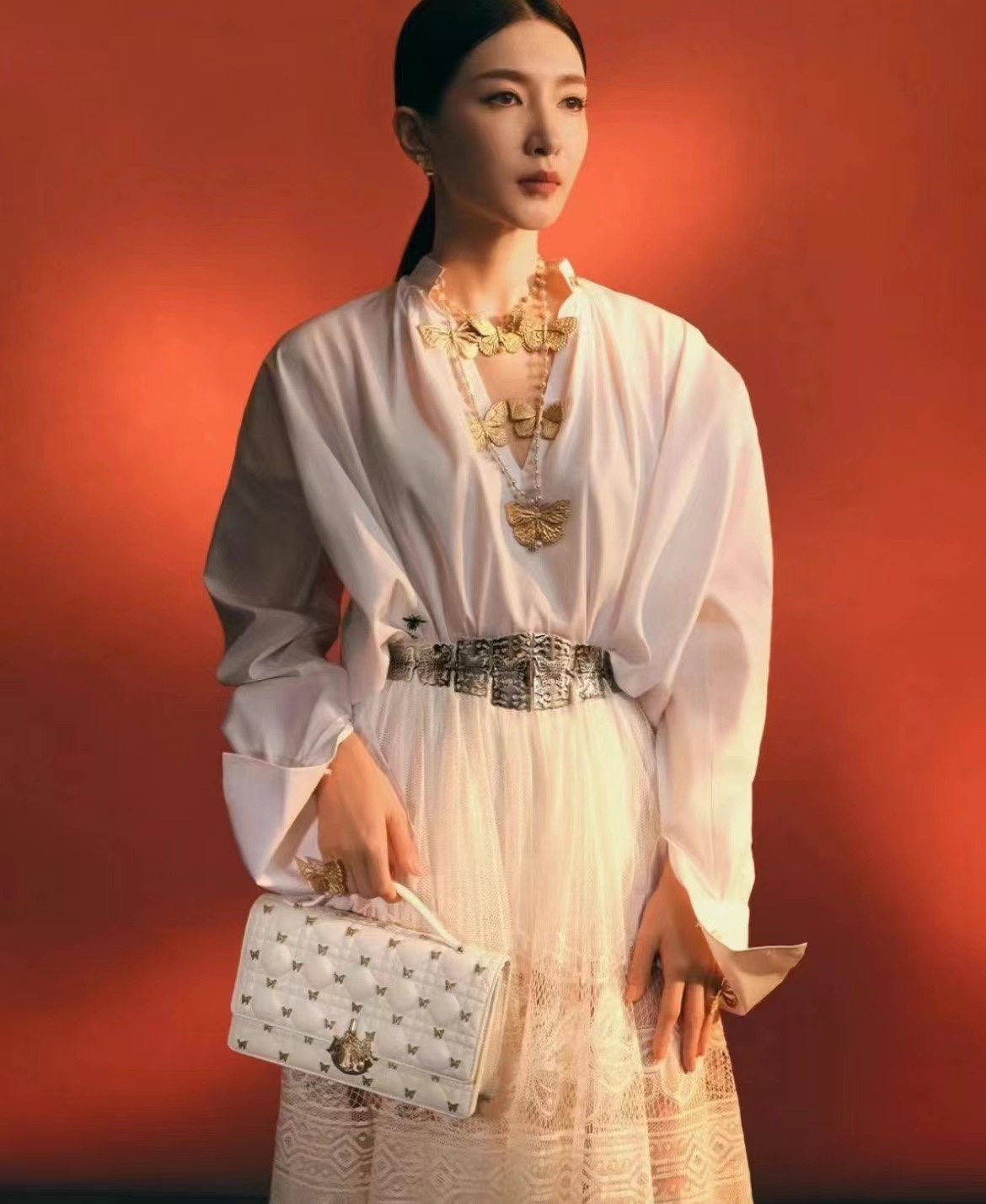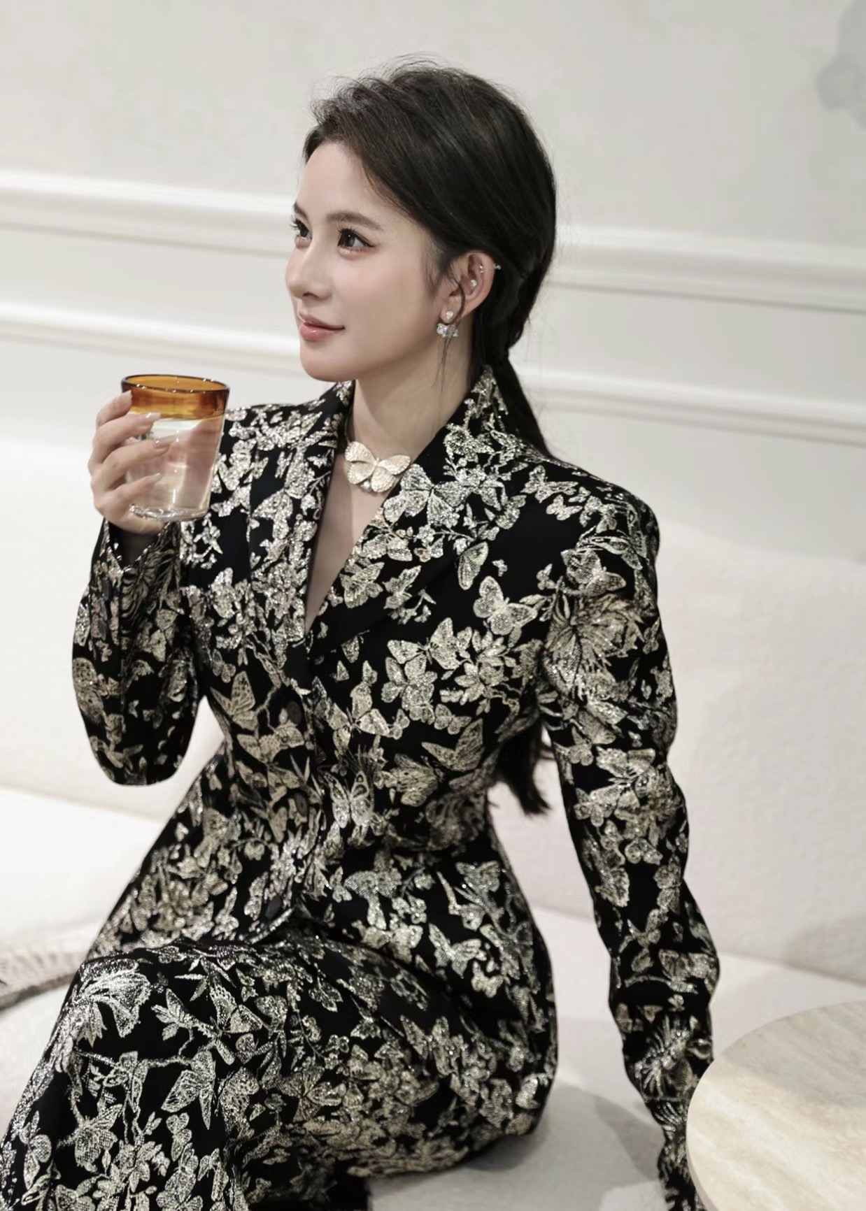 金色浮雕大蝴蝶纹路清晰,仿佛油画走出来的美