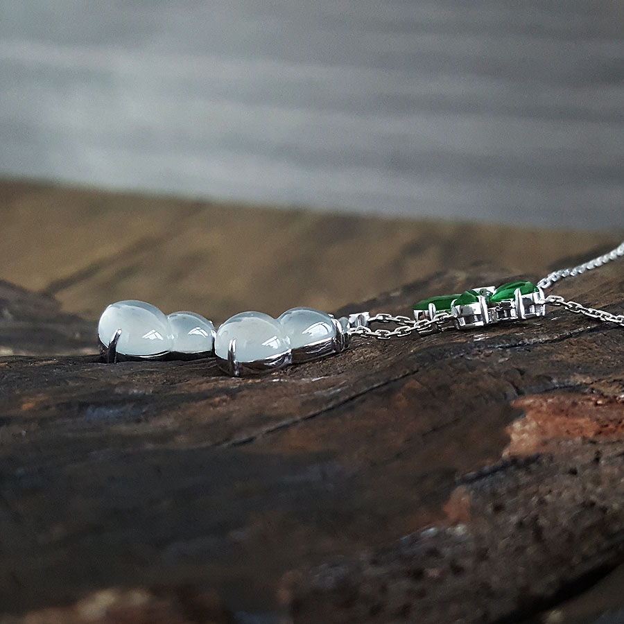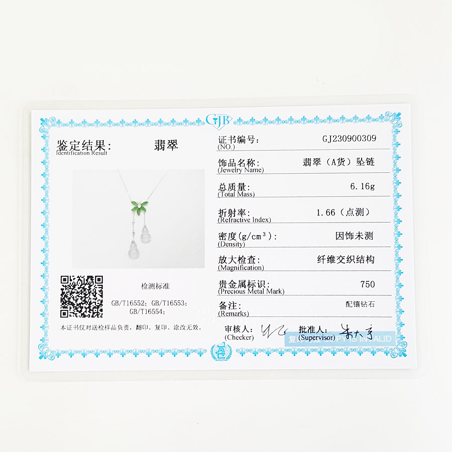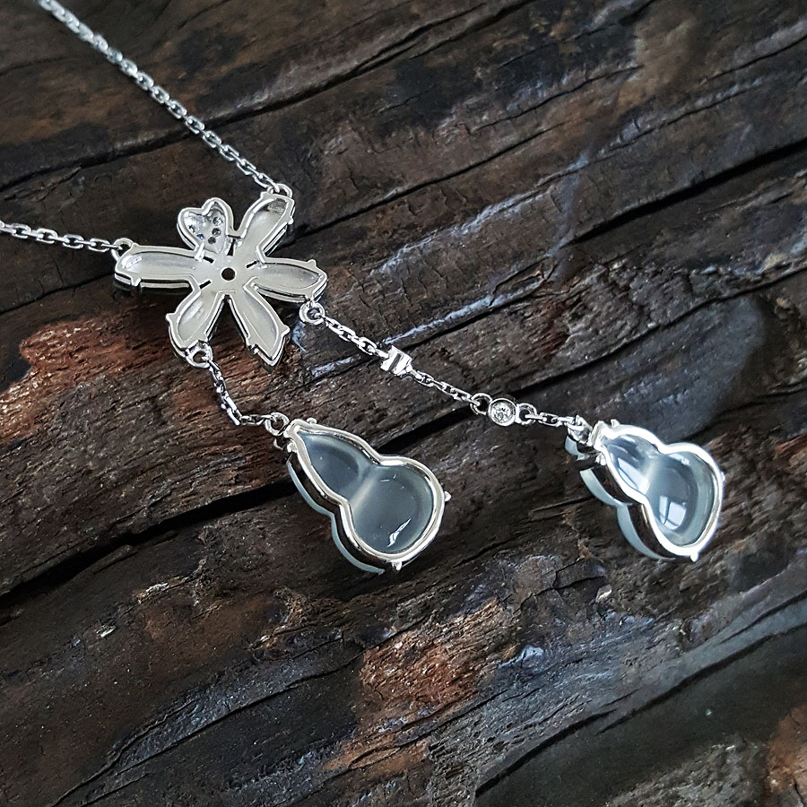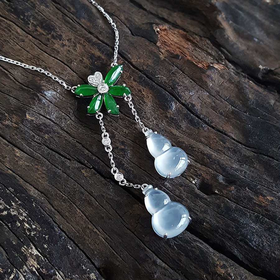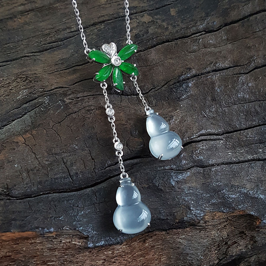 【天然正品】AU750收藏级白金镶钻镶高冰种双葫芦造型翡翠(福禄双全)吊坠项链260424XY26