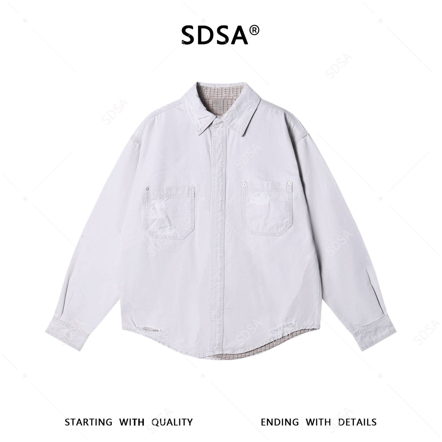 SDSA男装2026新款潮牌复古工装风衬衫磨破格纹内衬上衣