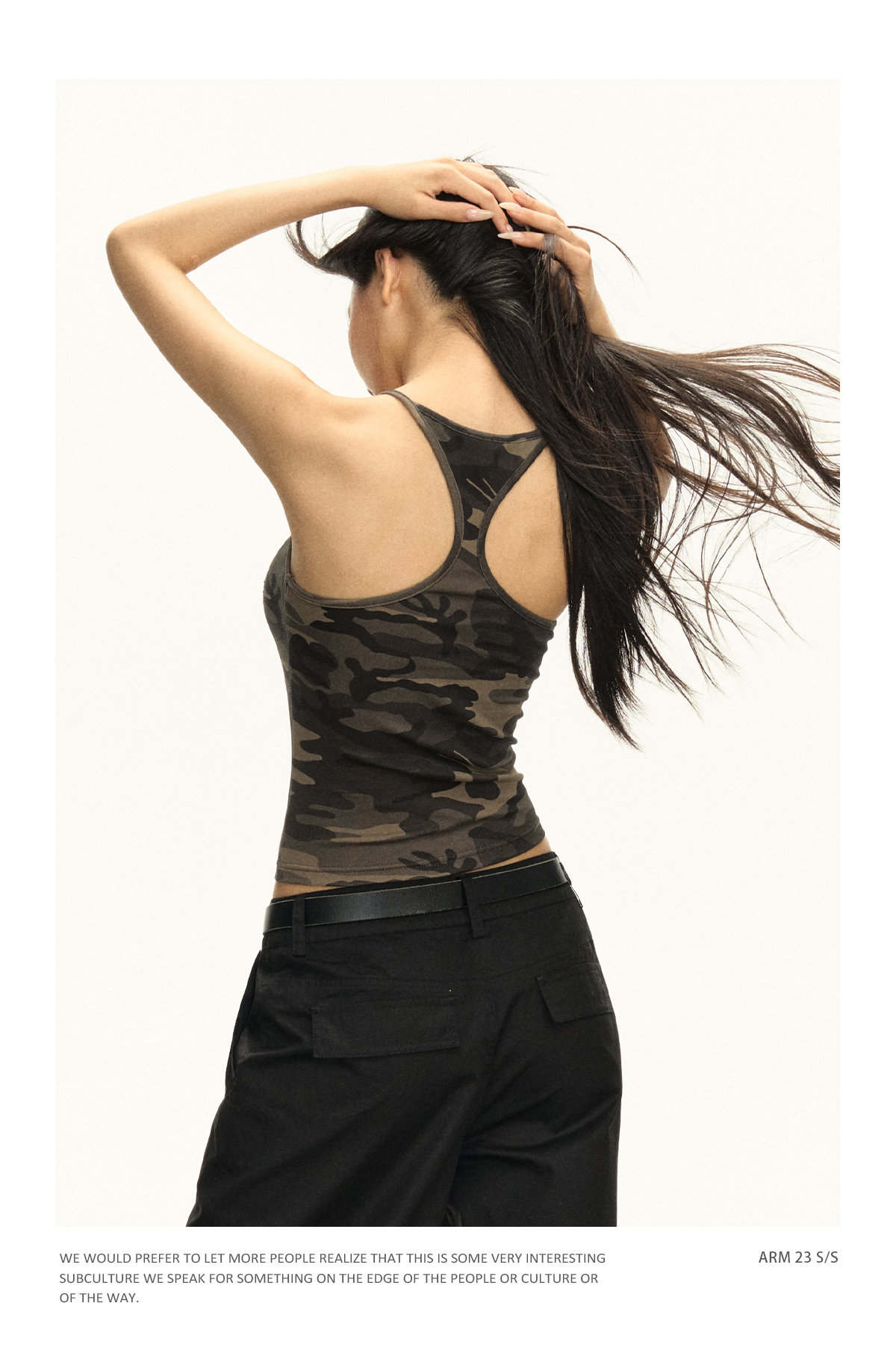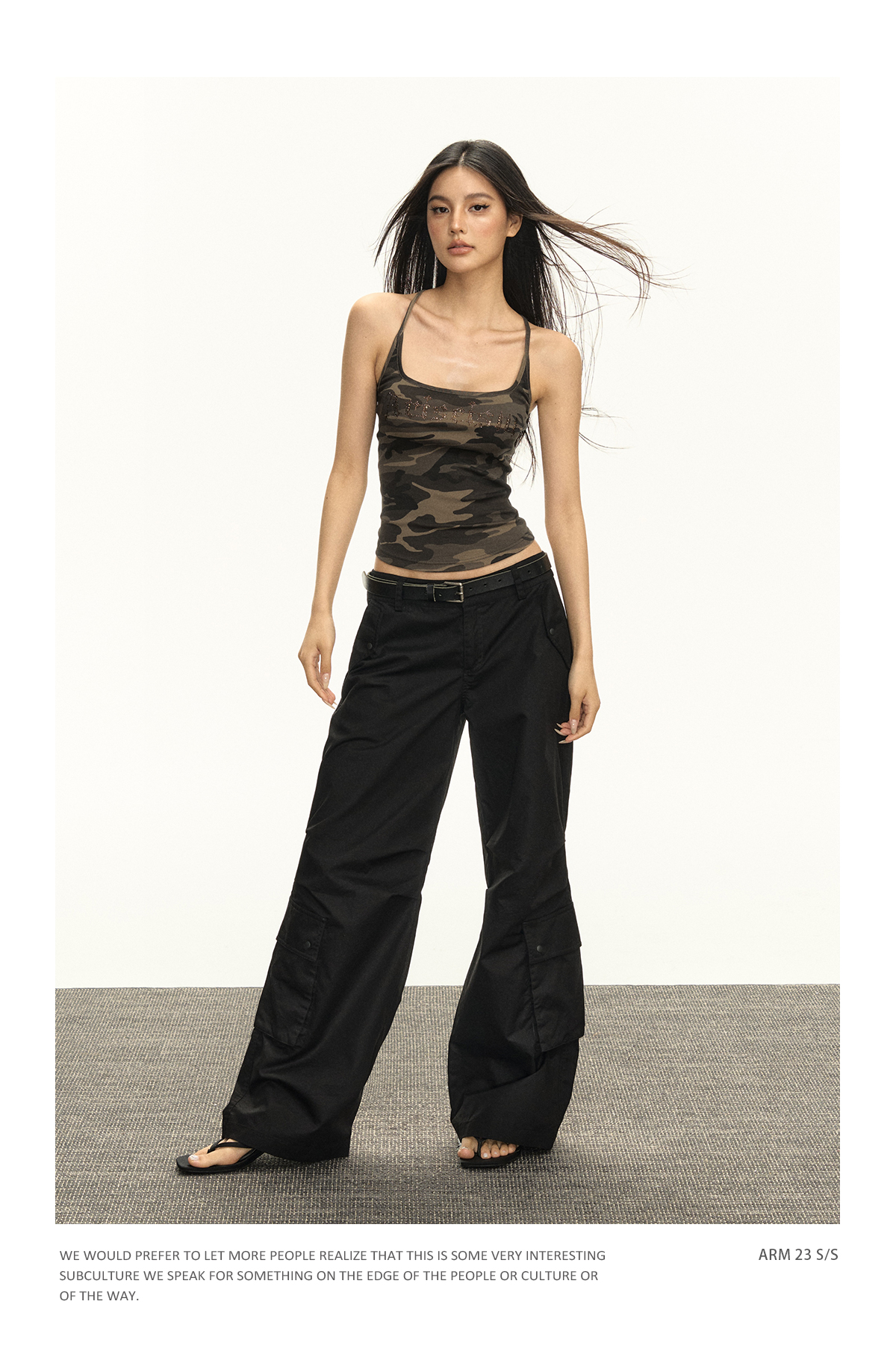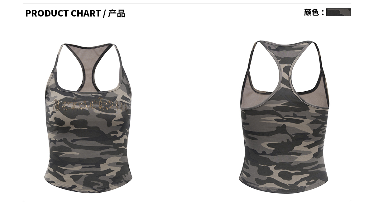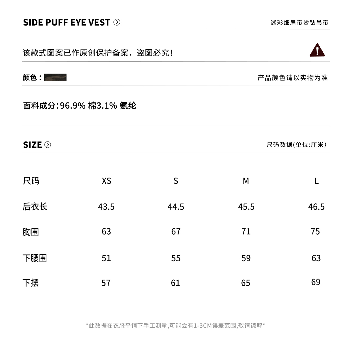 Ariseism美式设计感迷彩烫钻短款吊带背心女夏季外穿显瘦修身上衣
