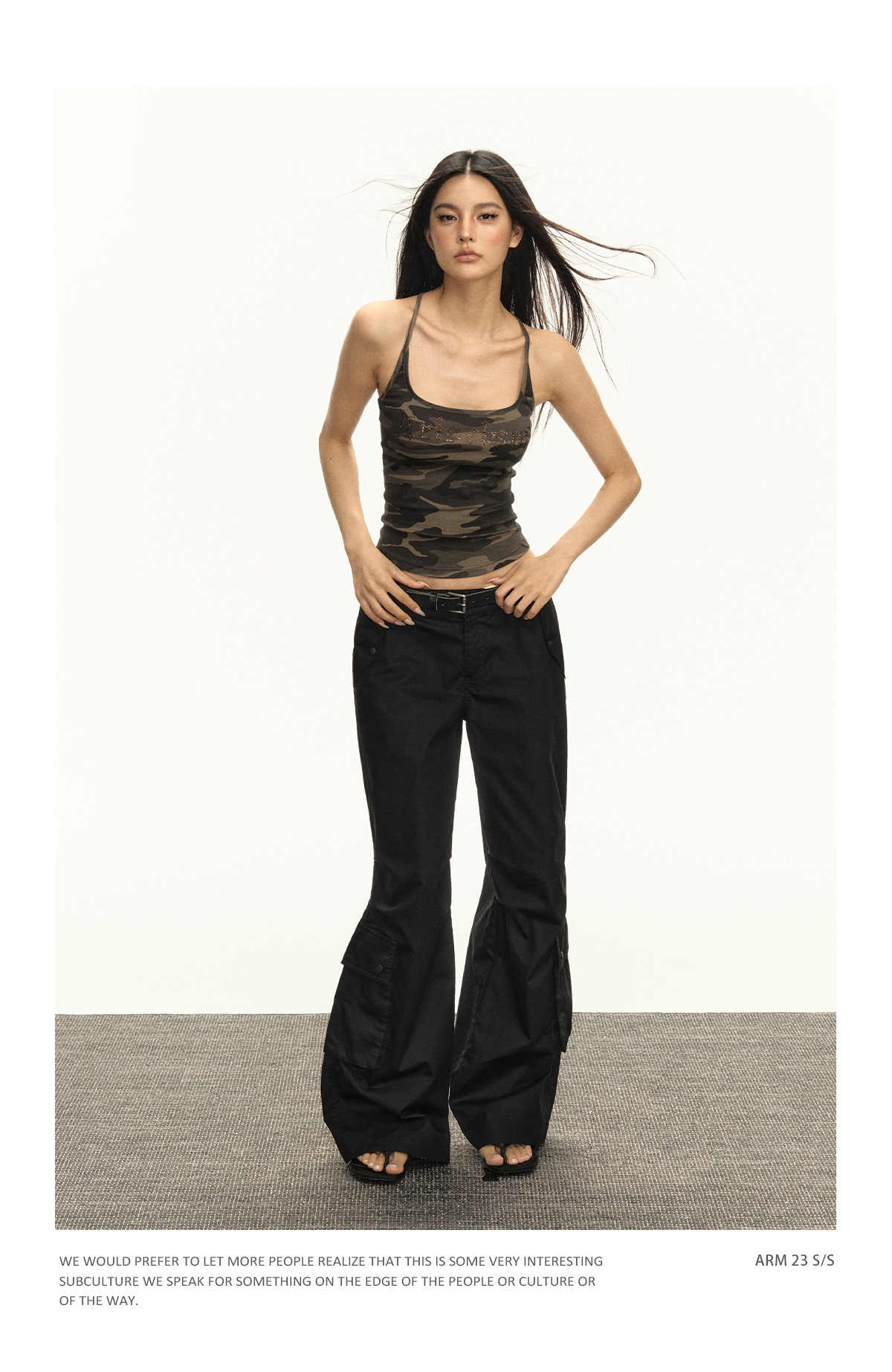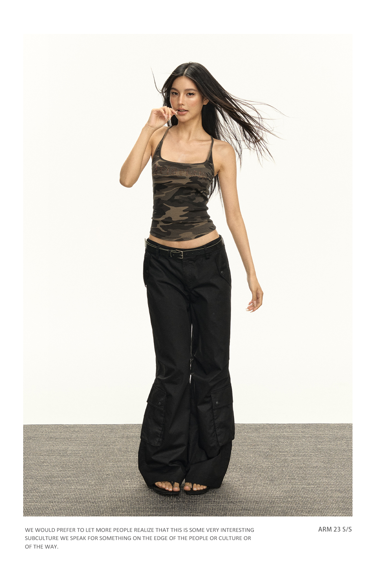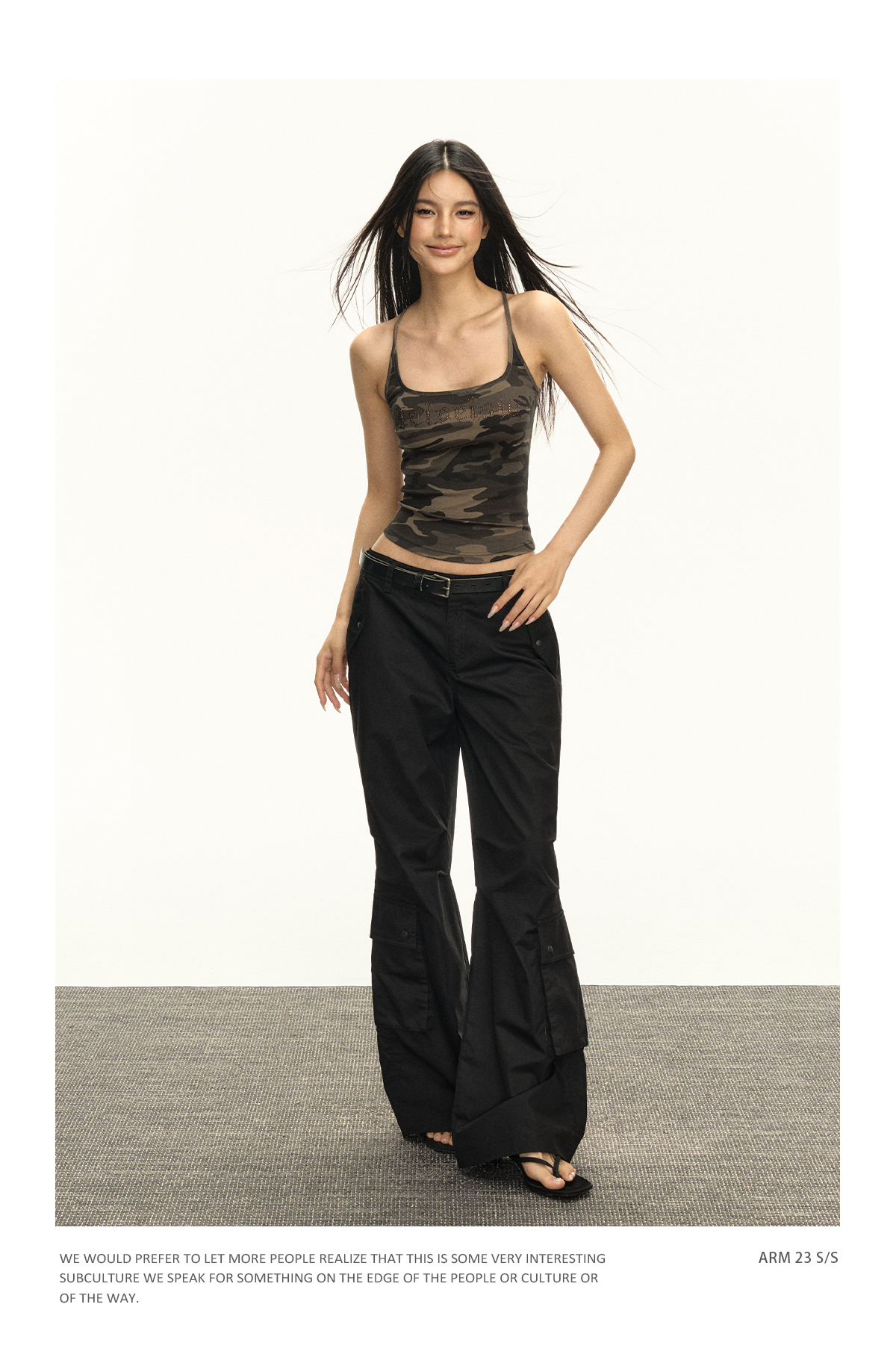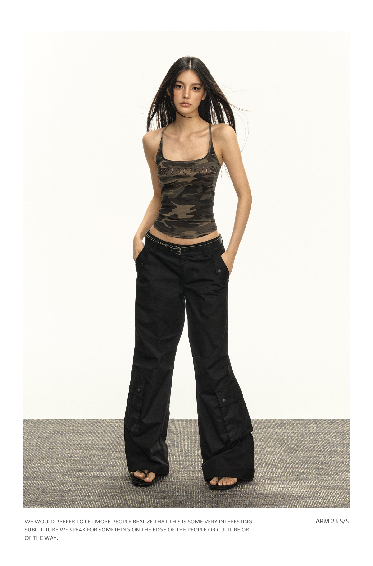 Ariseism美式设计感迷彩烫钻短款吊带背心女夏季外穿显瘦修身上衣