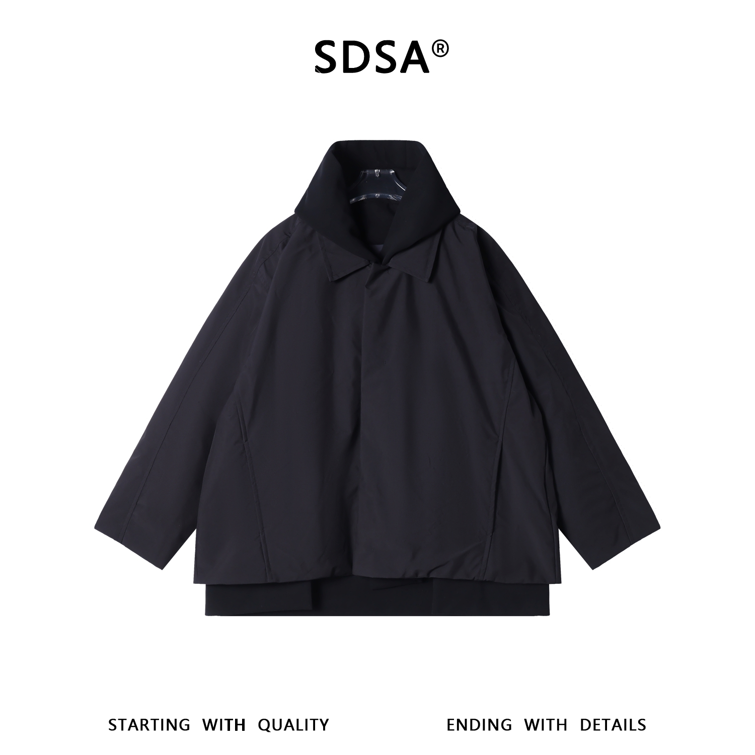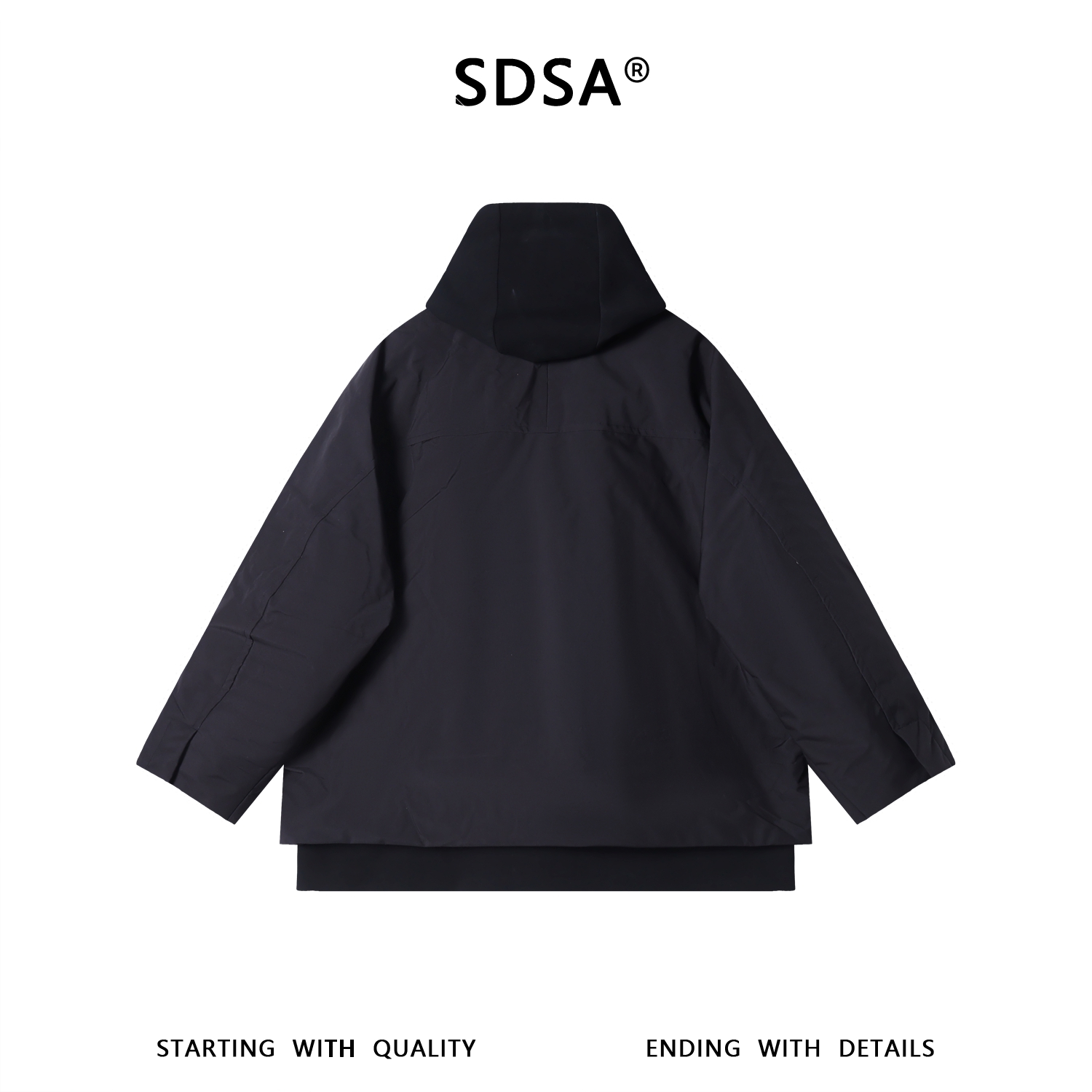 SDSA男士秋冬新款痞帅男装小众羽绒服拼接假两件百搭时尚连帽卫衣
