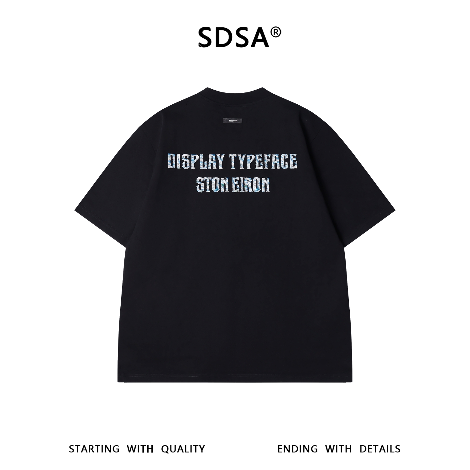 SDSA男装2026新款高贵轻奢宽松重磅珠子刺绣字母圆领短袖T恤百搭