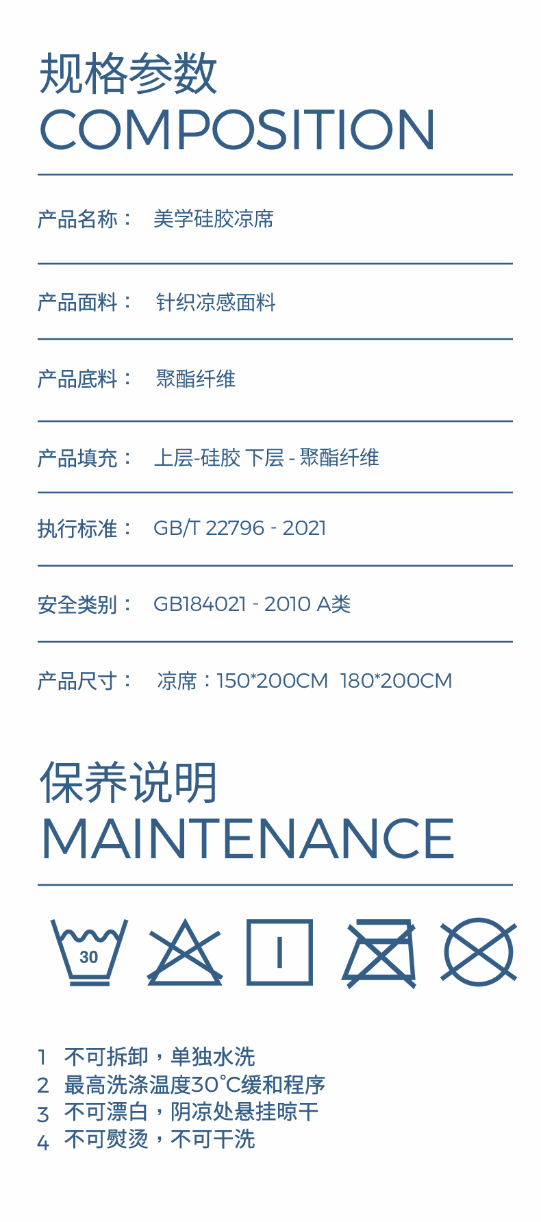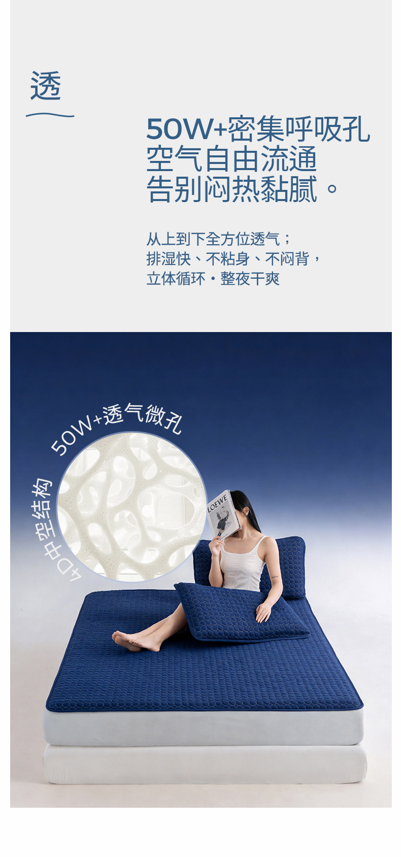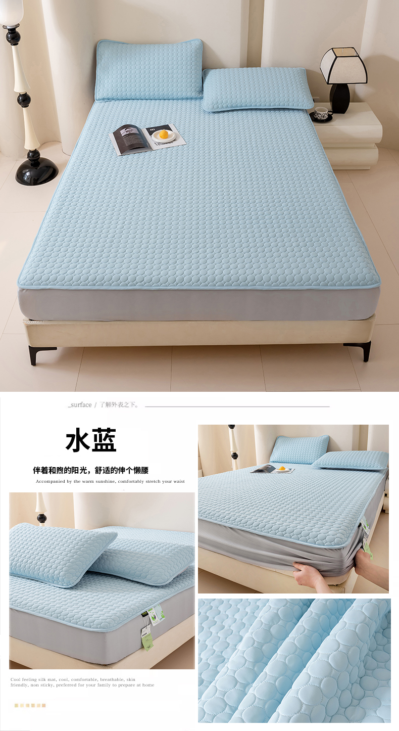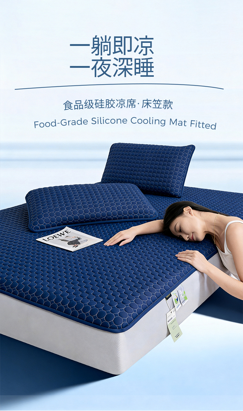 夏季冰感凉席!ROMASTER罗马世家 美学硅胶凉席床笠款3件套 厚实软糯 凉而不冰 6色可选