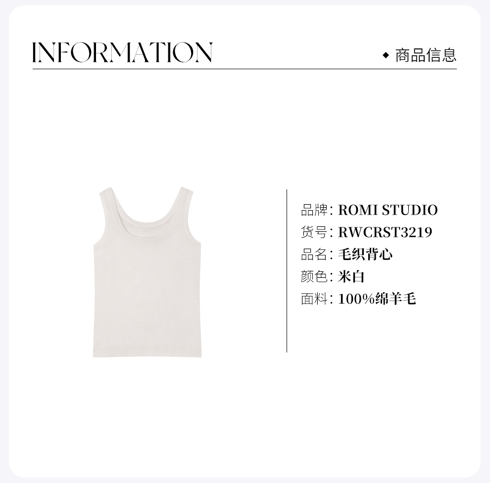 ROMI STUDIO 100%超细支水溶羊毛轻薄舒适U领针织背心 RWCRST3219
