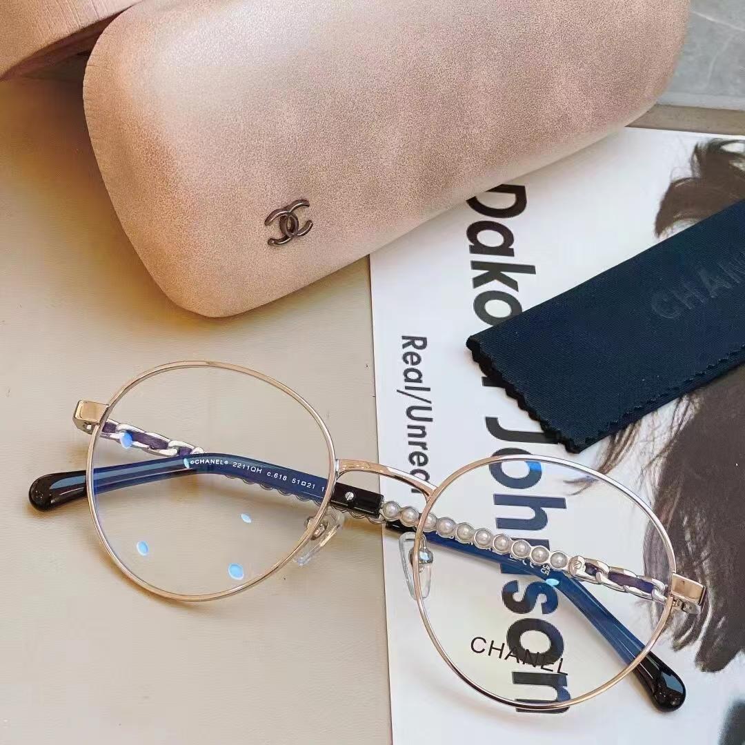 CHANEL香奈儿 镶嵌设计 珍珠 椭圆形 光学镜架 男女同款情侣款