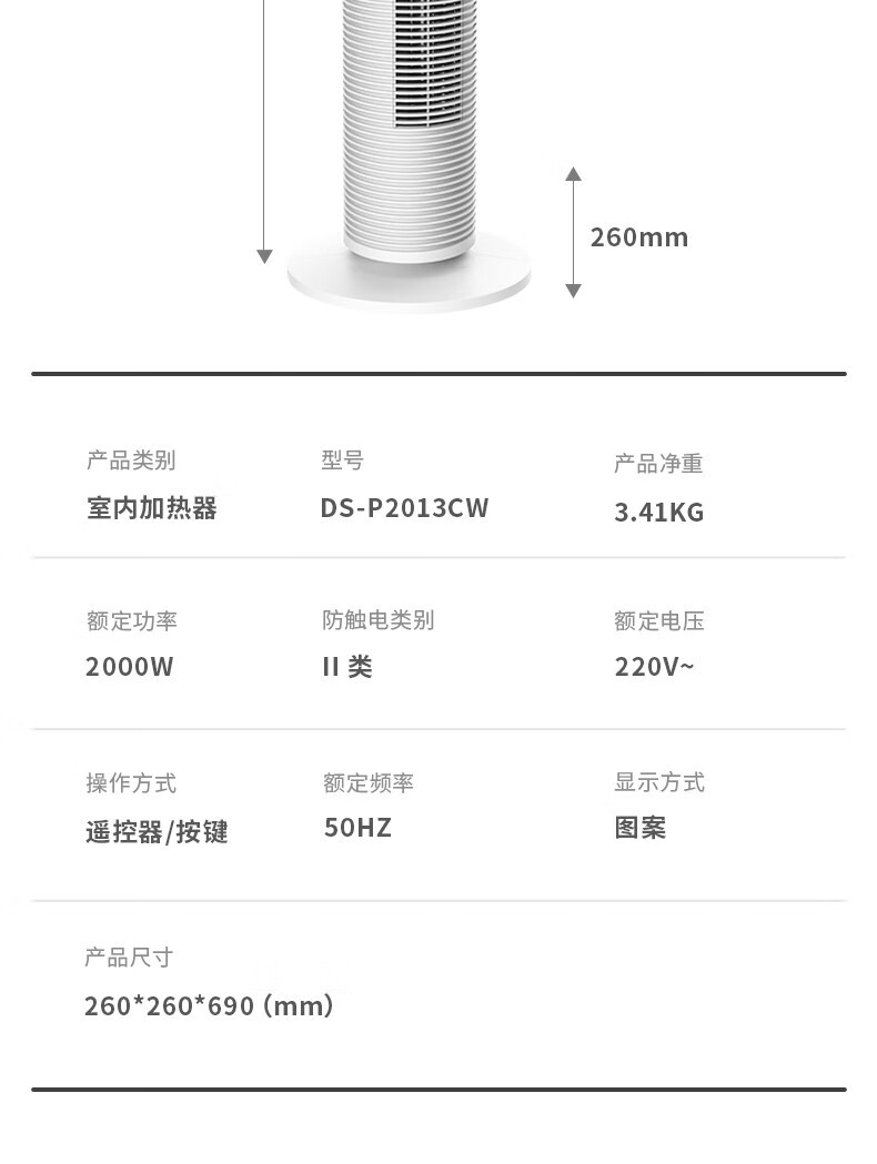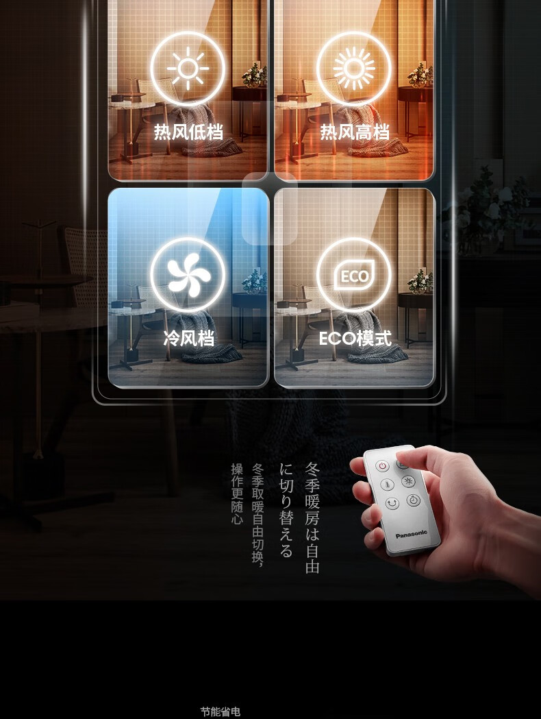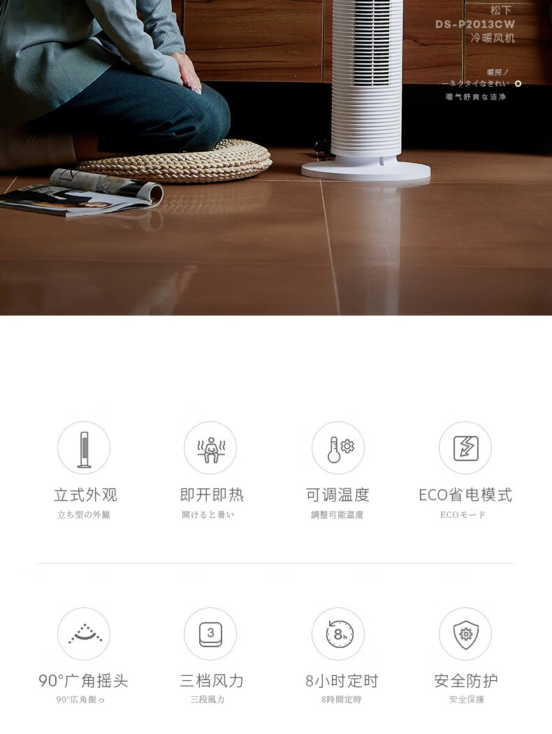 松下(Panasonic) 暖风机立式取暖器家用电暖器电暖气浴室客厅冷暖风扇两用热风机电暖器小太阳 DS-PF2041CW