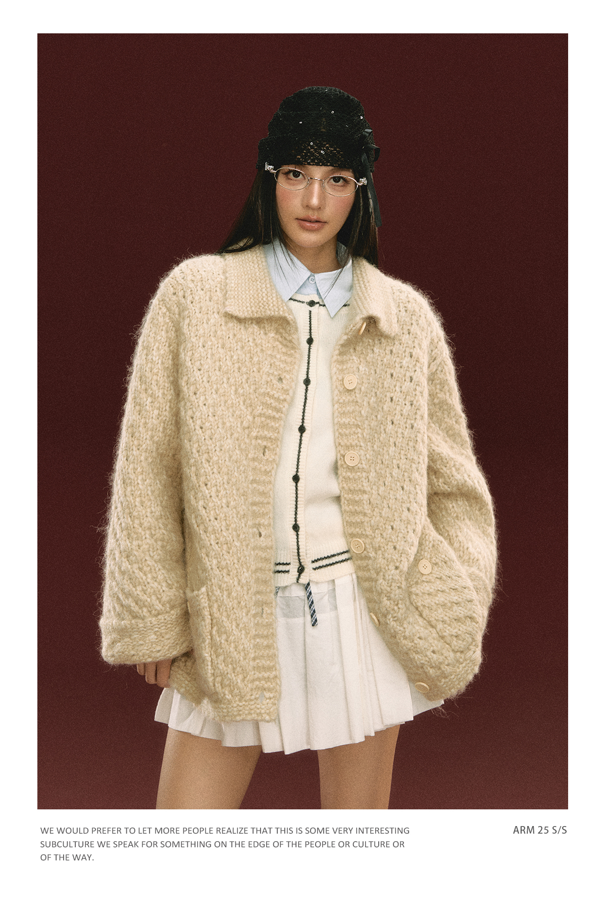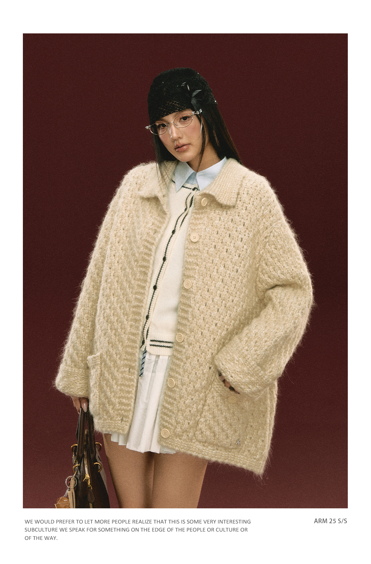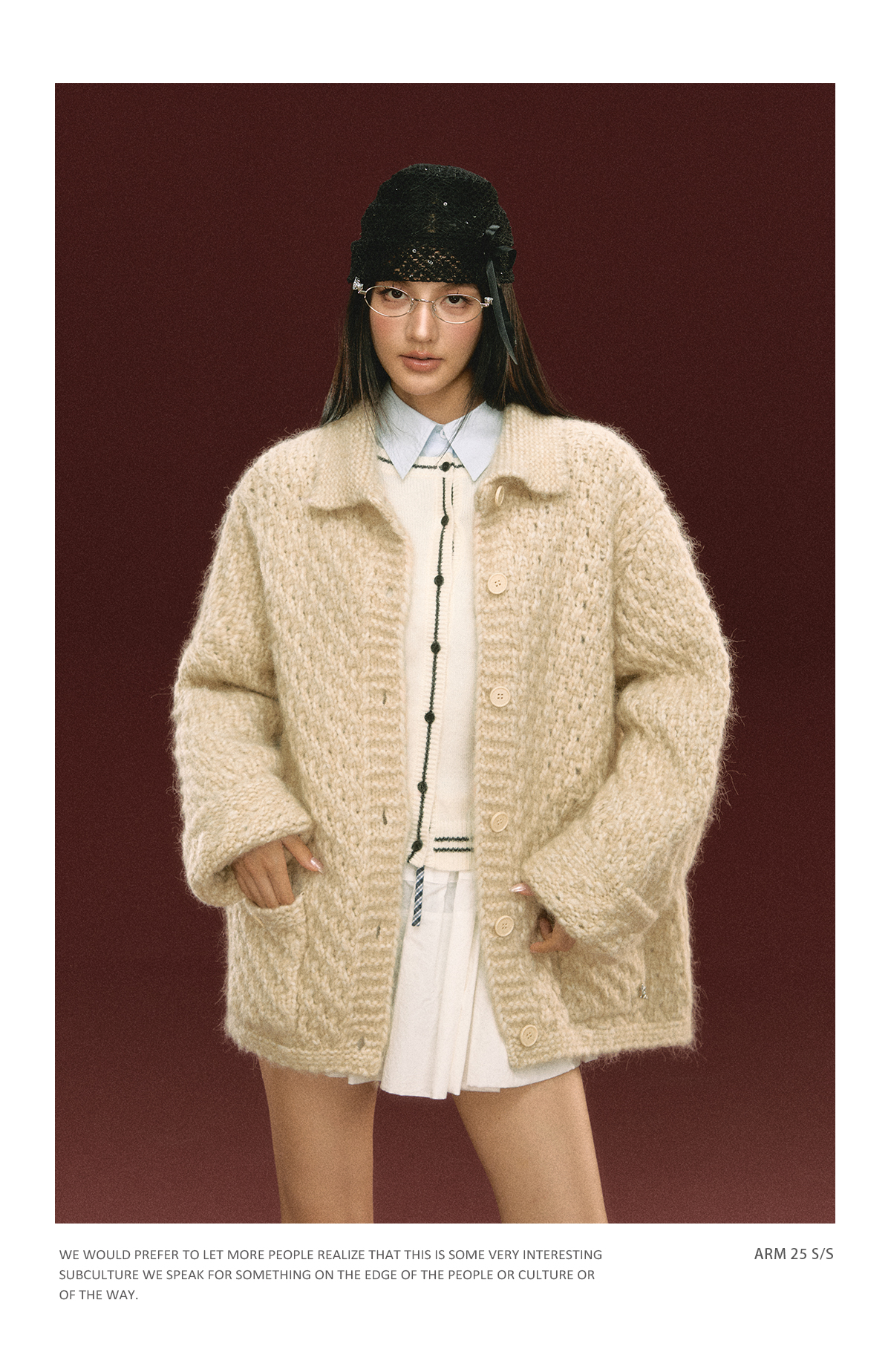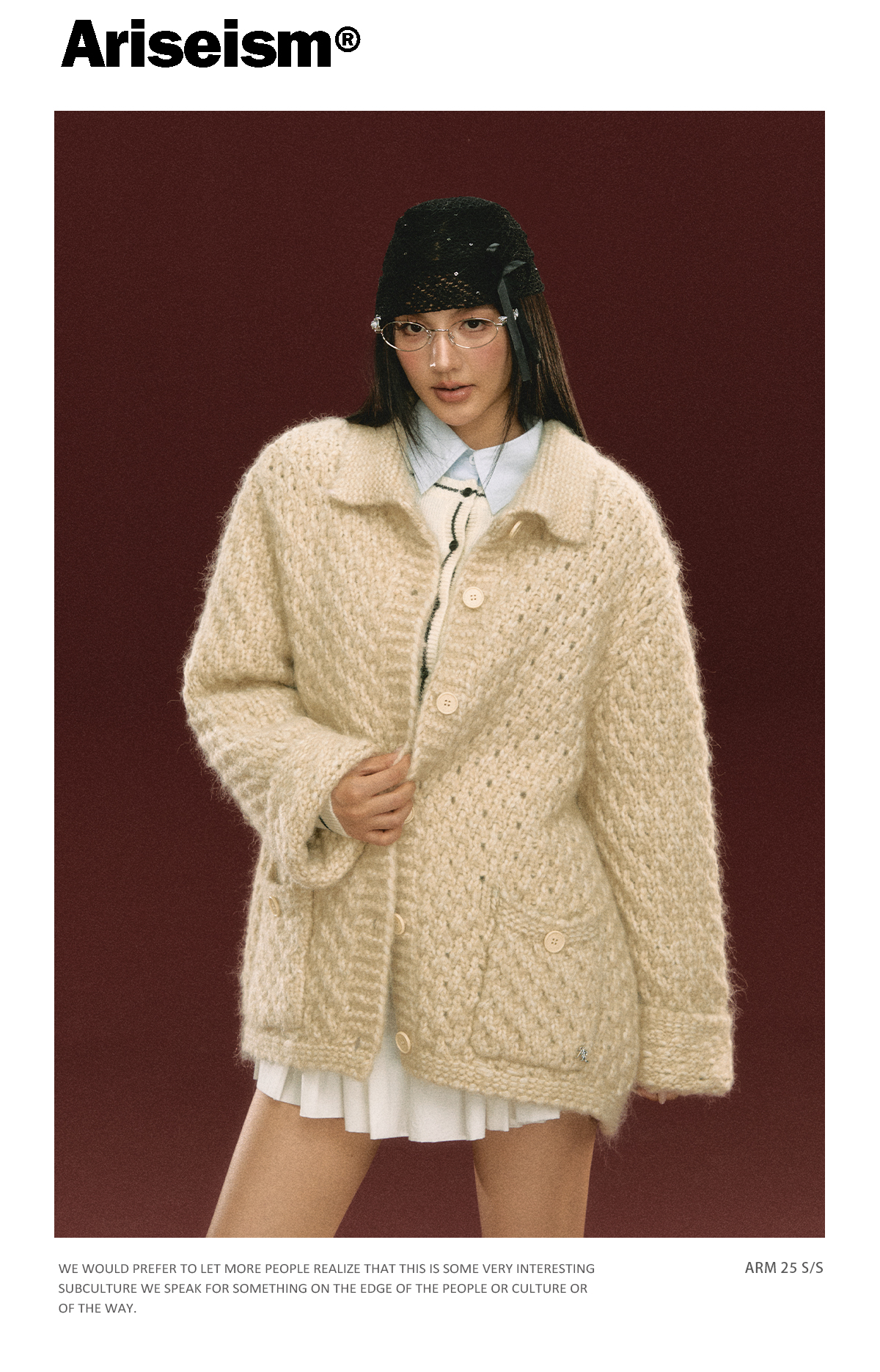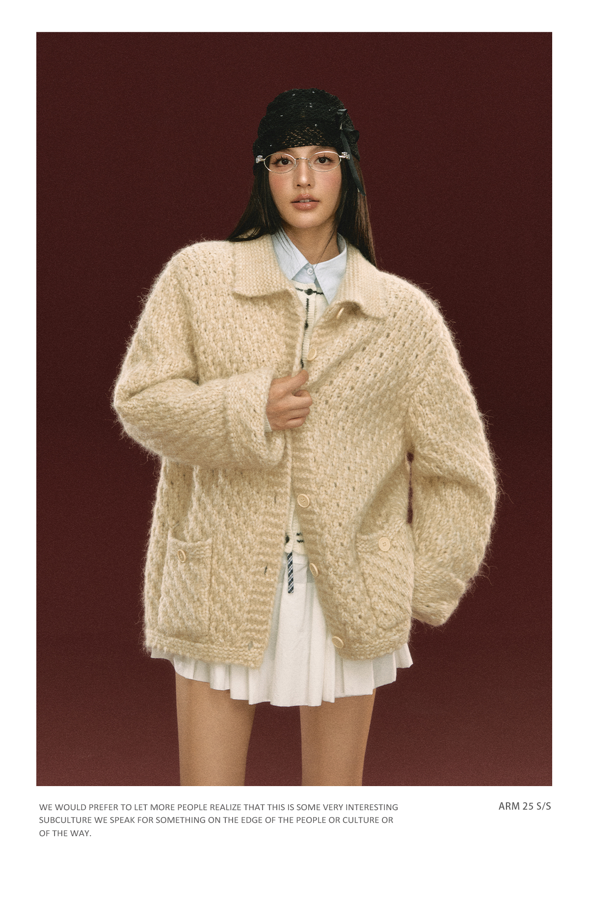 Ariseism 美式复古设计感翻领毛衣外套女秋冬新款