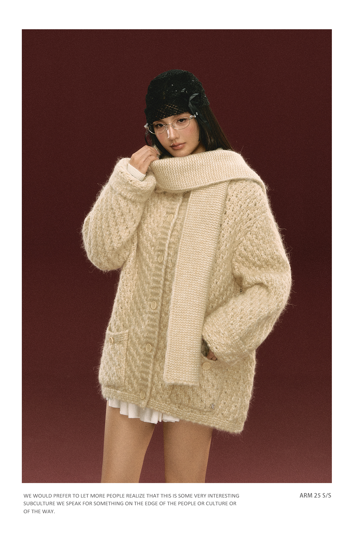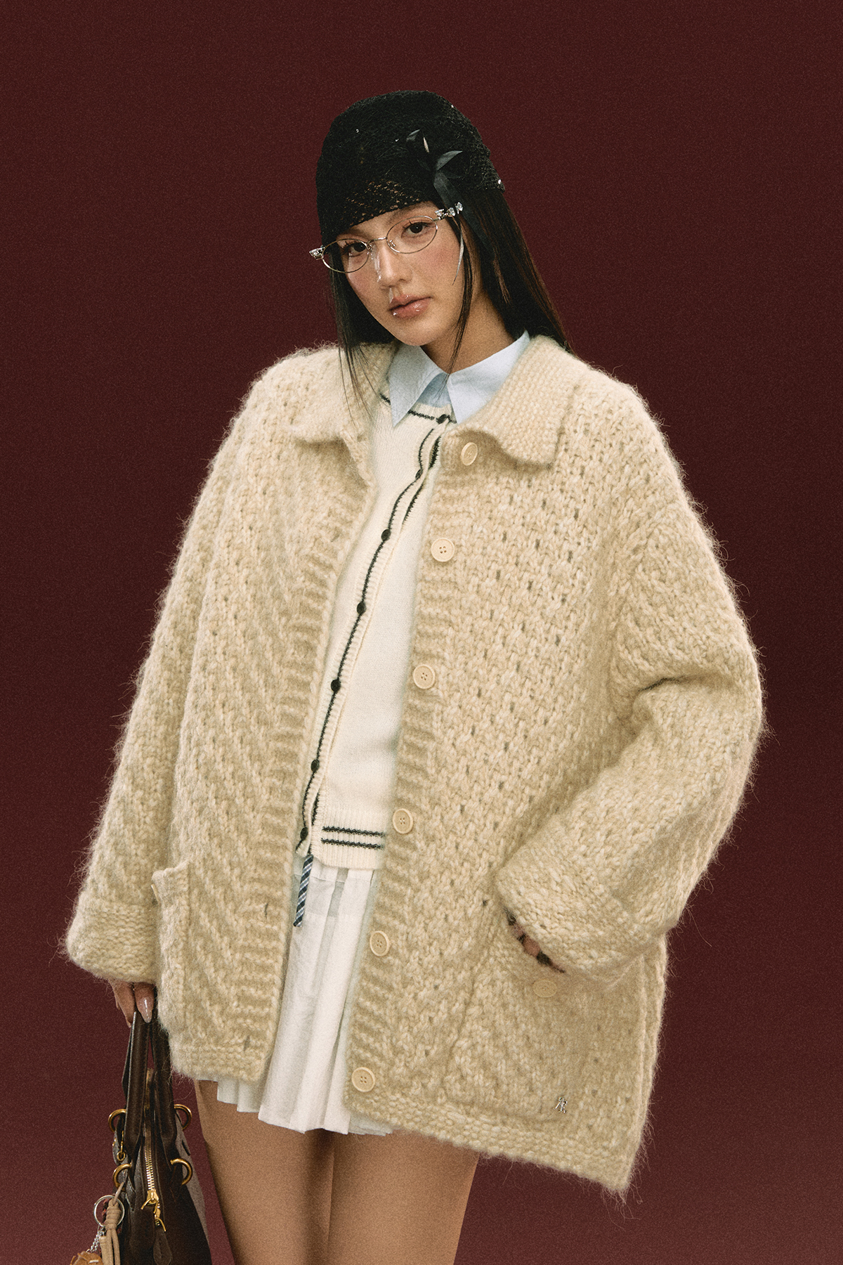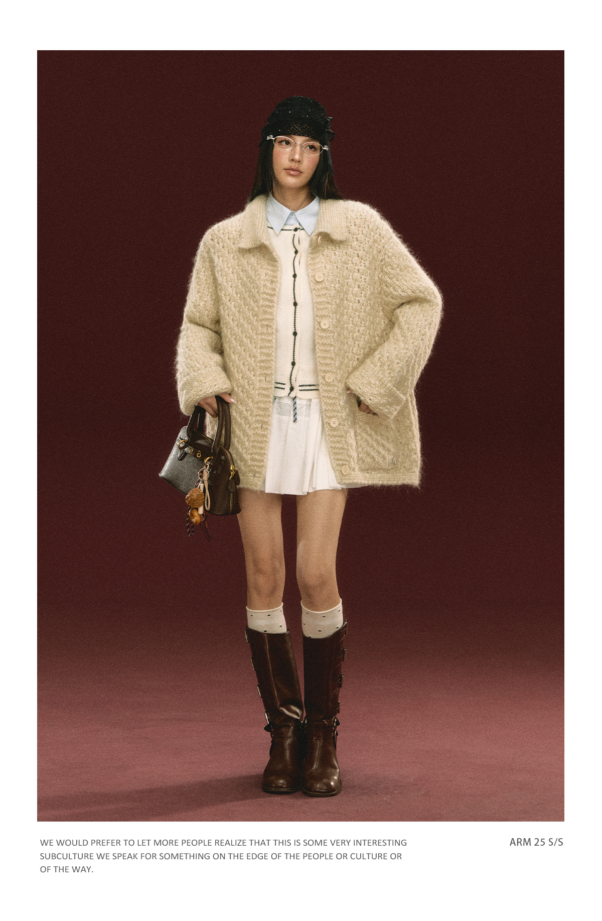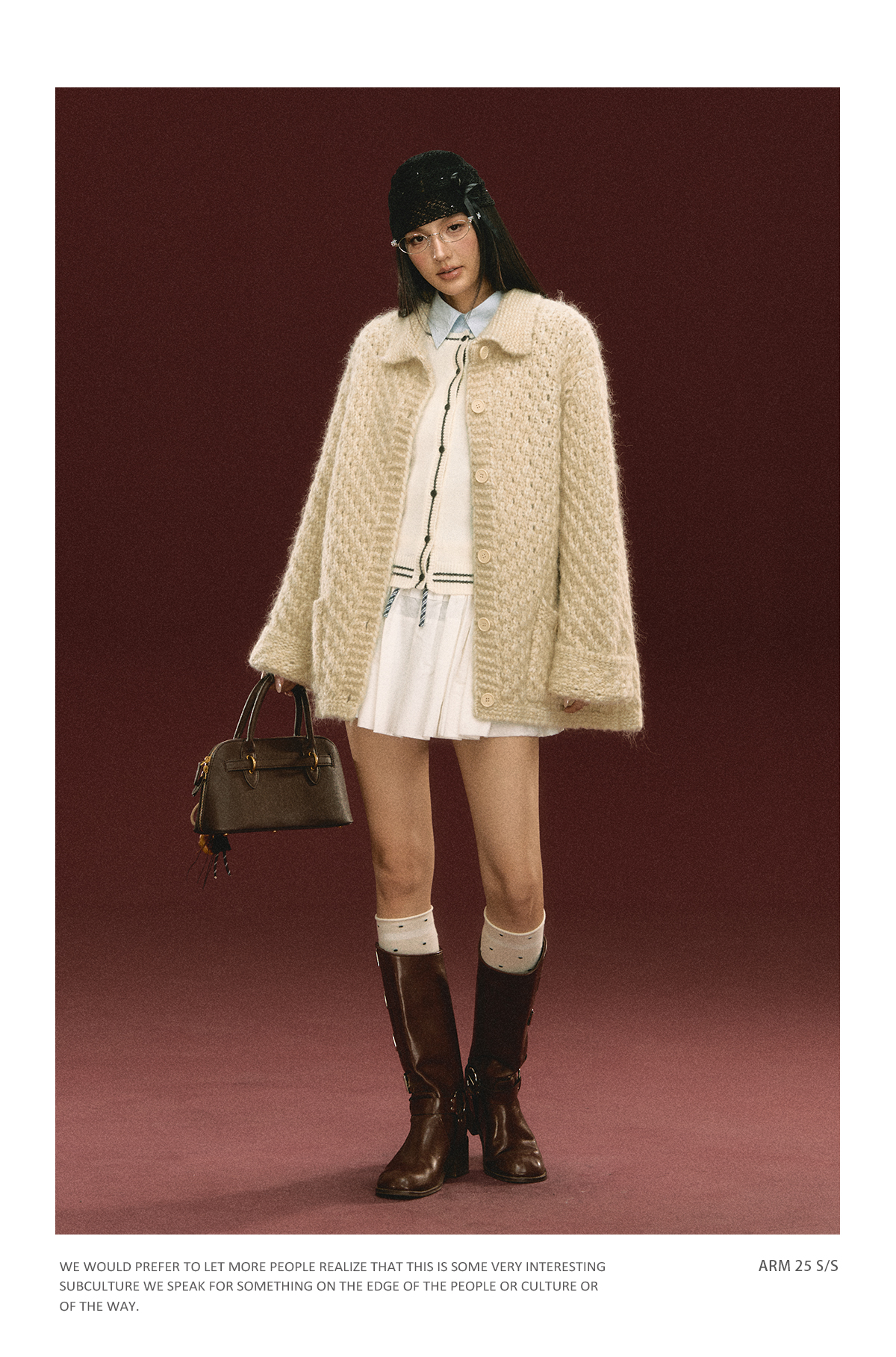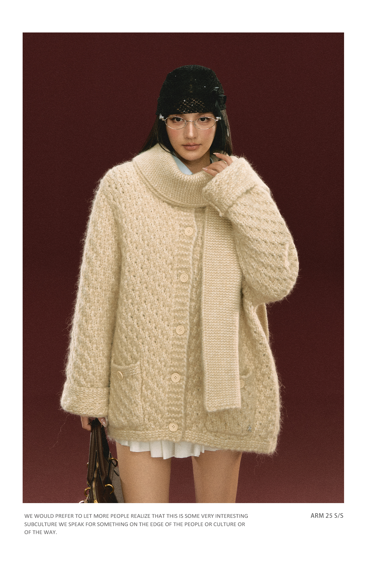 Ariseism 美式复古设计感翻领毛衣外套女秋冬新款