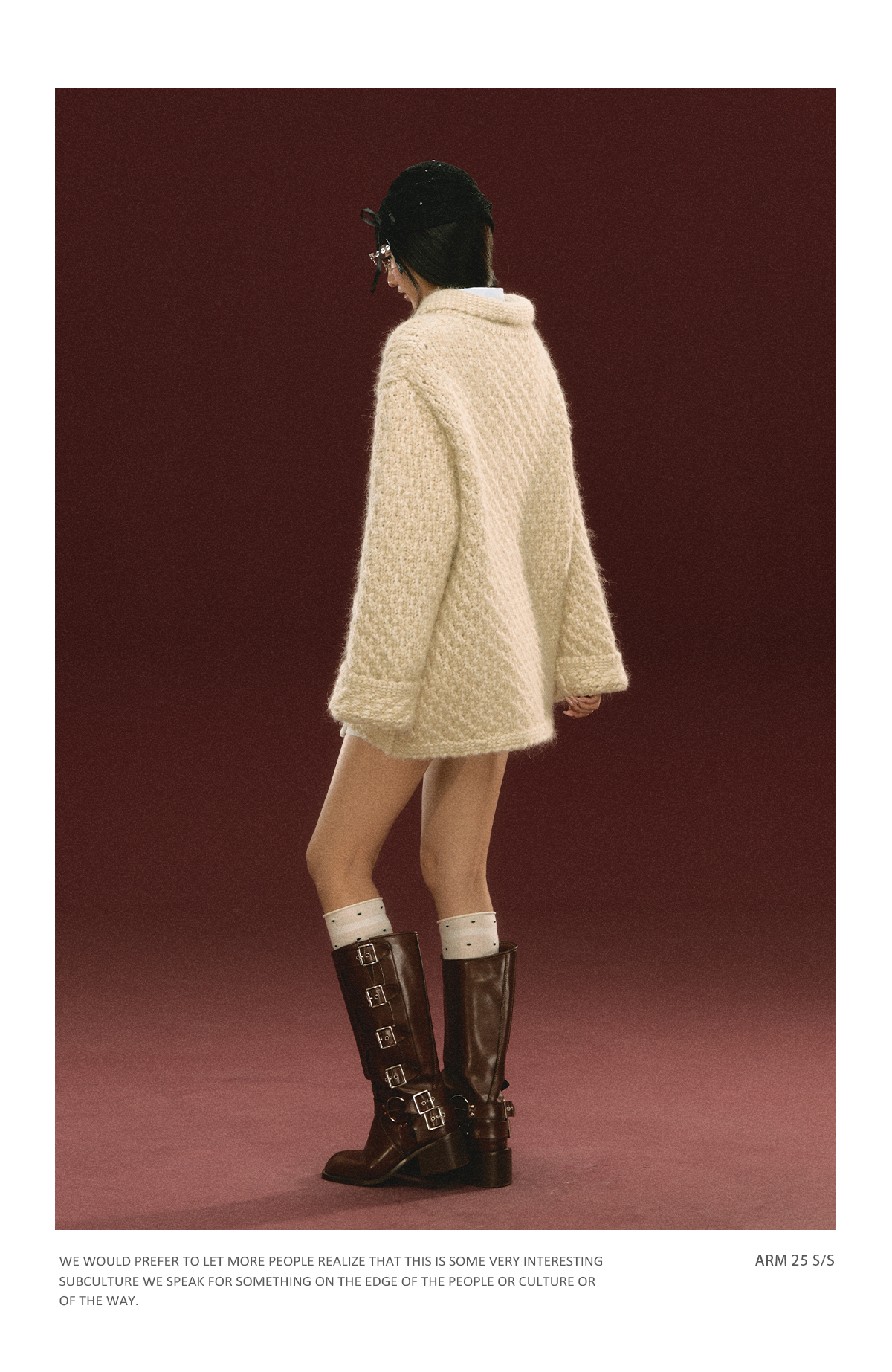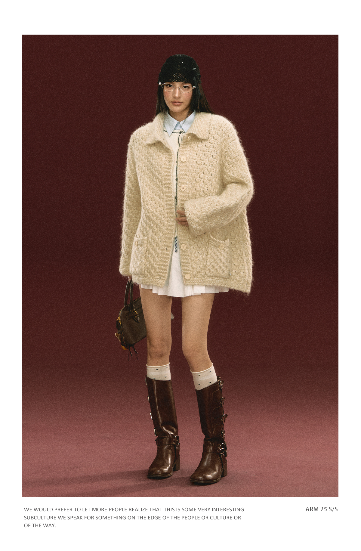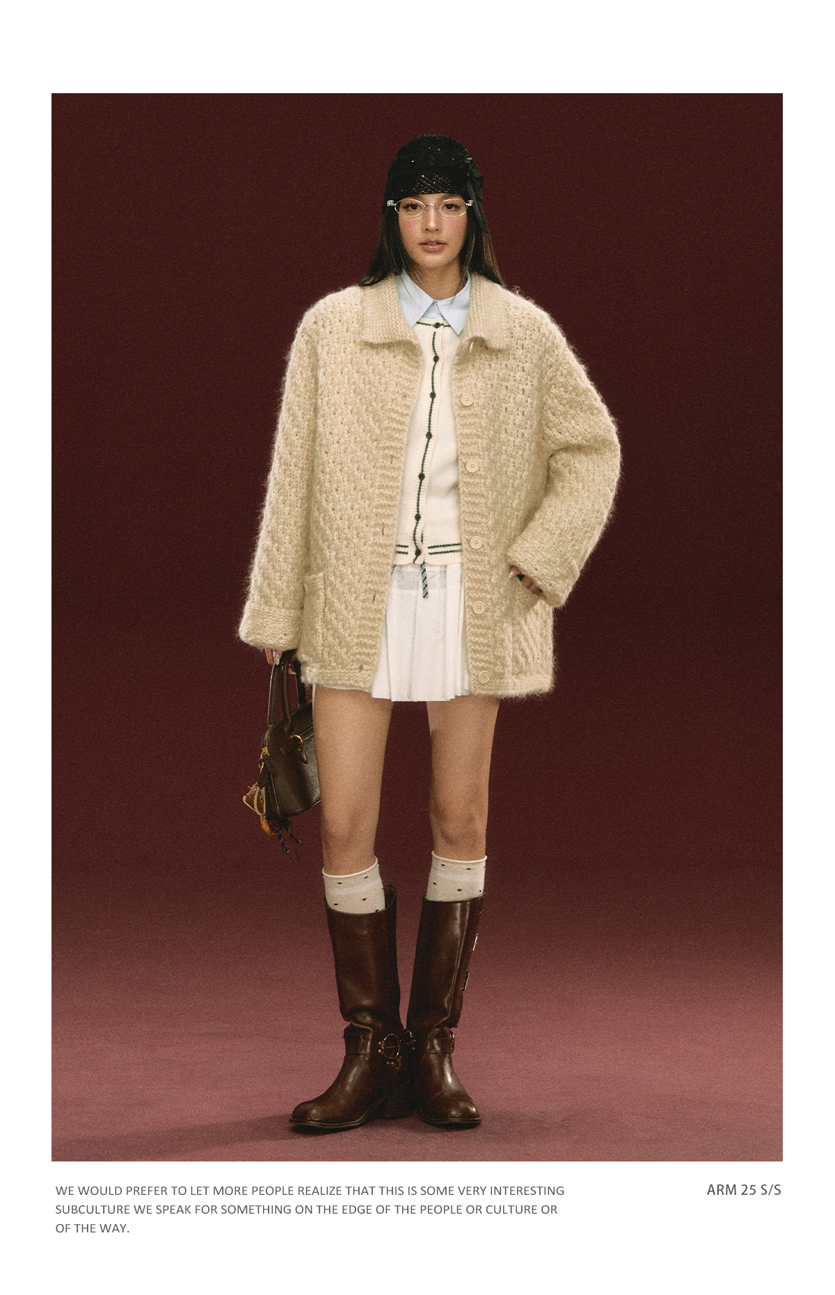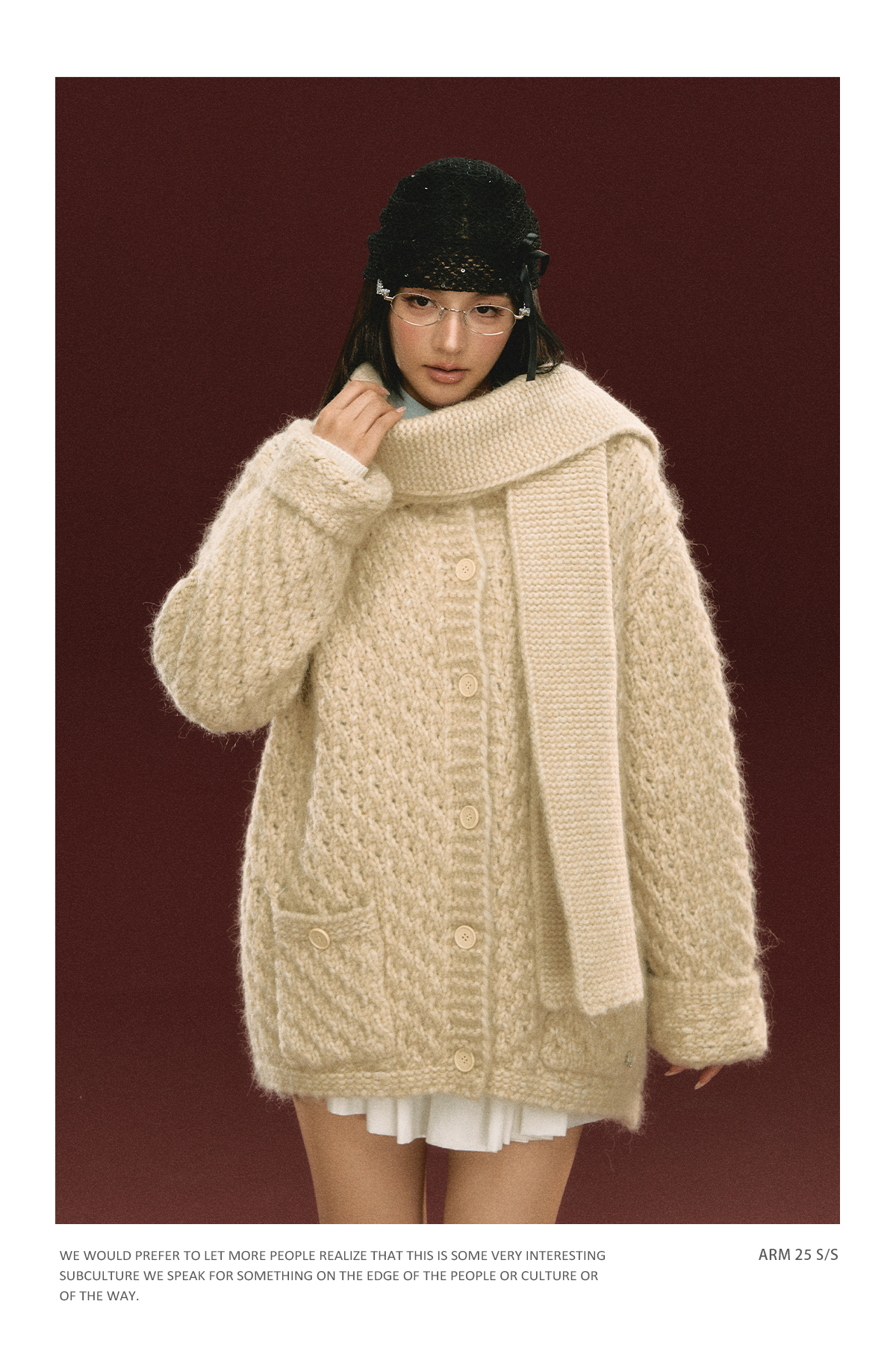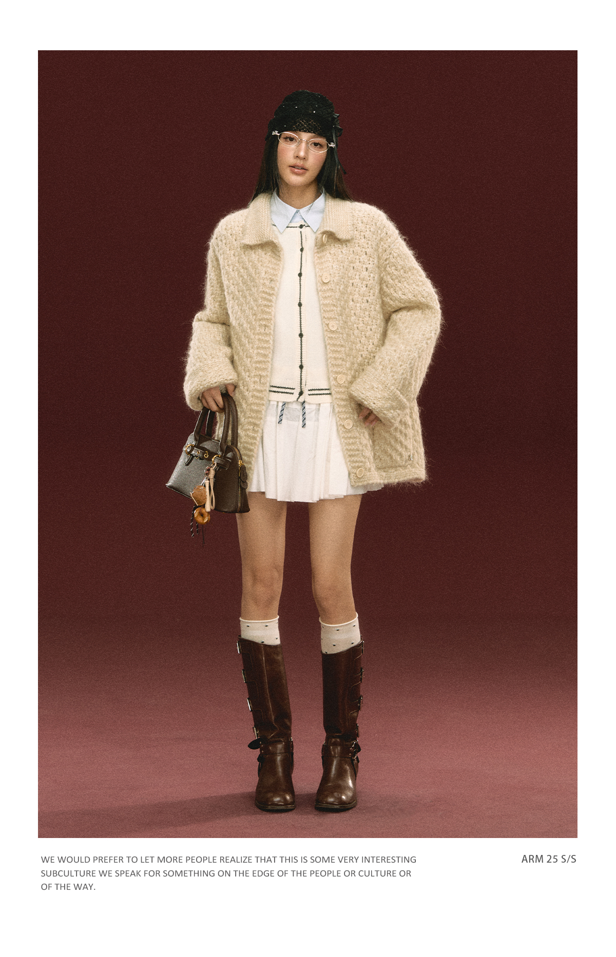 Ariseism 美式复古设计感翻领毛衣外套女秋冬新款