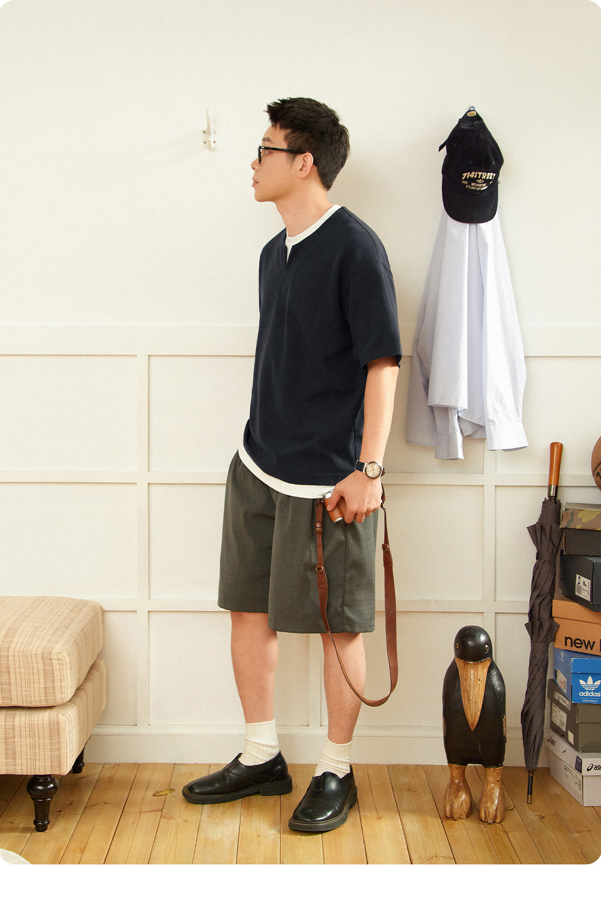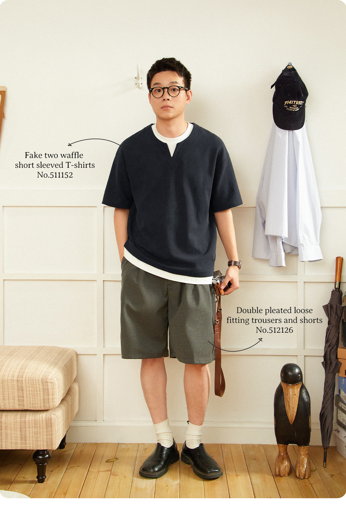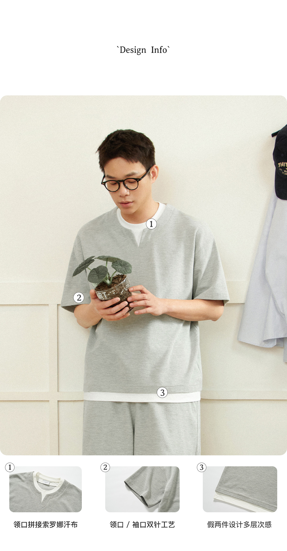 714street重磅宽松华夫格短袖T恤男款2025夏季新款日系假两件上衣