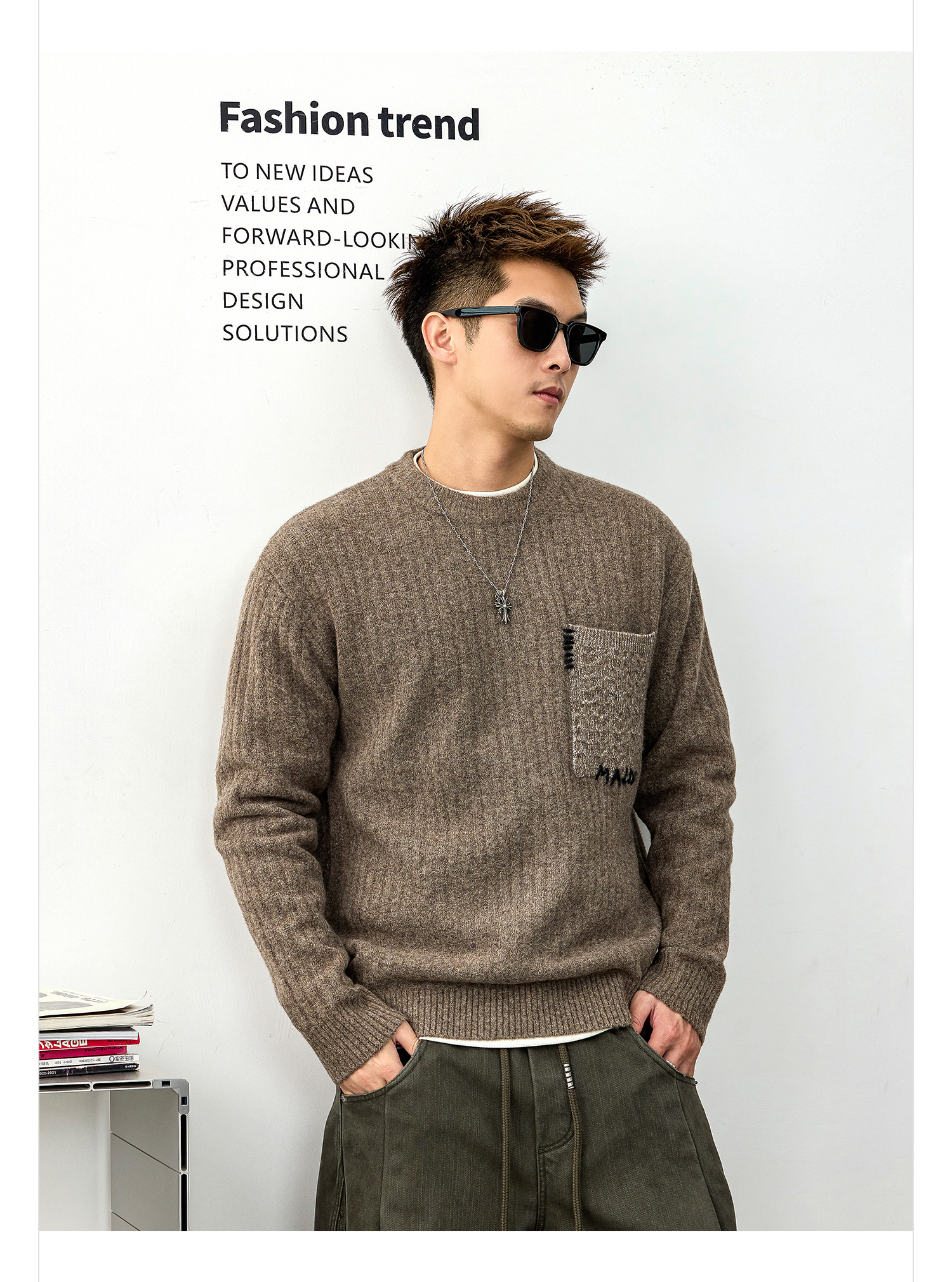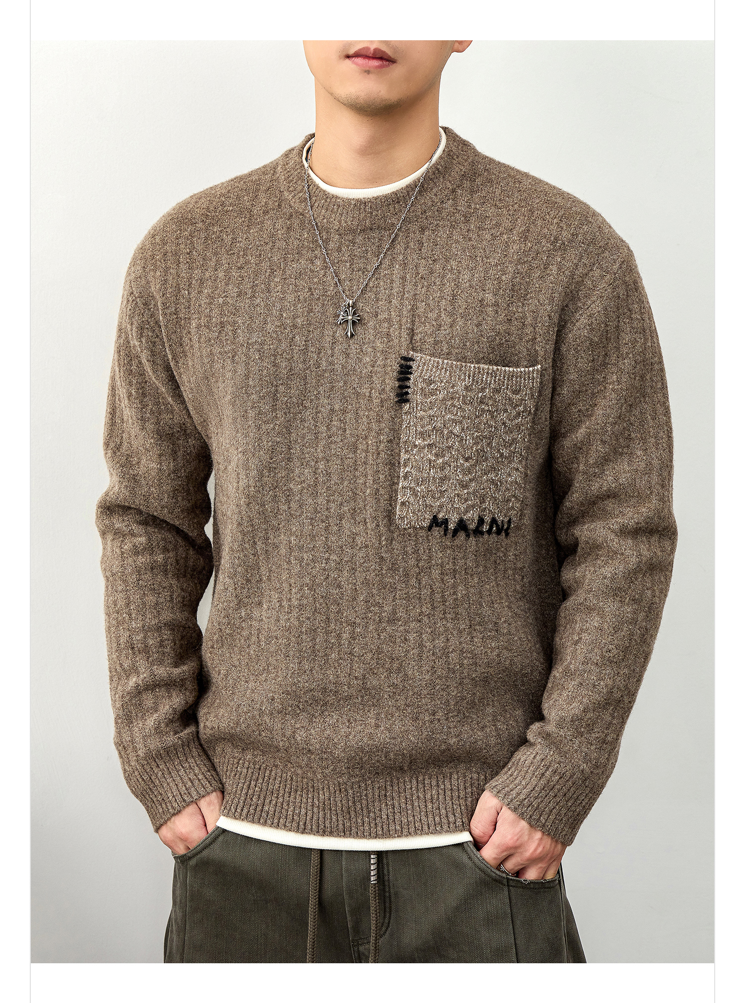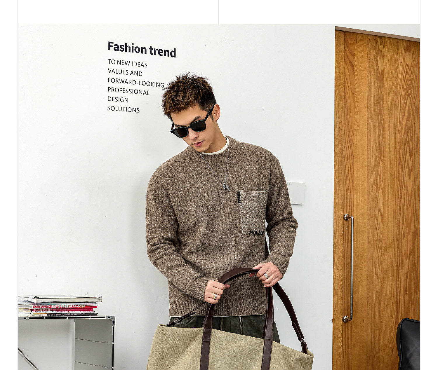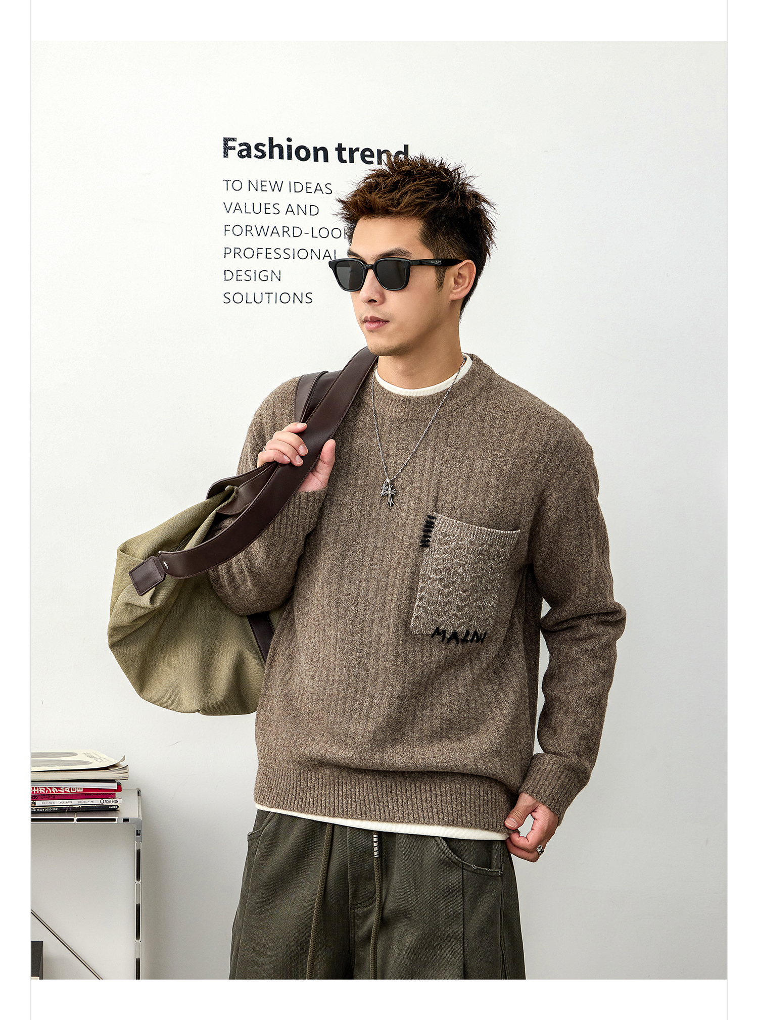 徐太浪【羊毛混纺 拼接口袋】咖色大码毛衣男秋冬内搭打底针织衫