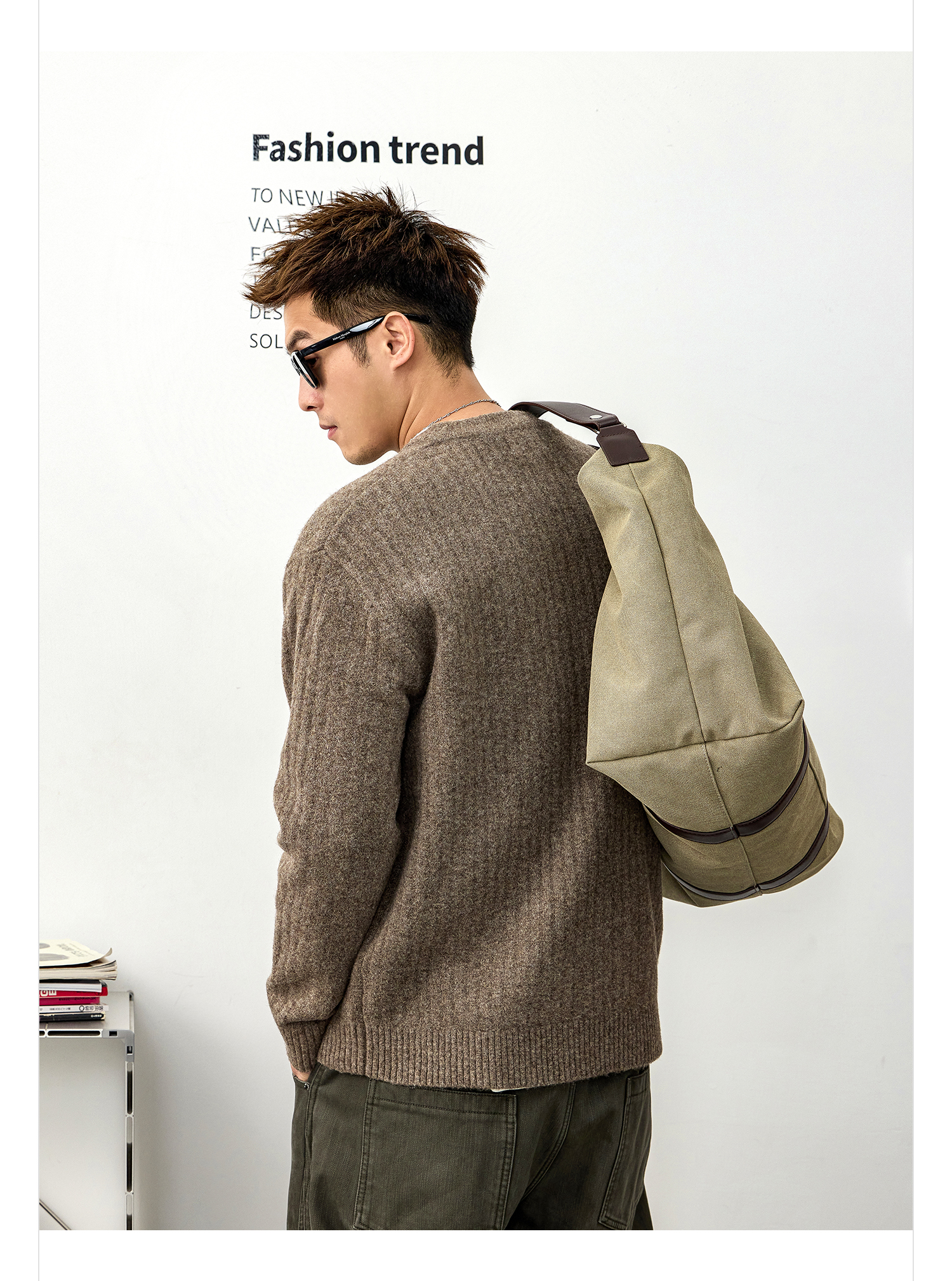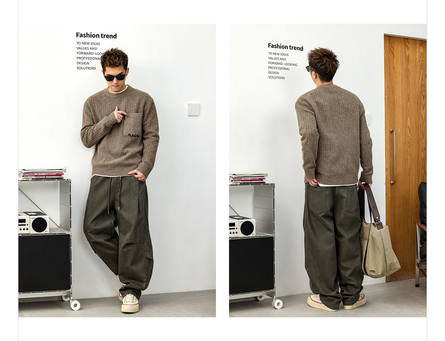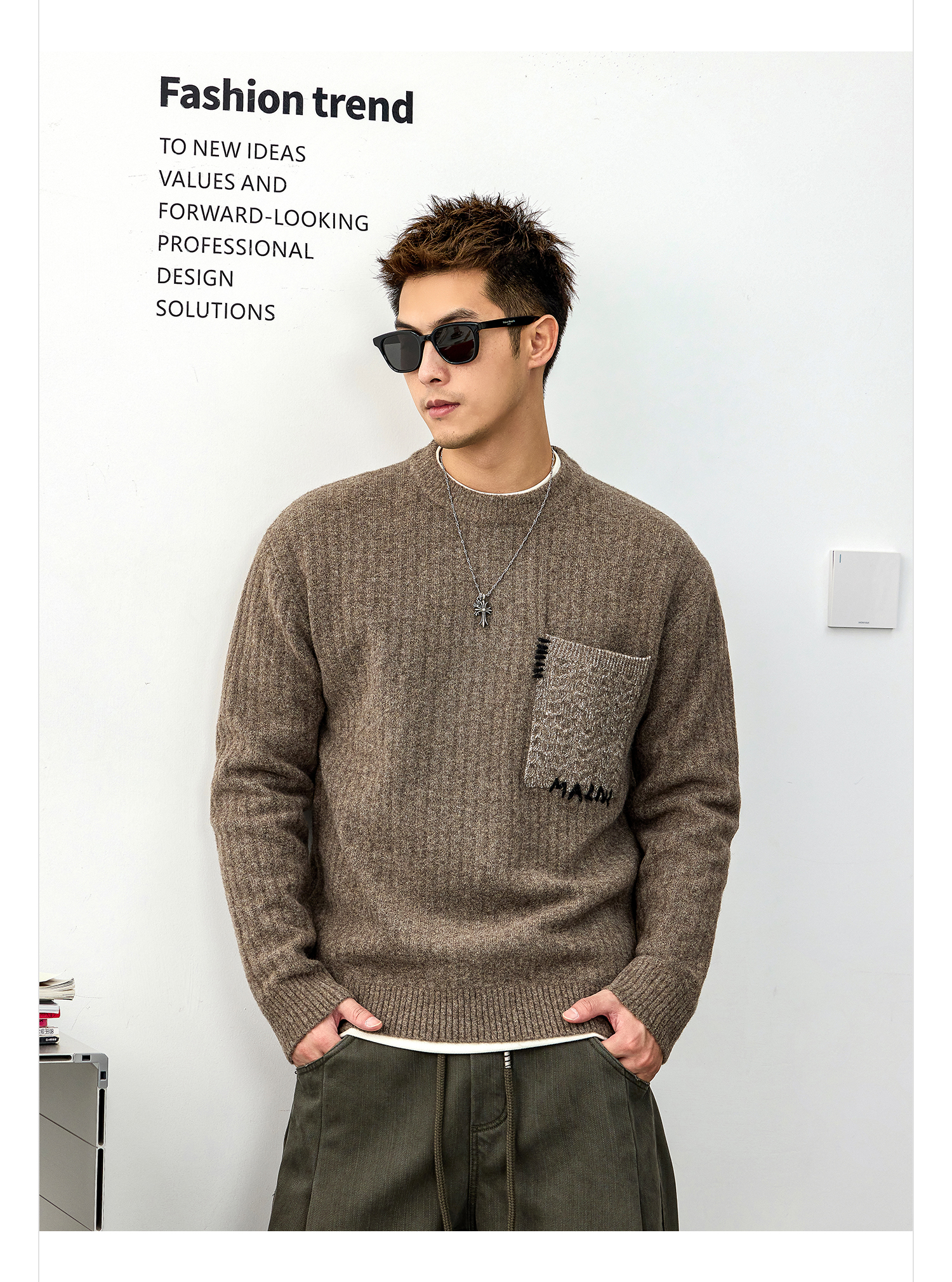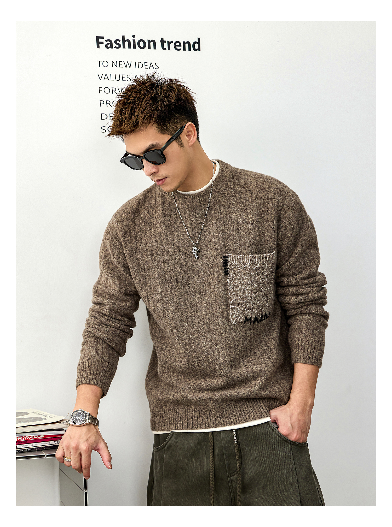 徐太浪【羊毛混纺 拼接口袋】咖色大码毛衣男秋冬内搭打底针织衫