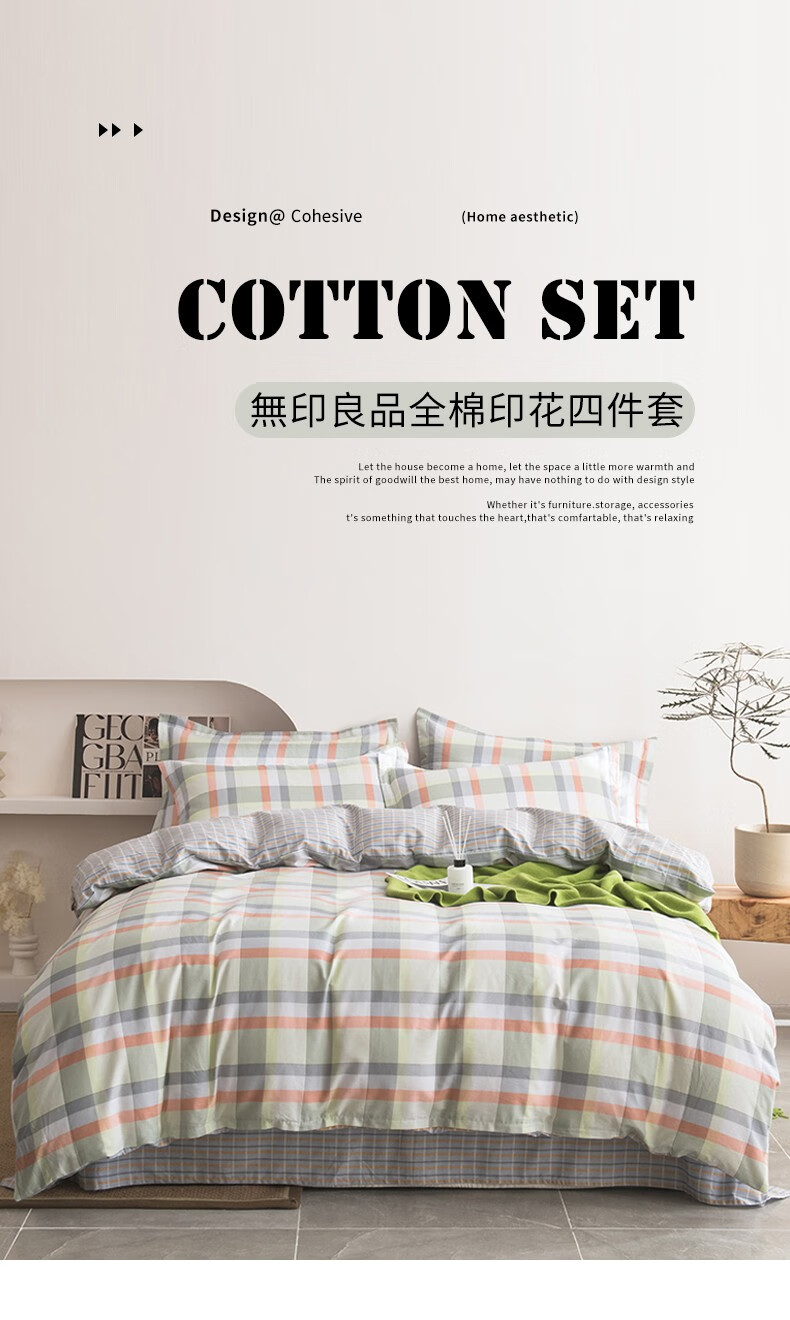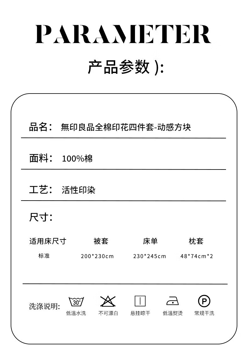 無印全棉印花四件套 动感方块 MUJI-TJ23-71