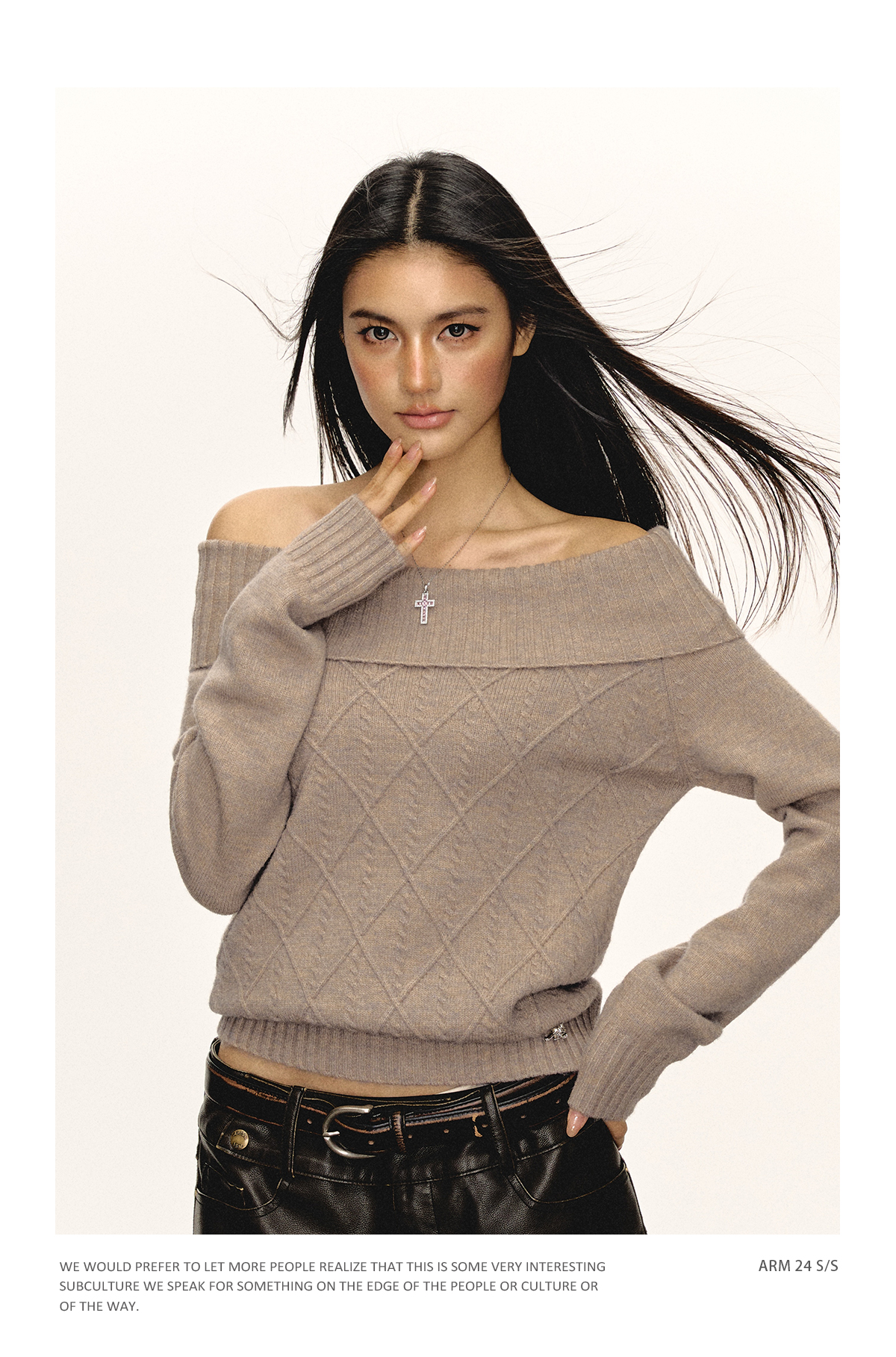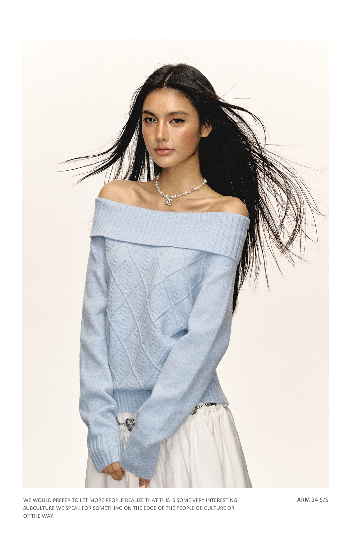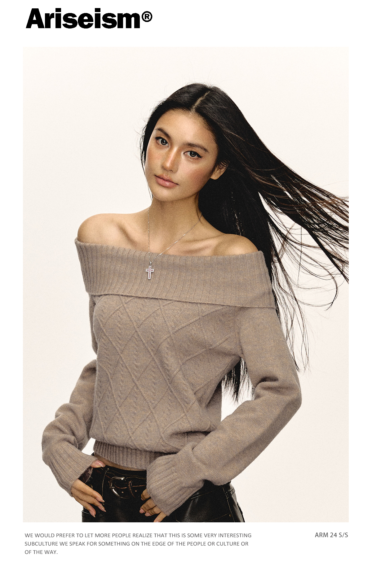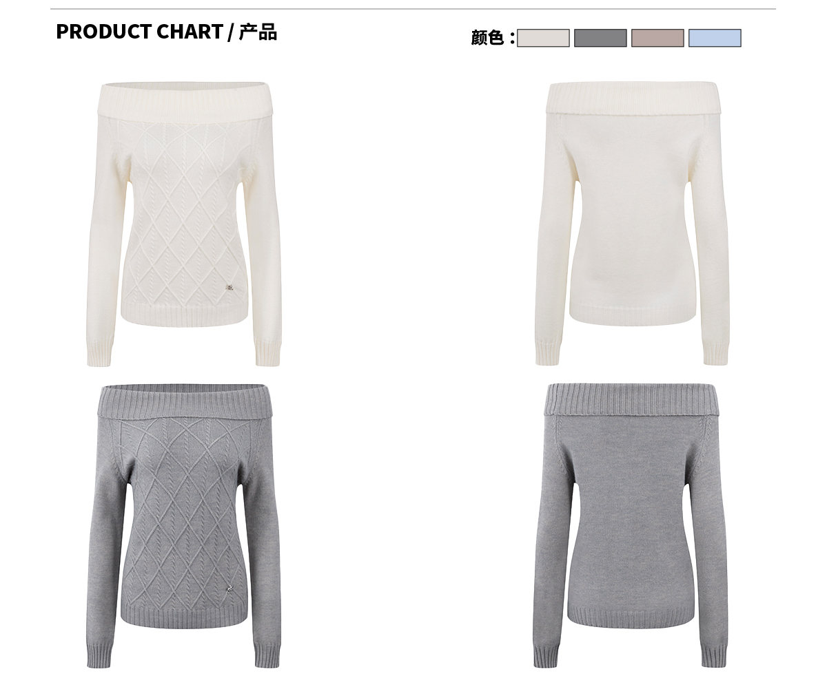 Ariseism美式复古高级感一字肩长袖针织衫女春季新款内搭打底上衣