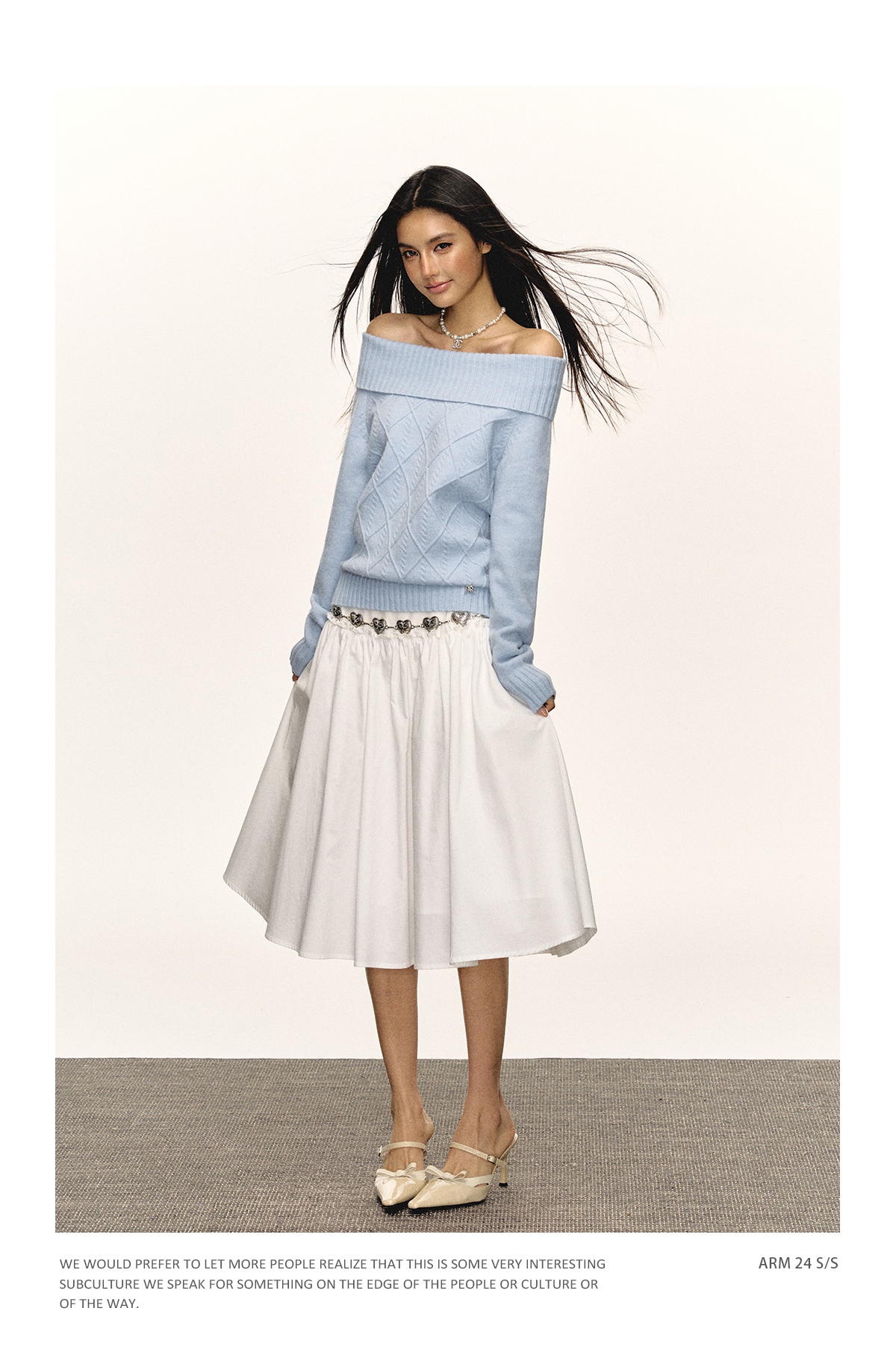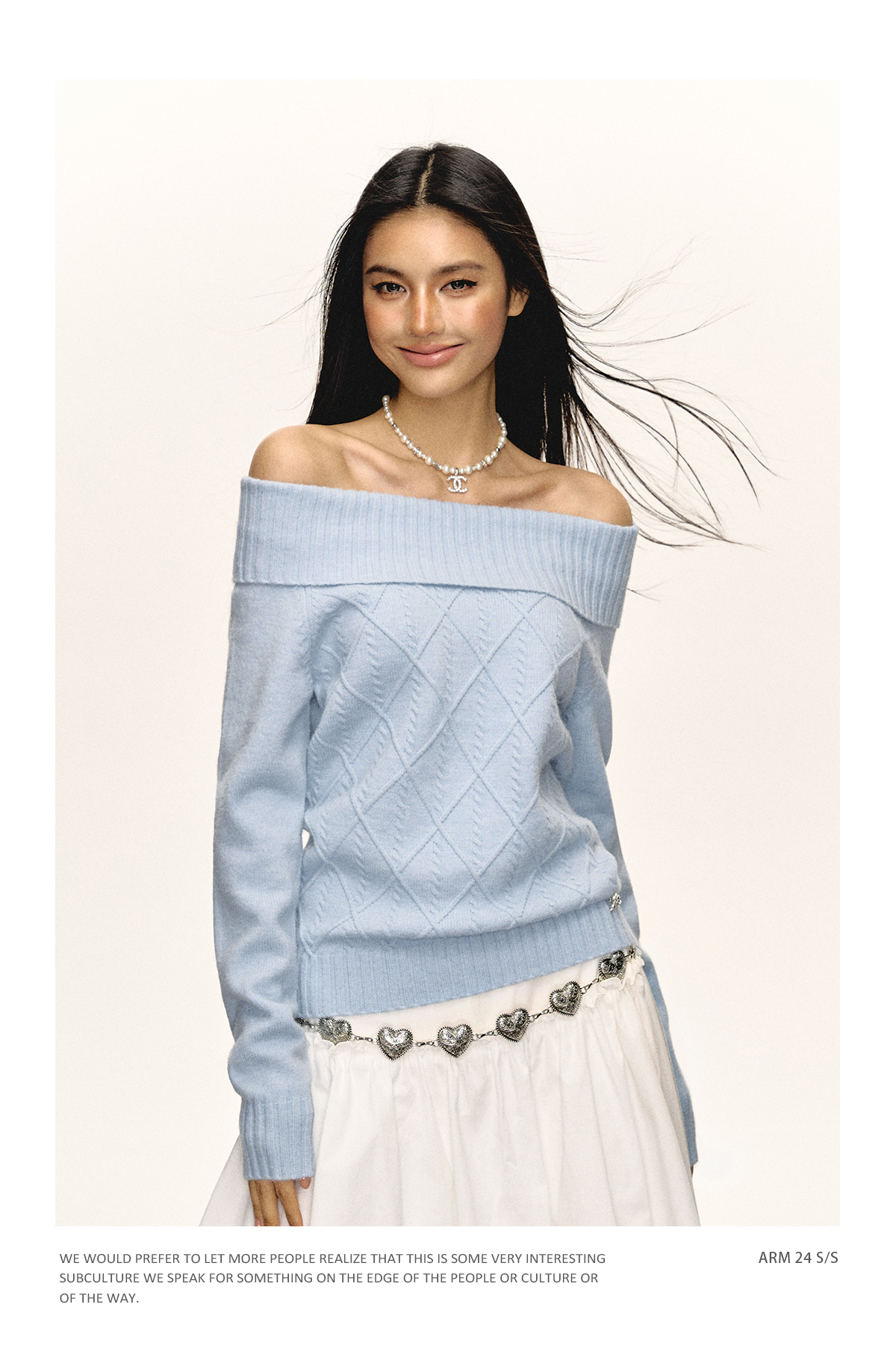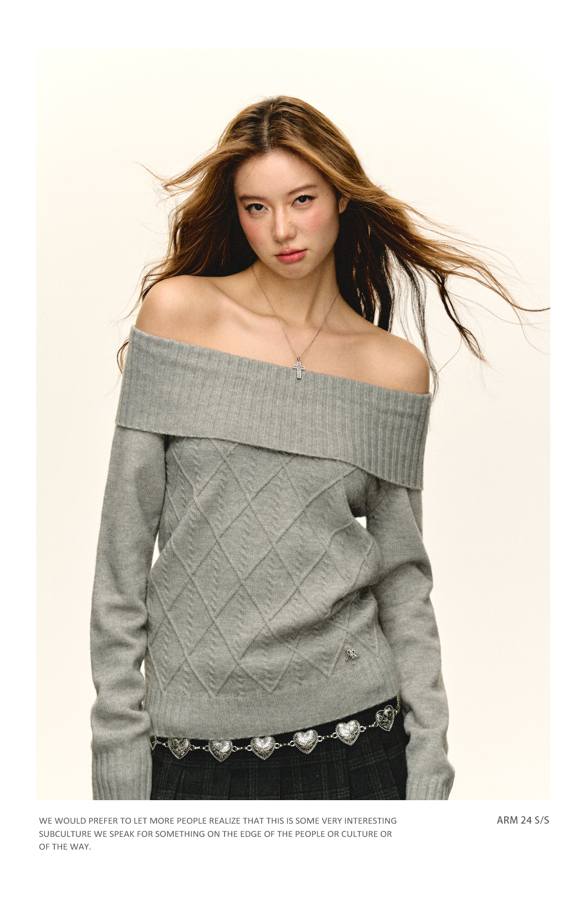 Ariseism美式复古高级感一字肩长袖针织衫女春季新款内搭打底上衣