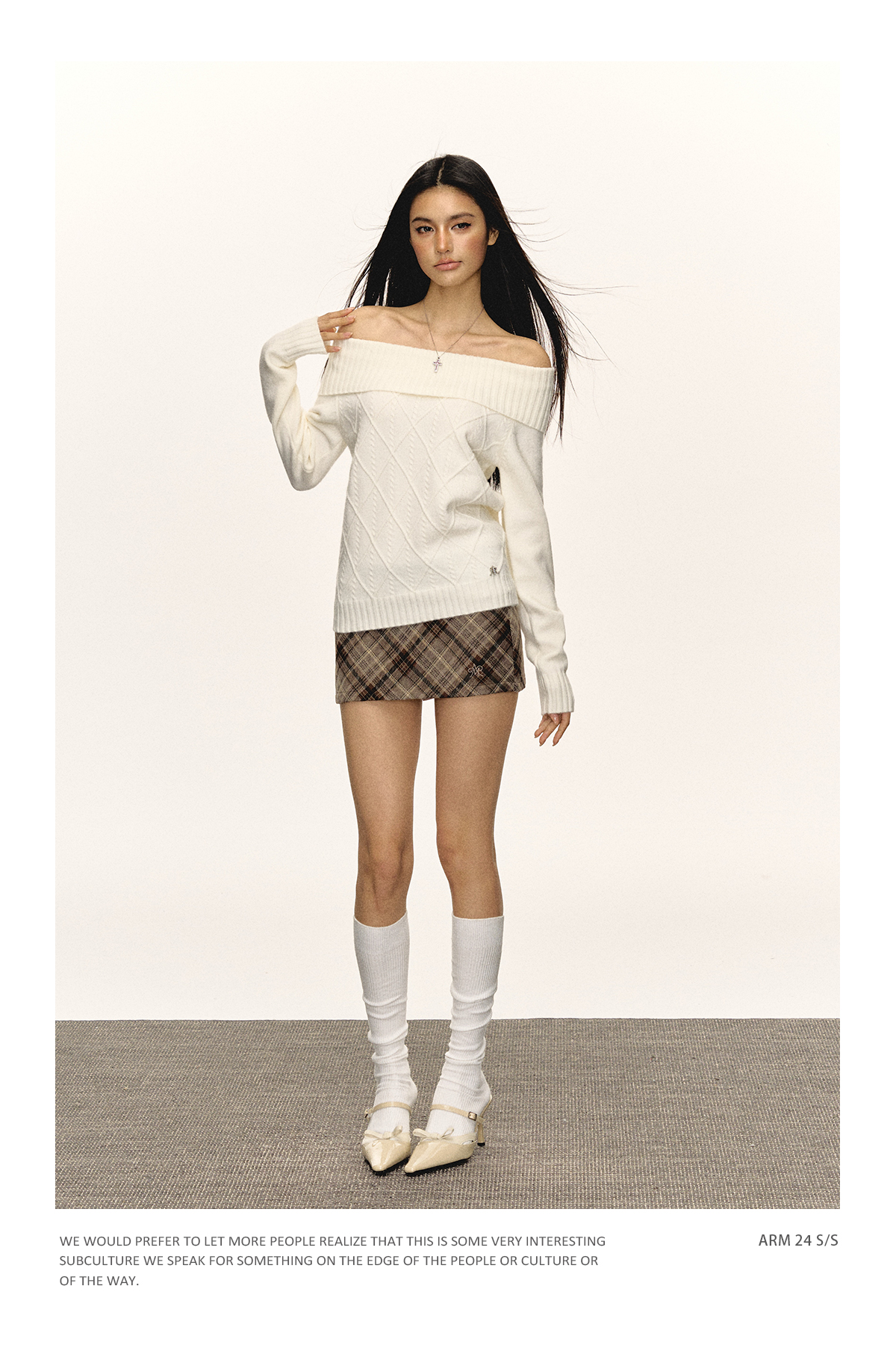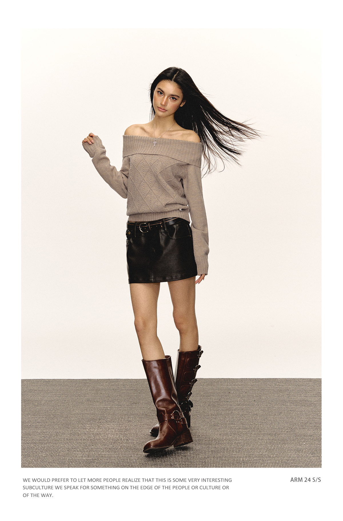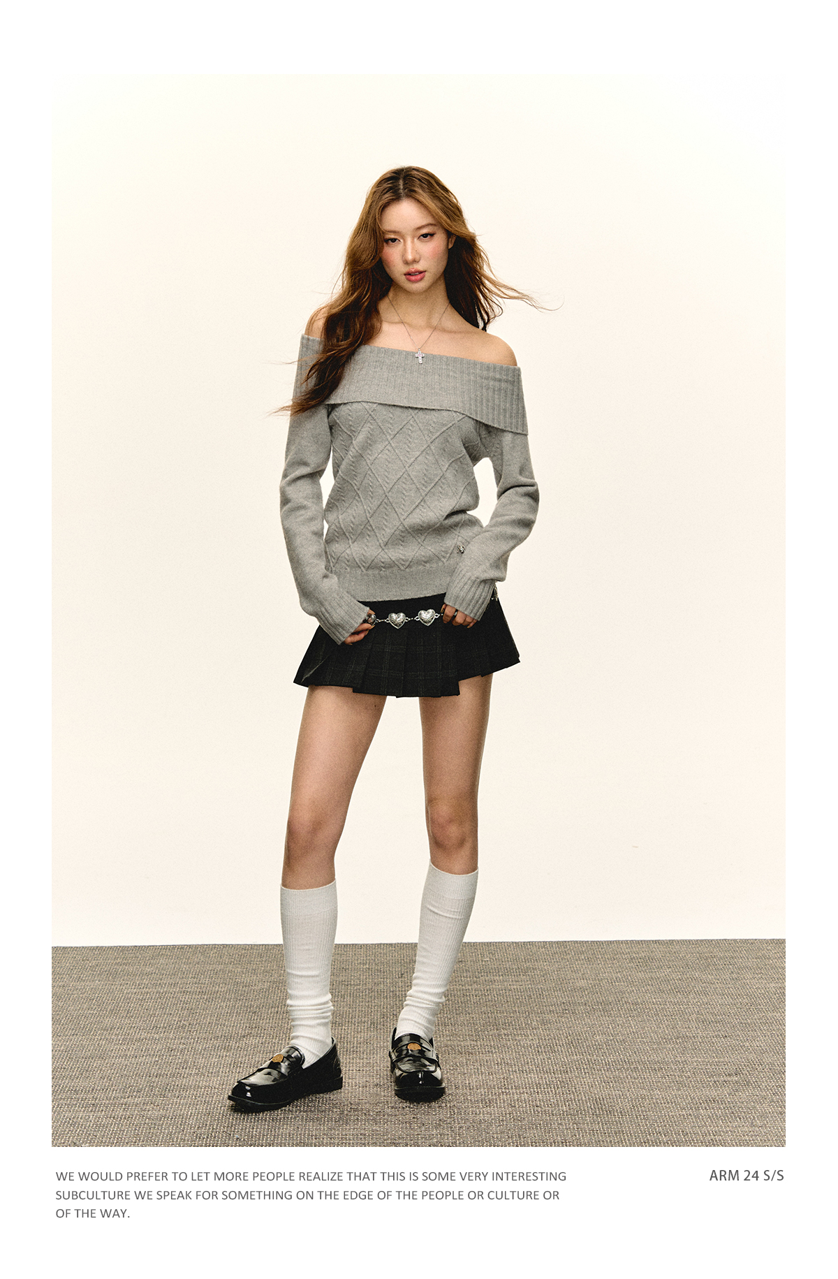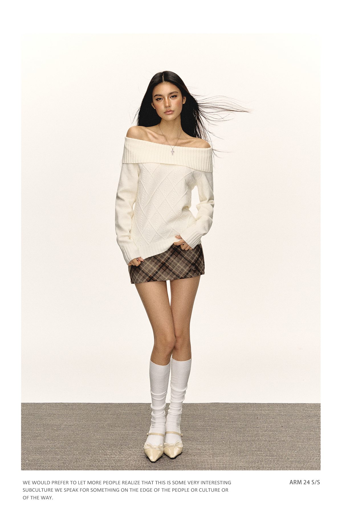 Ariseism美式复古高级感一字肩长袖针织衫女春季新款内搭打底上衣