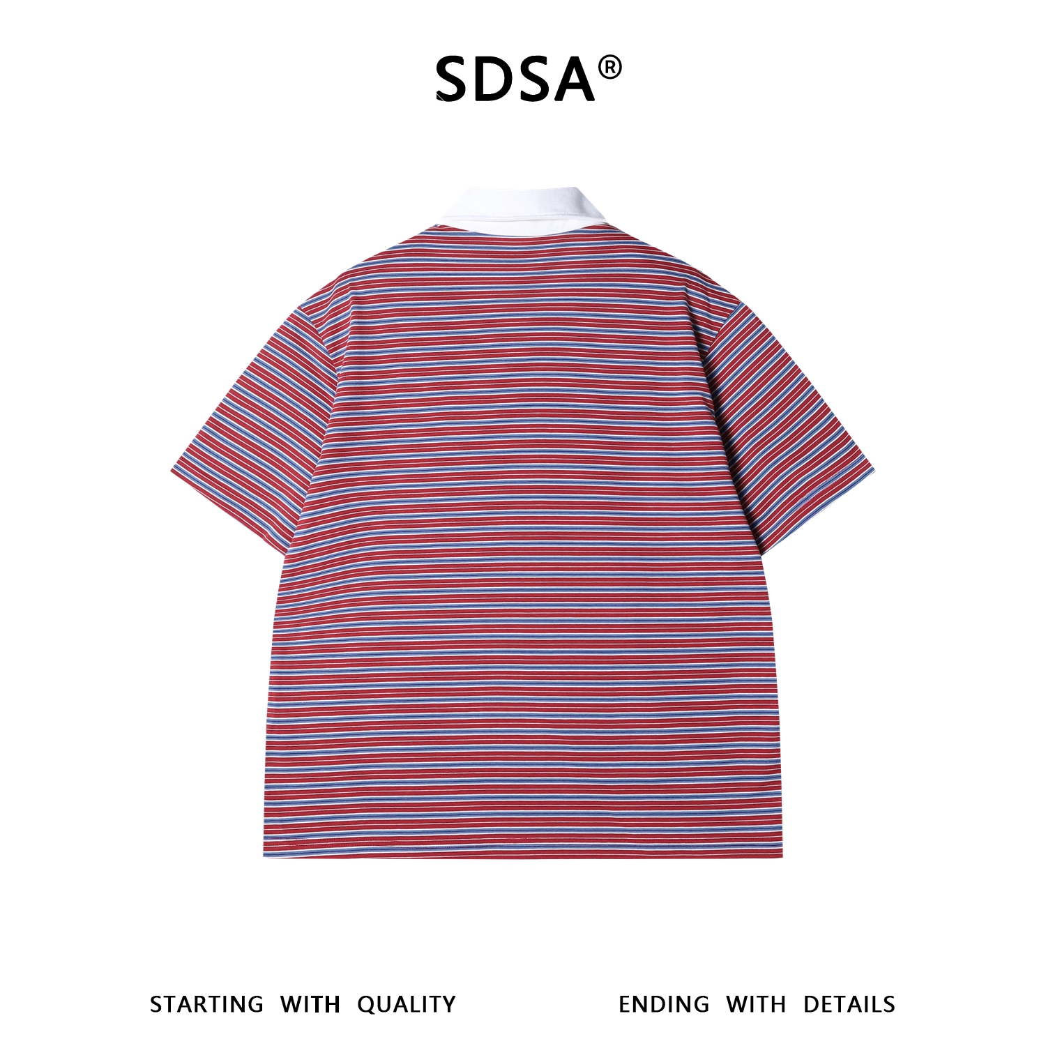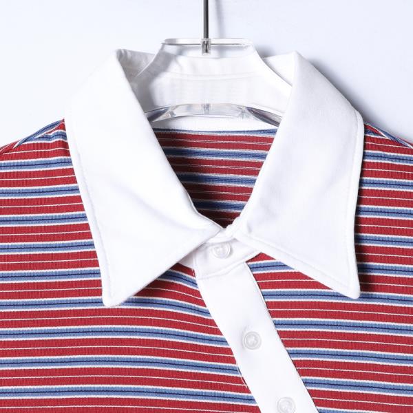 SDSA男装2026新款轻奢美式撞色条纹翻领短袖T恤斜纽扣设计百搭