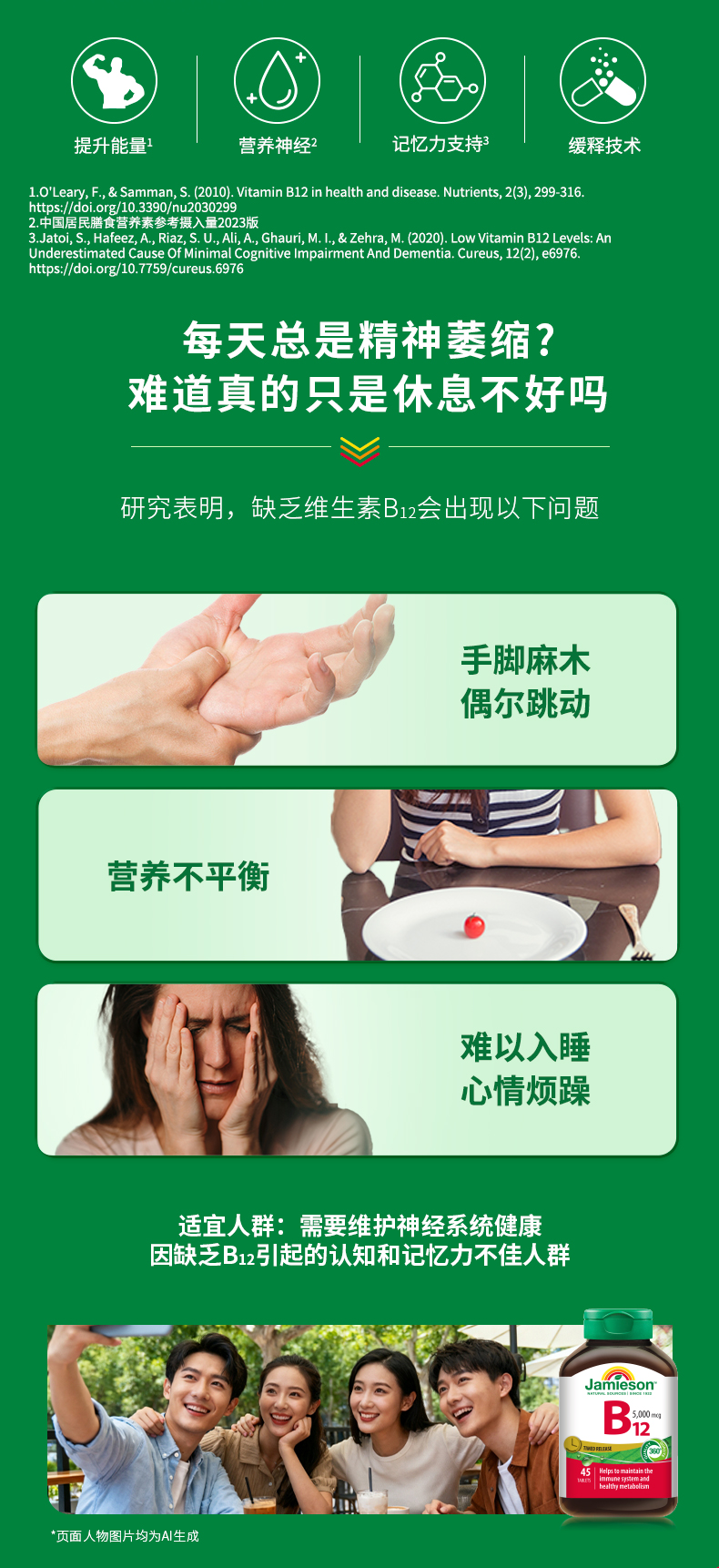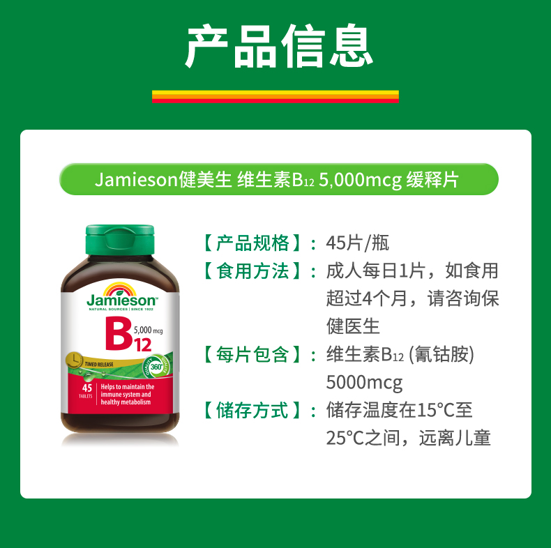 【品牌发货】健美生维生素B12高含量5000mcg甲钴fgd胺缓释片原装进口全天活力