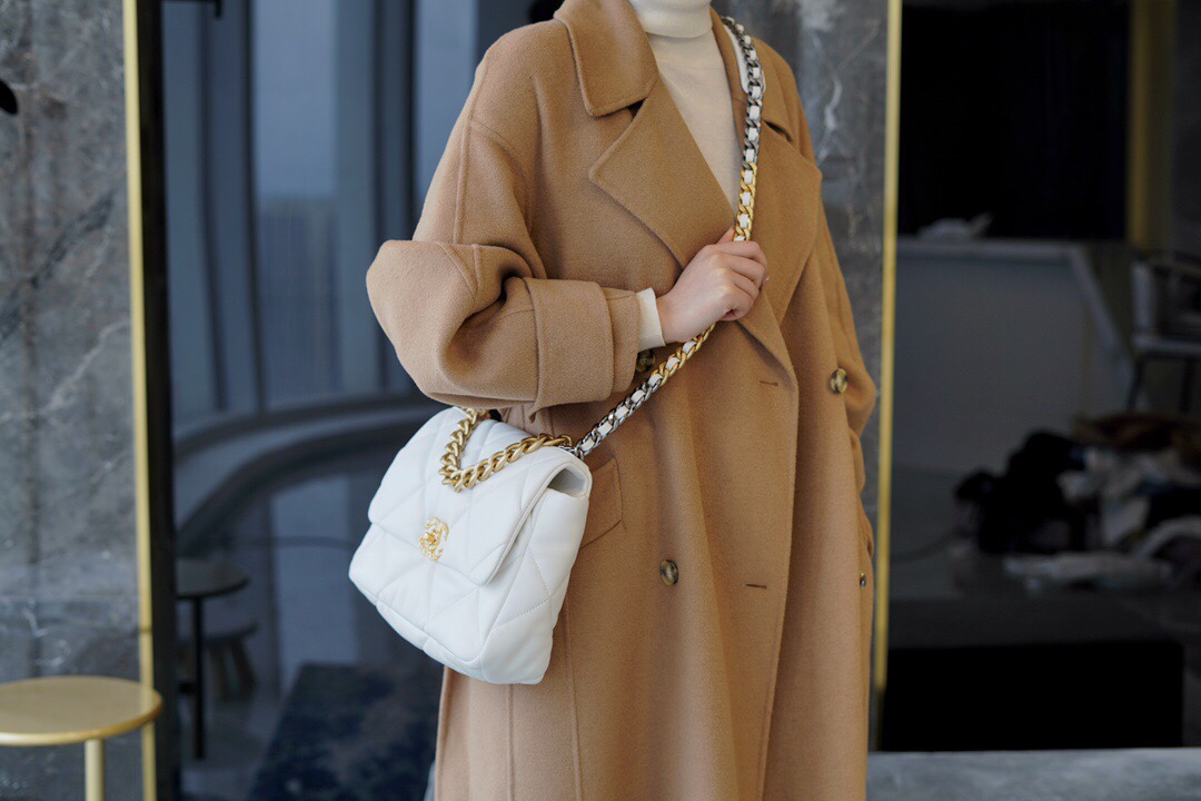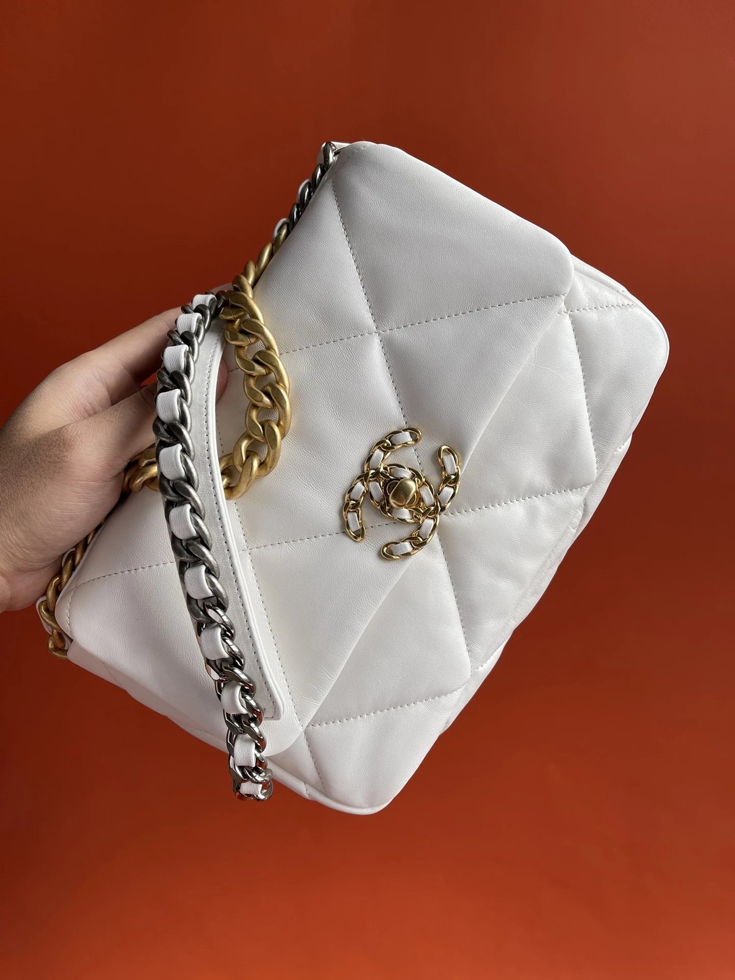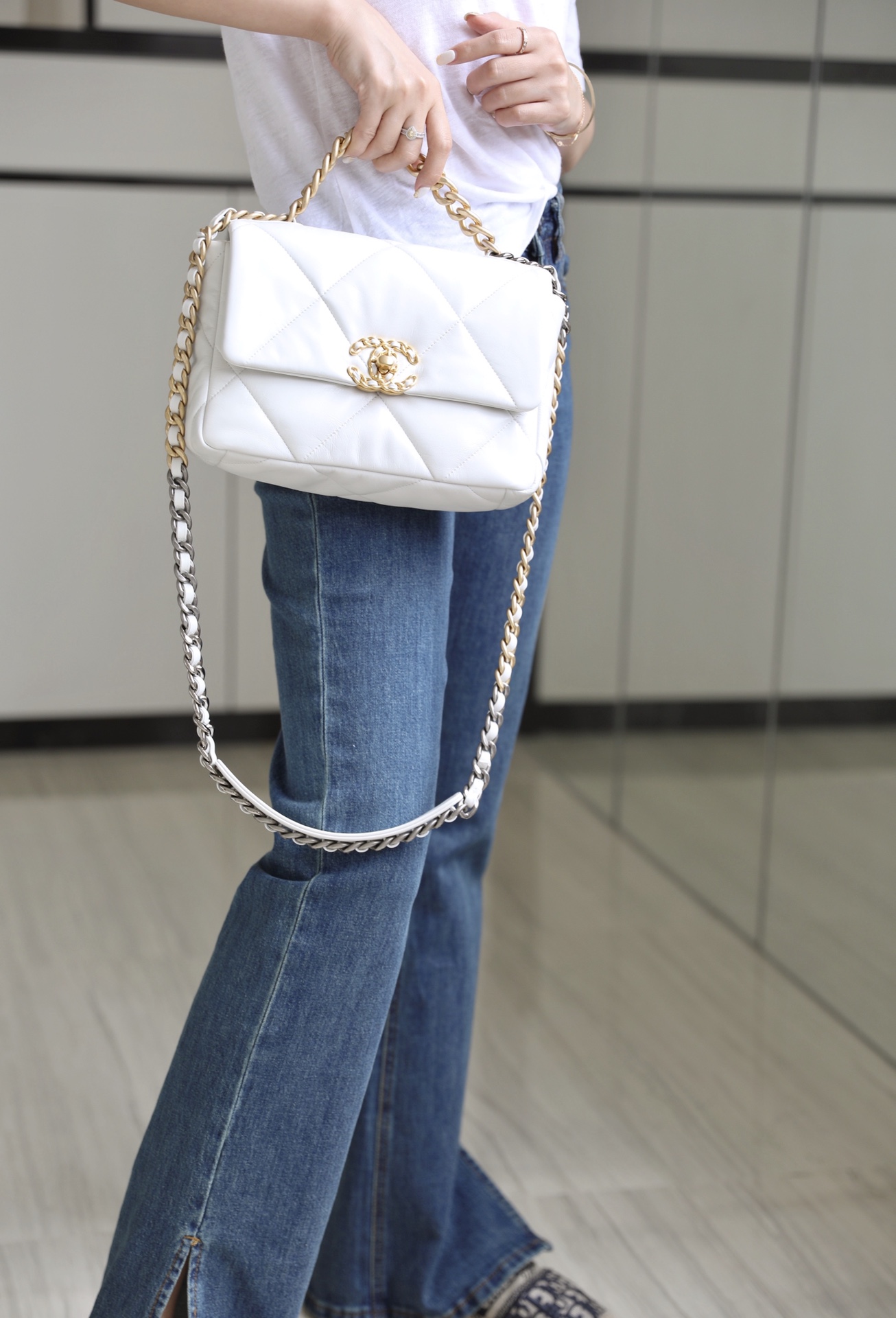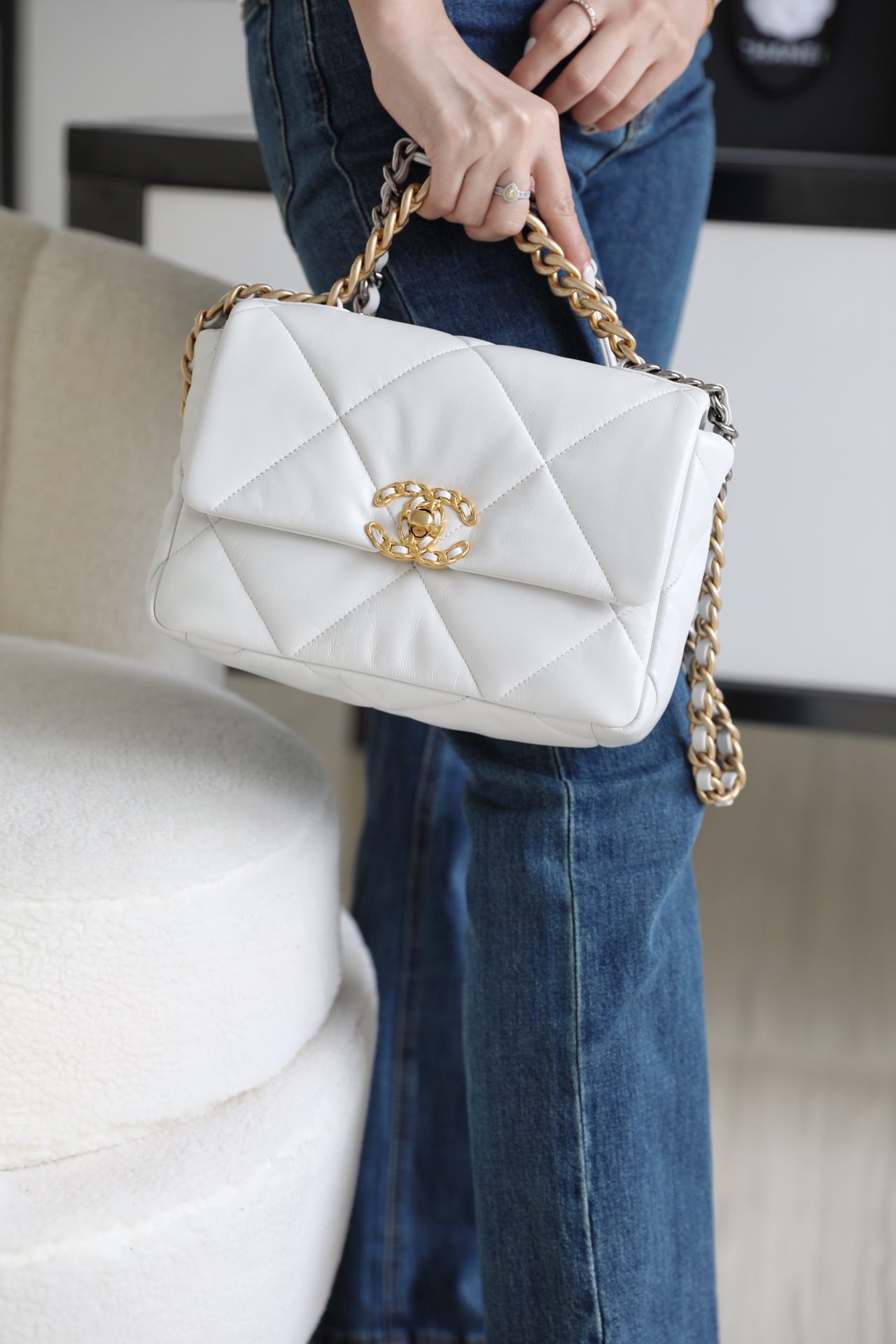 【早春系列】香奈儿-19bag菱格翻盖链条 小羊皮手提单肩斜挎包 白金(LZ)