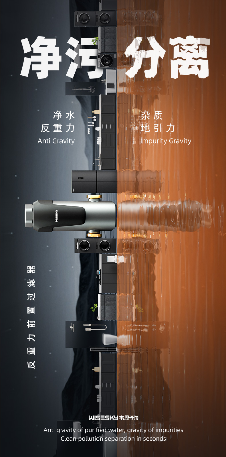 韦思卡尔净宝瓶反重力前置过滤器家用反冲洗全屋净水器WSP-85-86W