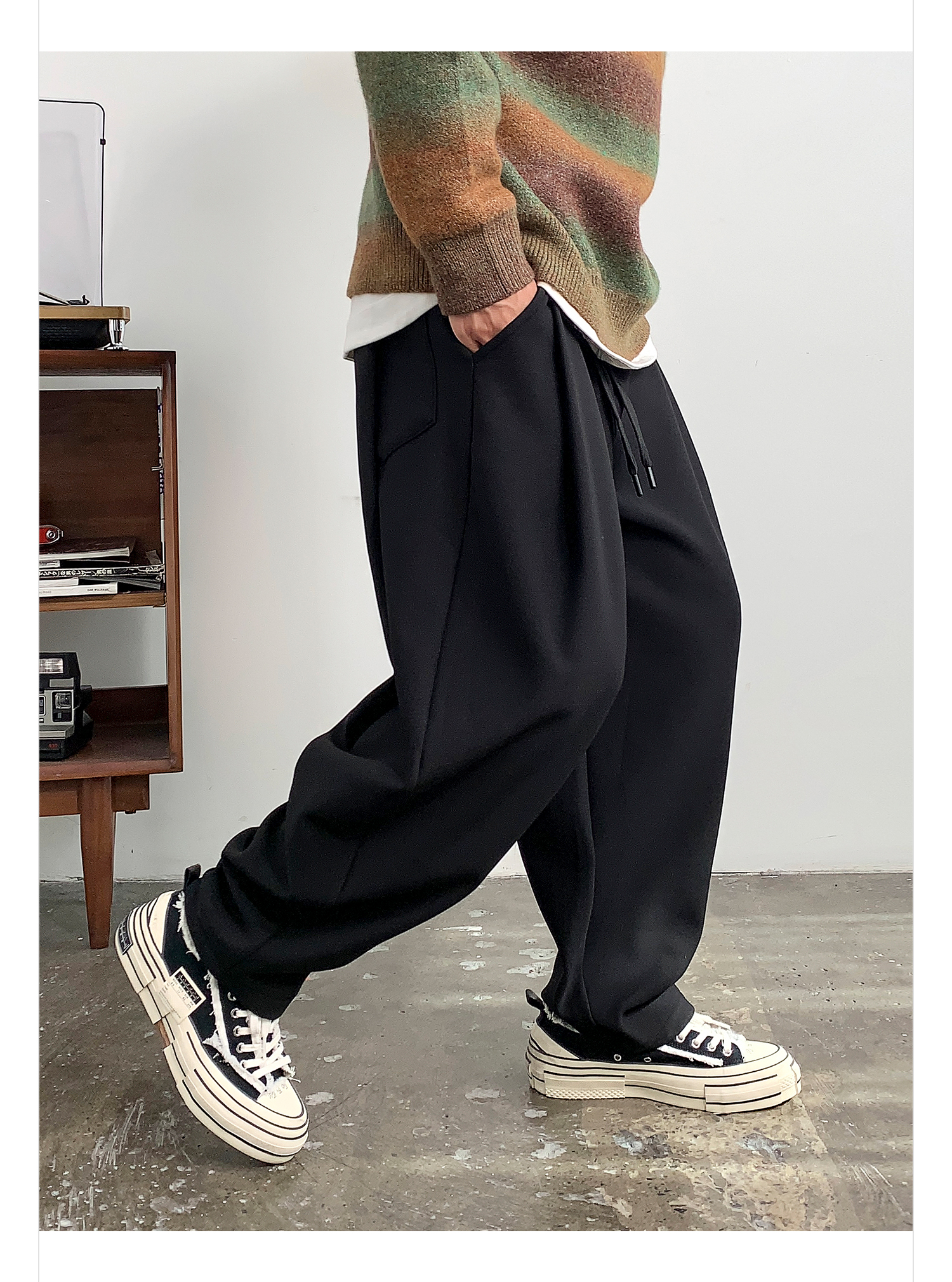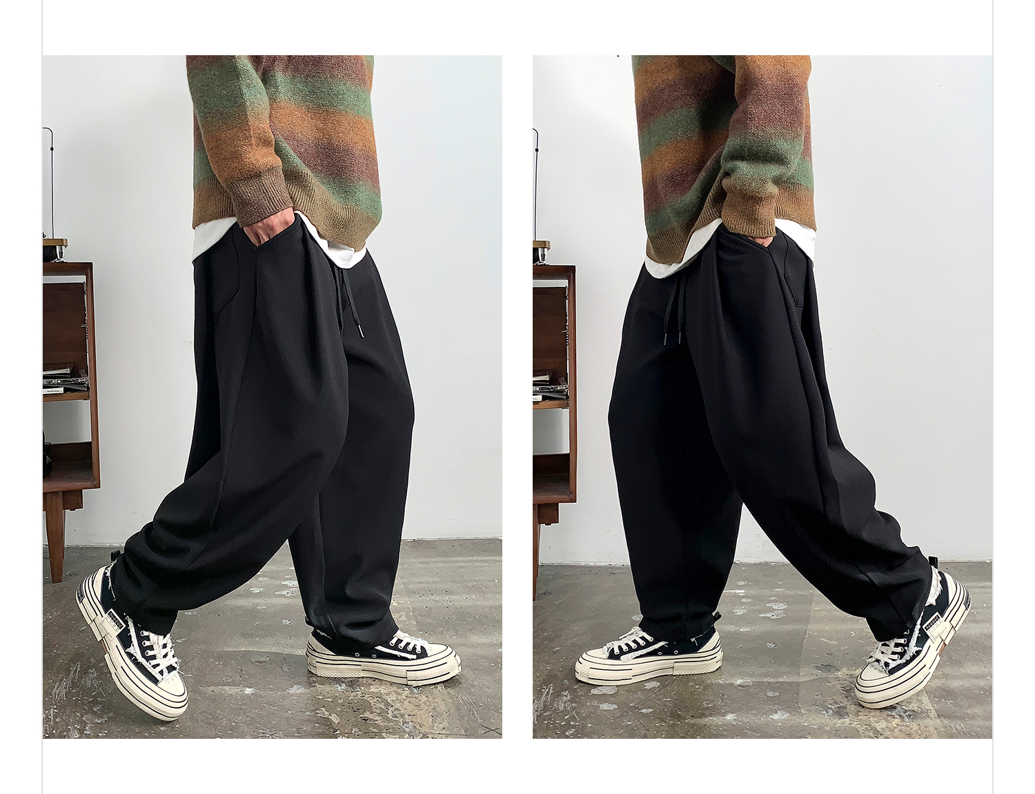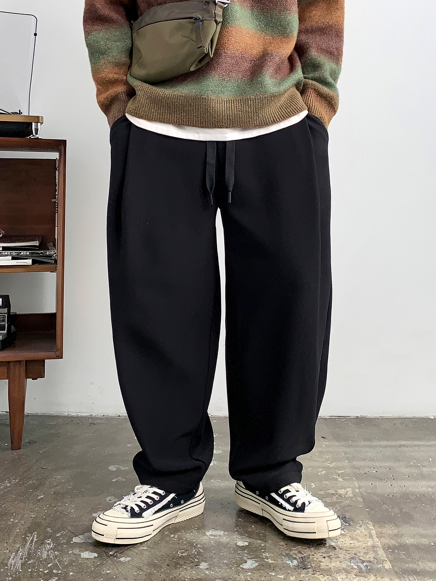 徐太浪【褶皱感 立体裁剪】大码哈伦裤男春秋宽松百搭纯色休闲裤