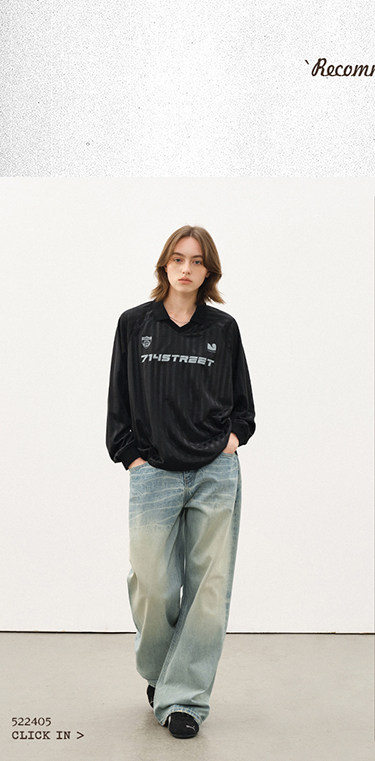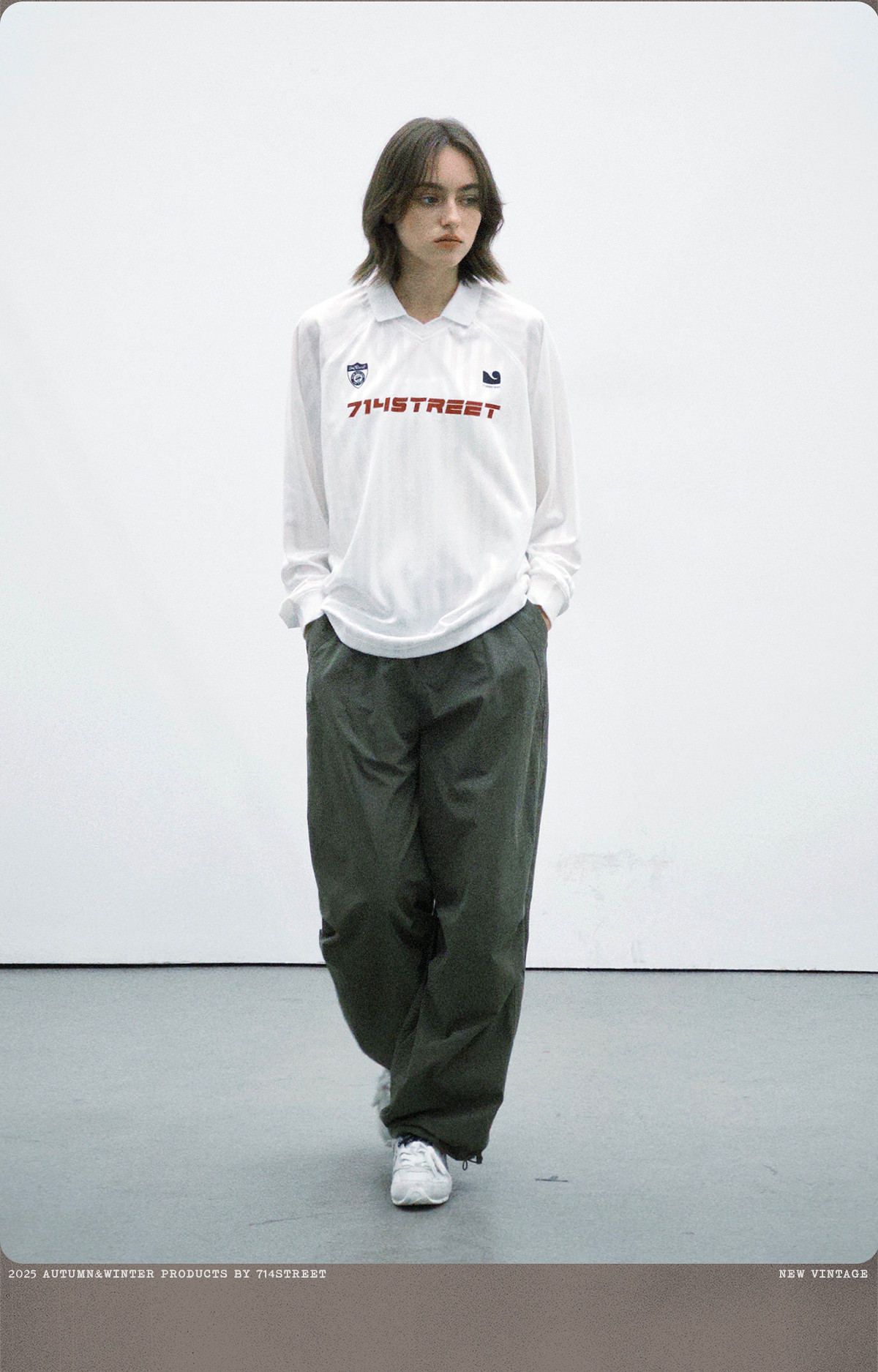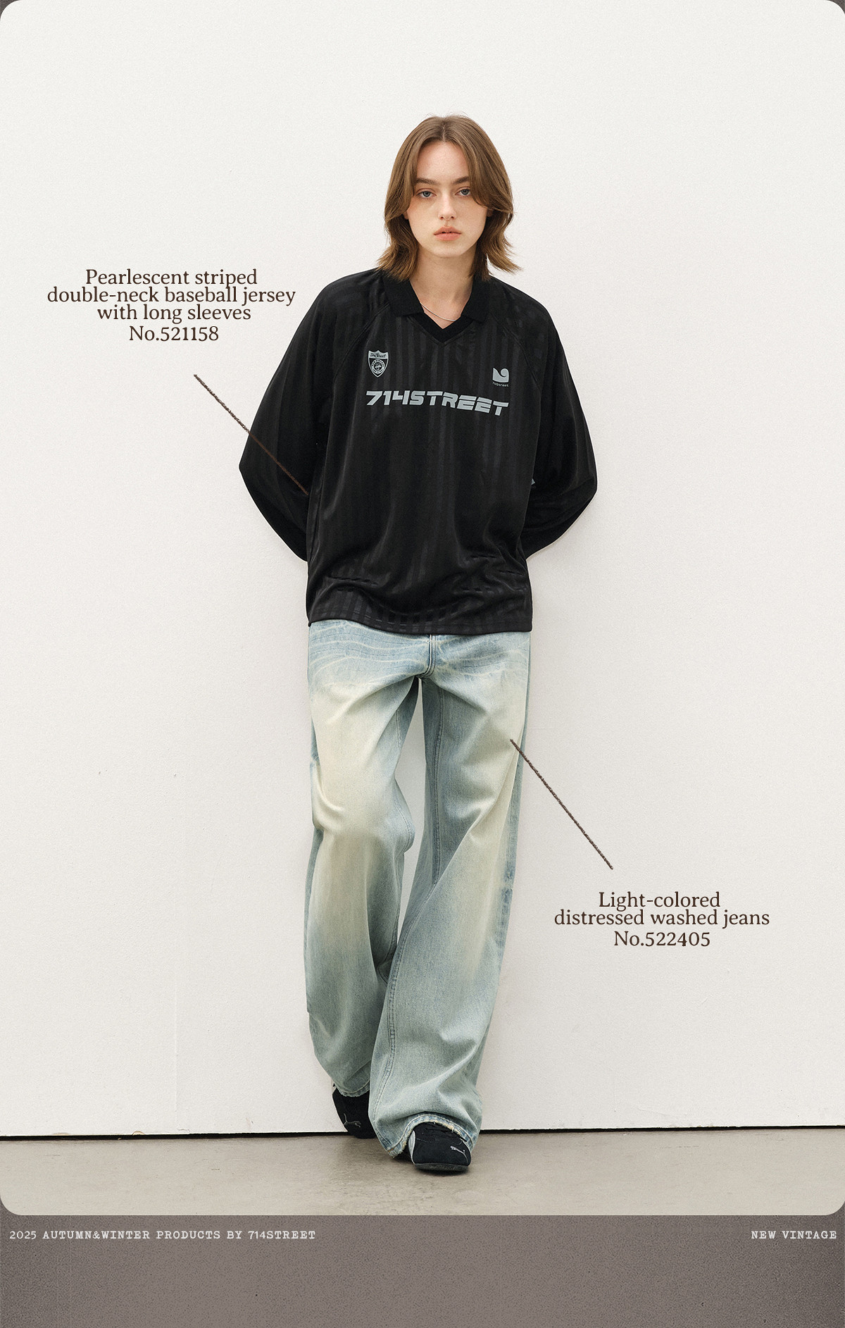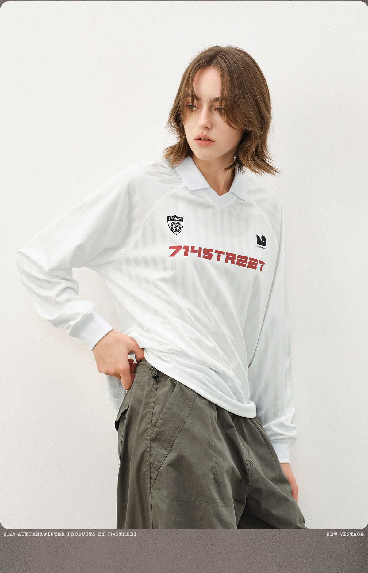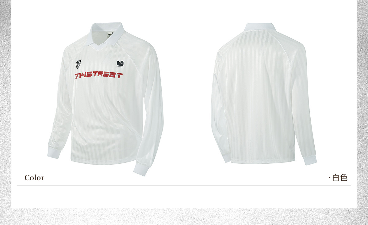 714street复古珠光条纹长袖上衣2025秋季情侣装休闲运动翻领T恤男