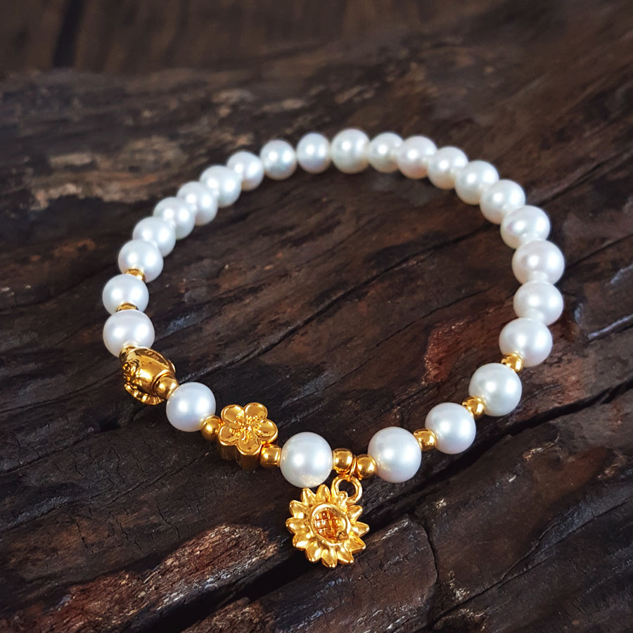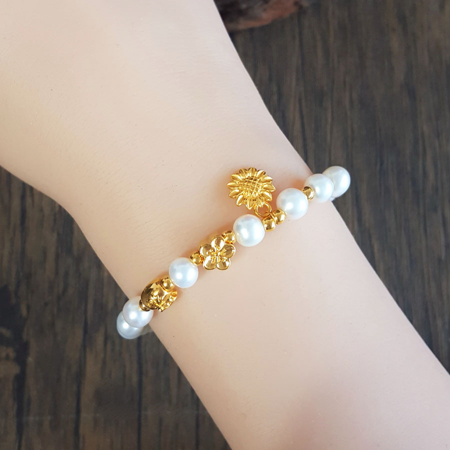名称 | 足金向日葵和福袋饰品配约6MM天然珍珠手串 |