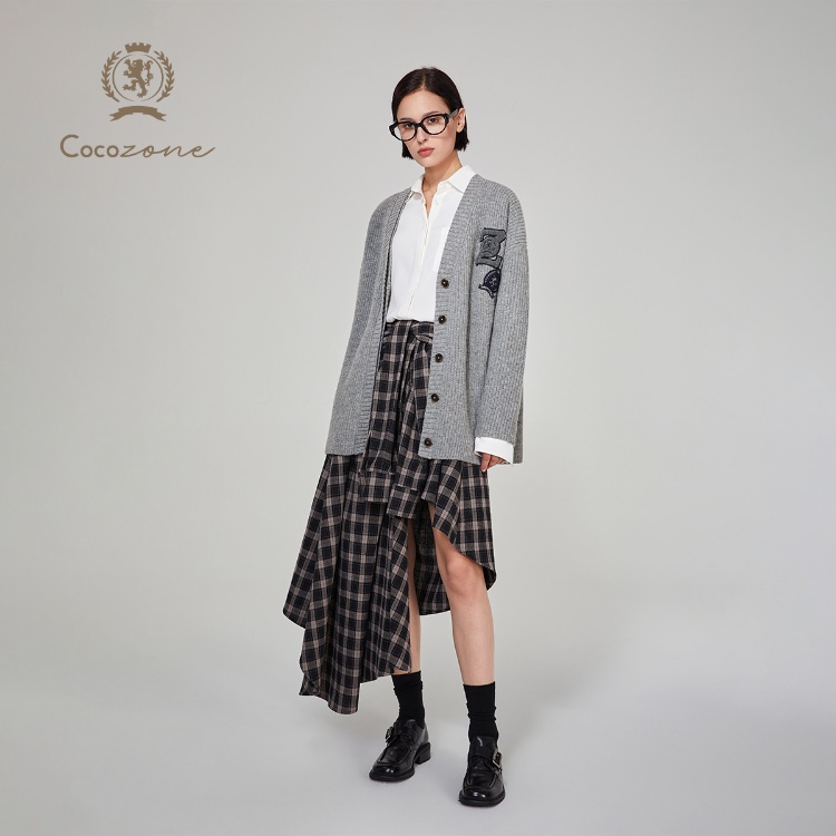 COCOZONE 刘一一 海德公园2025春季100绵羊毛V领针织开衫CC1C2263