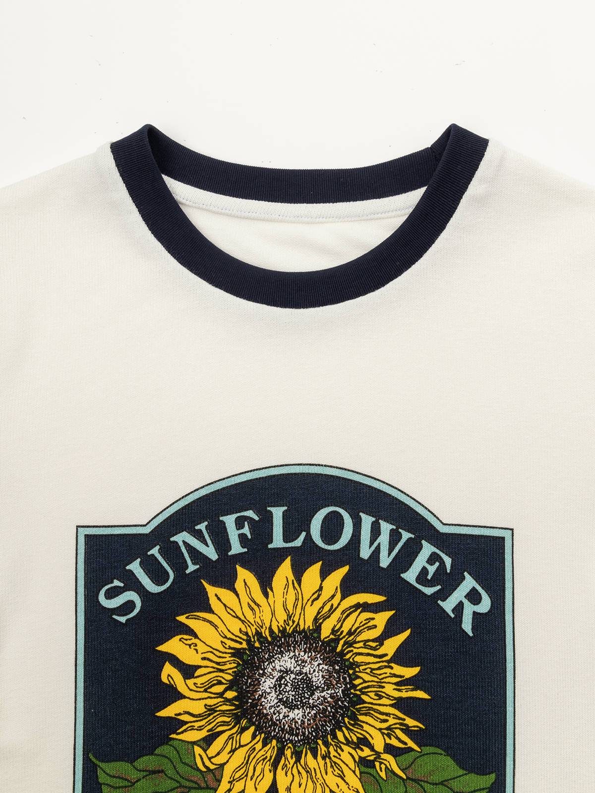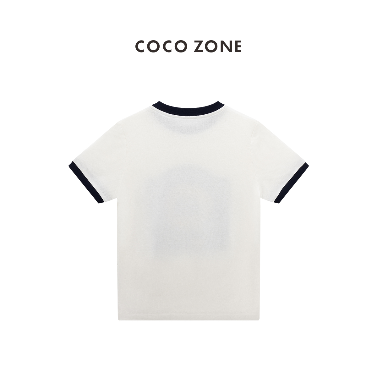 COCO ZONE"向日葵T"夏季撞色圆领短袖T恤简约修身显瘦百搭休闲上衣CC1B1151