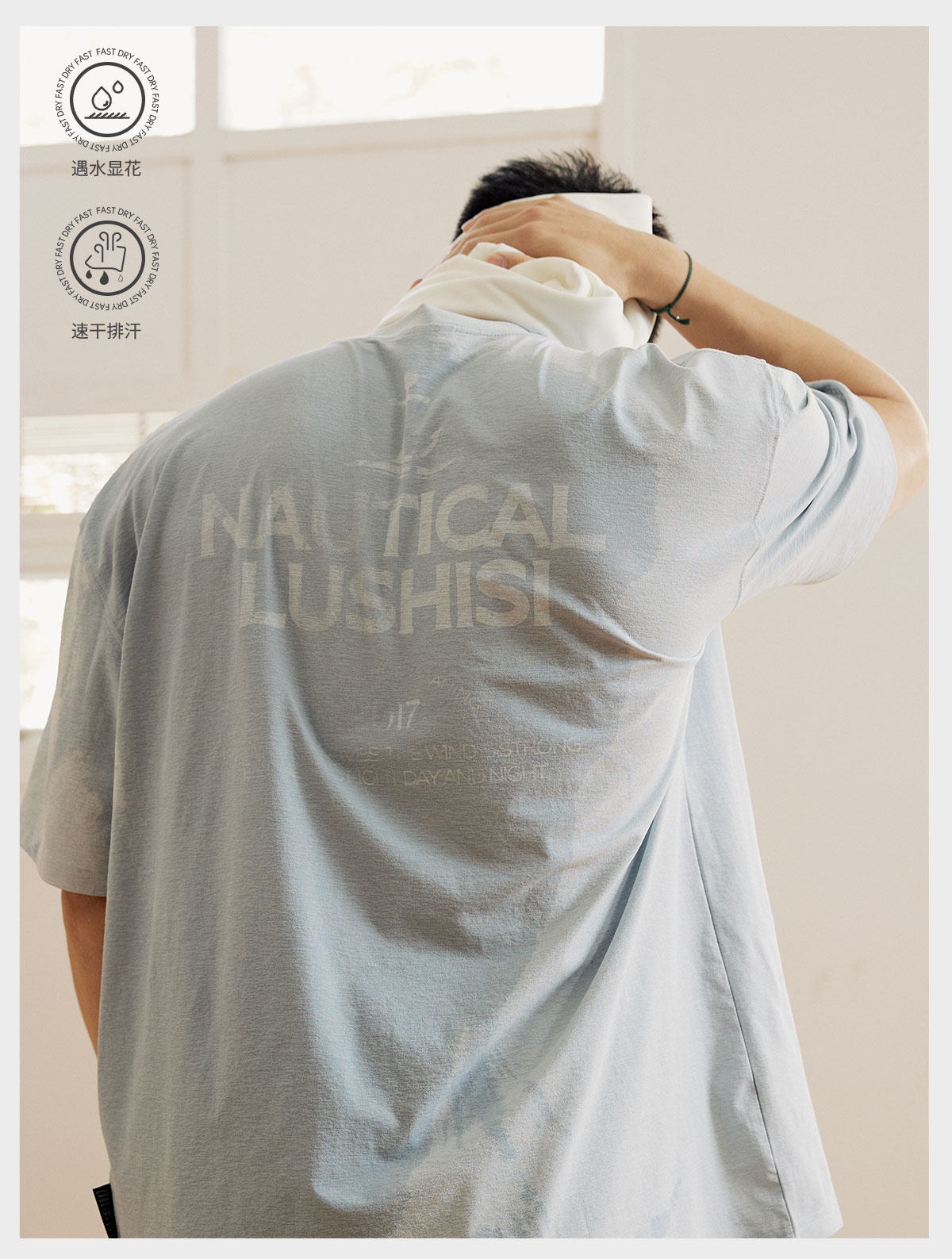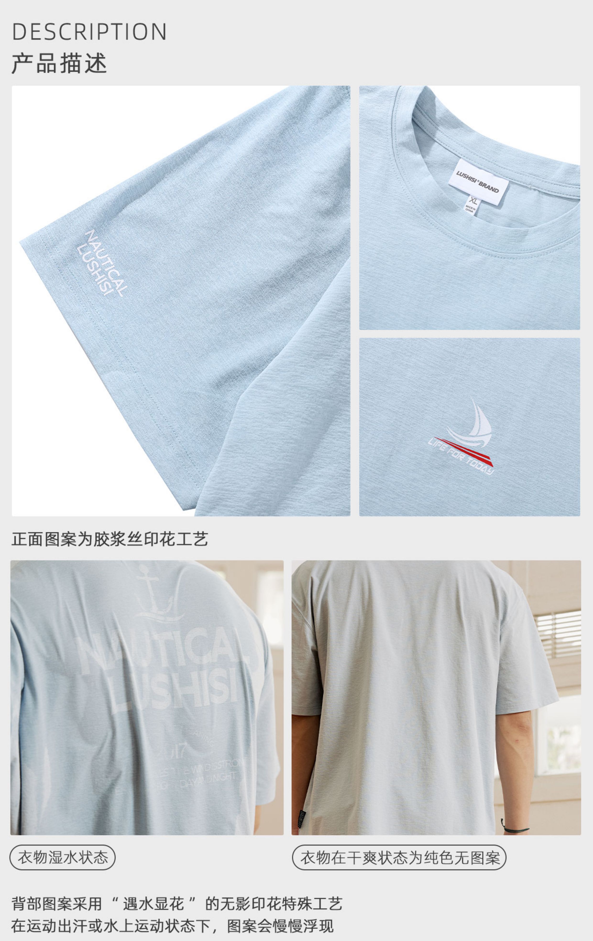 LUSHISI [帆船]“遇水显印花”户外美式篮球运动短袖吸湿排汗速干