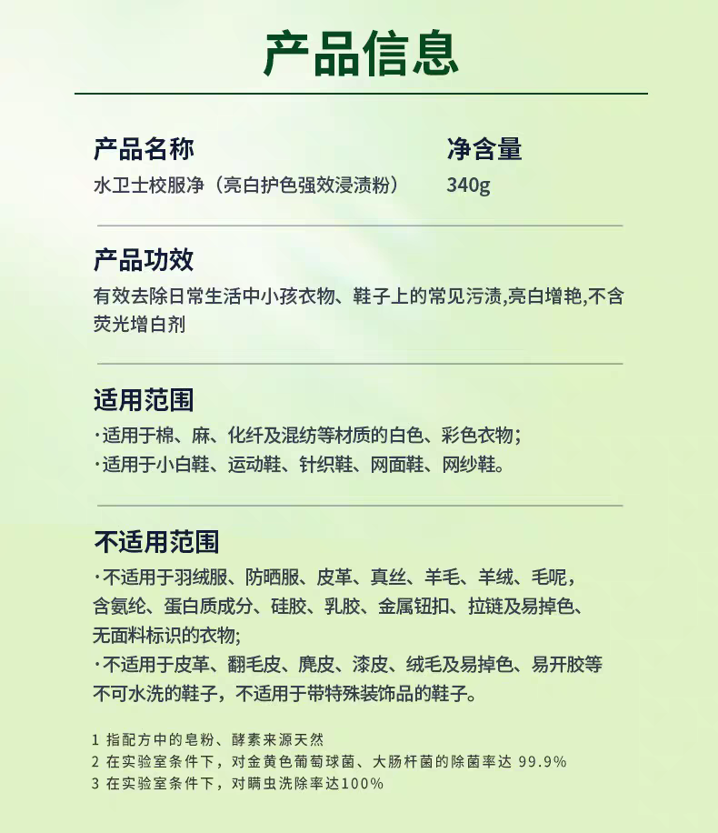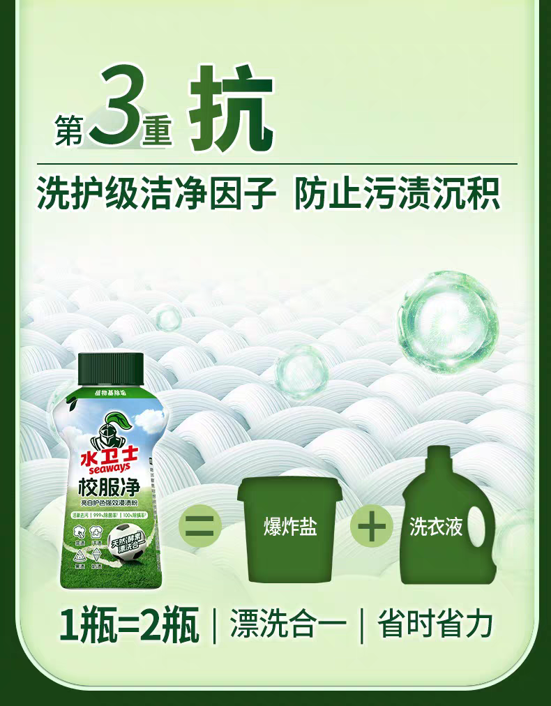 水卫仕校服净 水卫士校服净 洗护合一去除顽渍活氧去污亮白焕新去汗渍菜渍果渍YJTJ