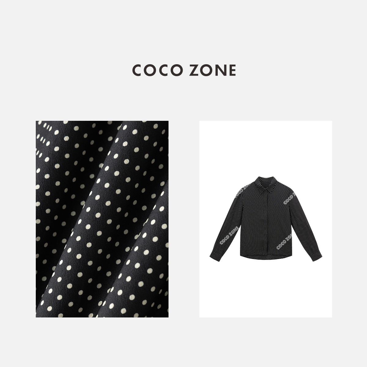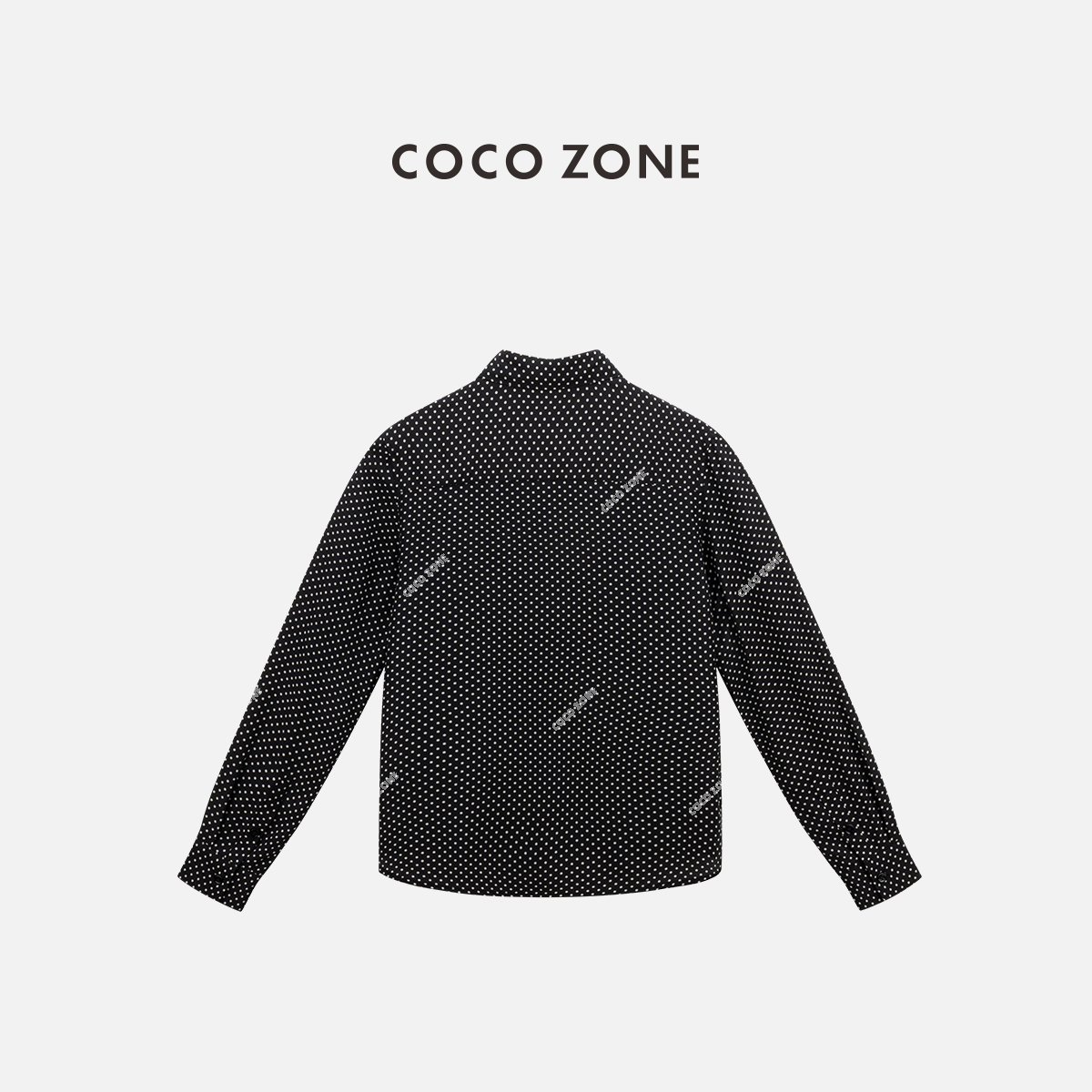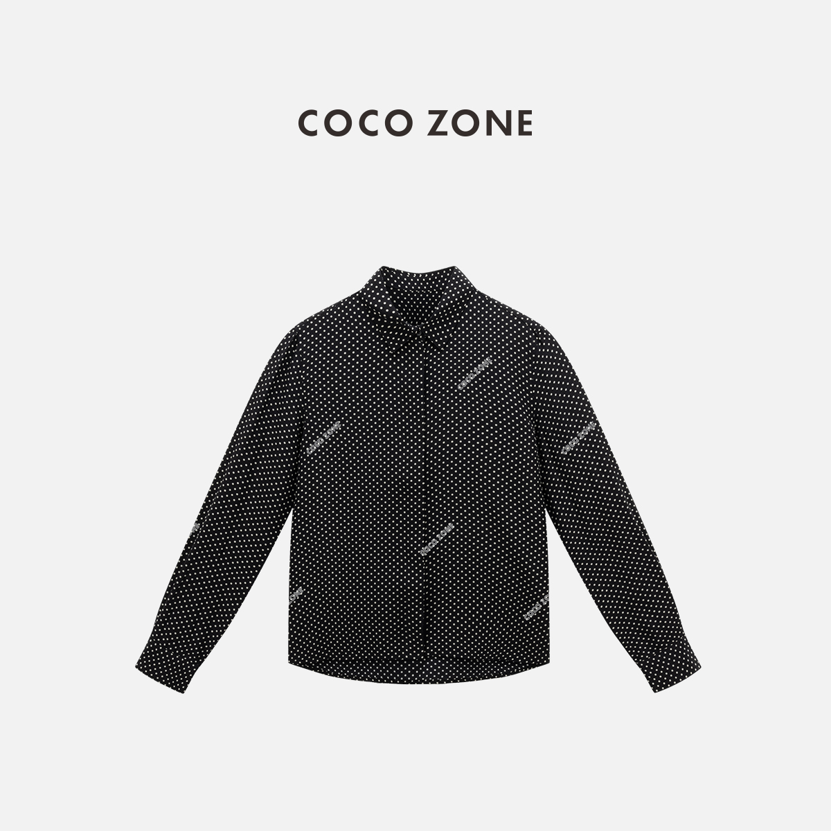 COCO ZONE 100桑蚕丝波点翻领衬衫长袖上衣CC2C1266