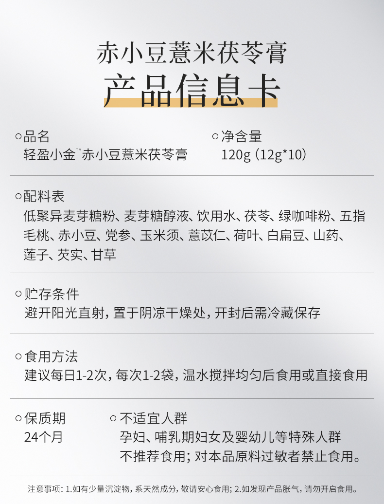 轻盈小金--赤小豆薏米茯苓膏120g(12g*10袋)/盒