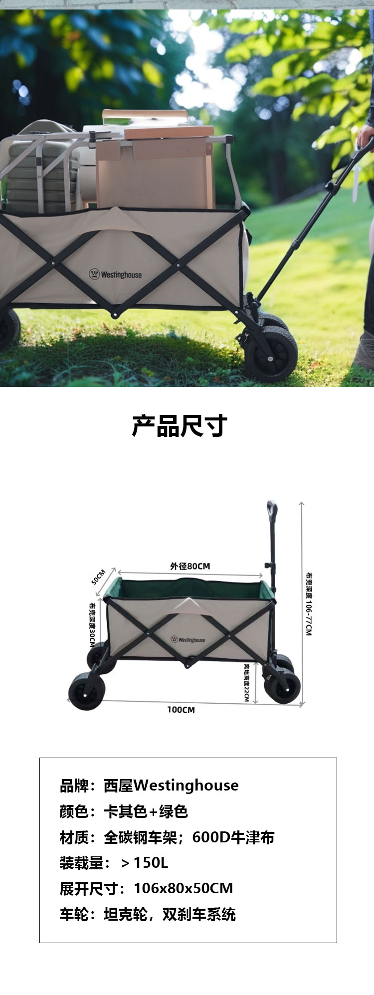 Westinghouse西屋150L便携可折叠营地车MN01C【10寸越野橡胶轮】